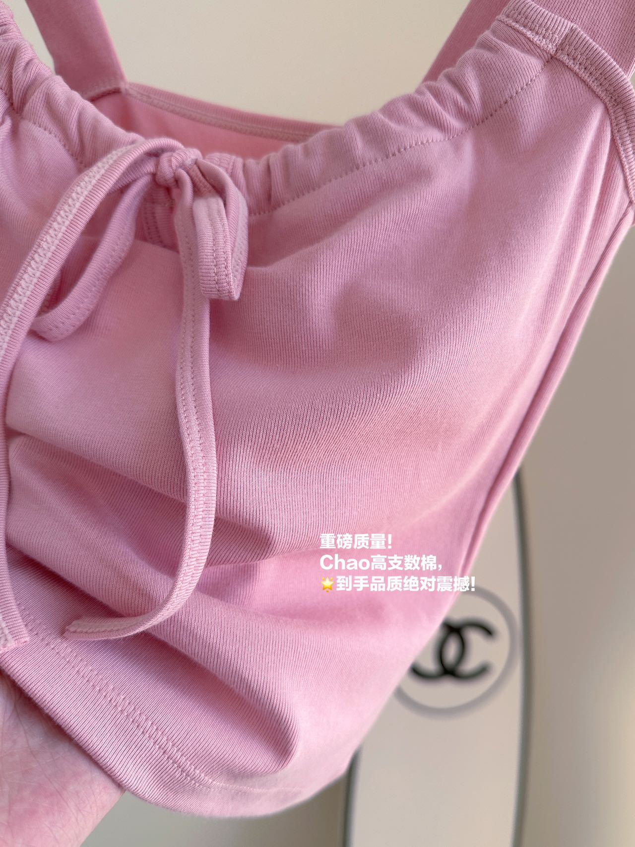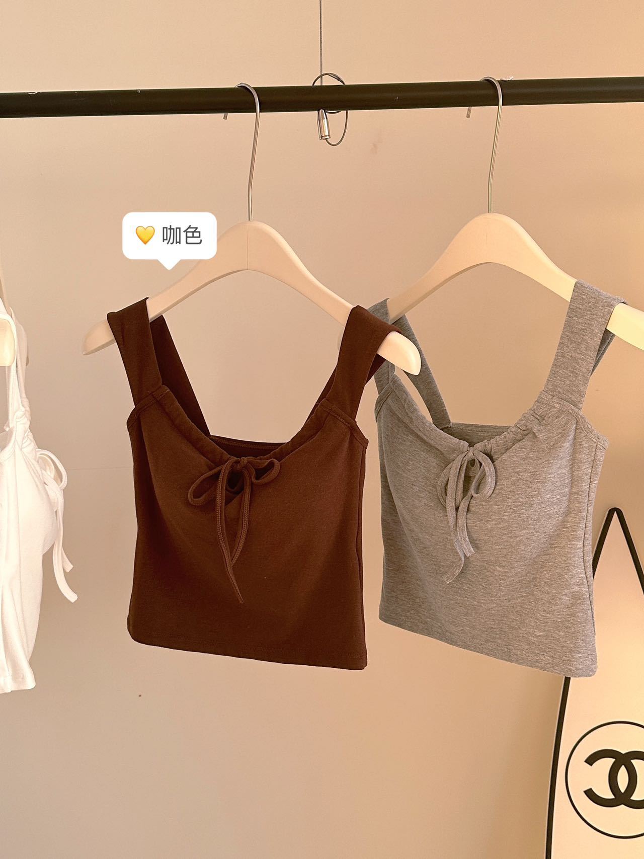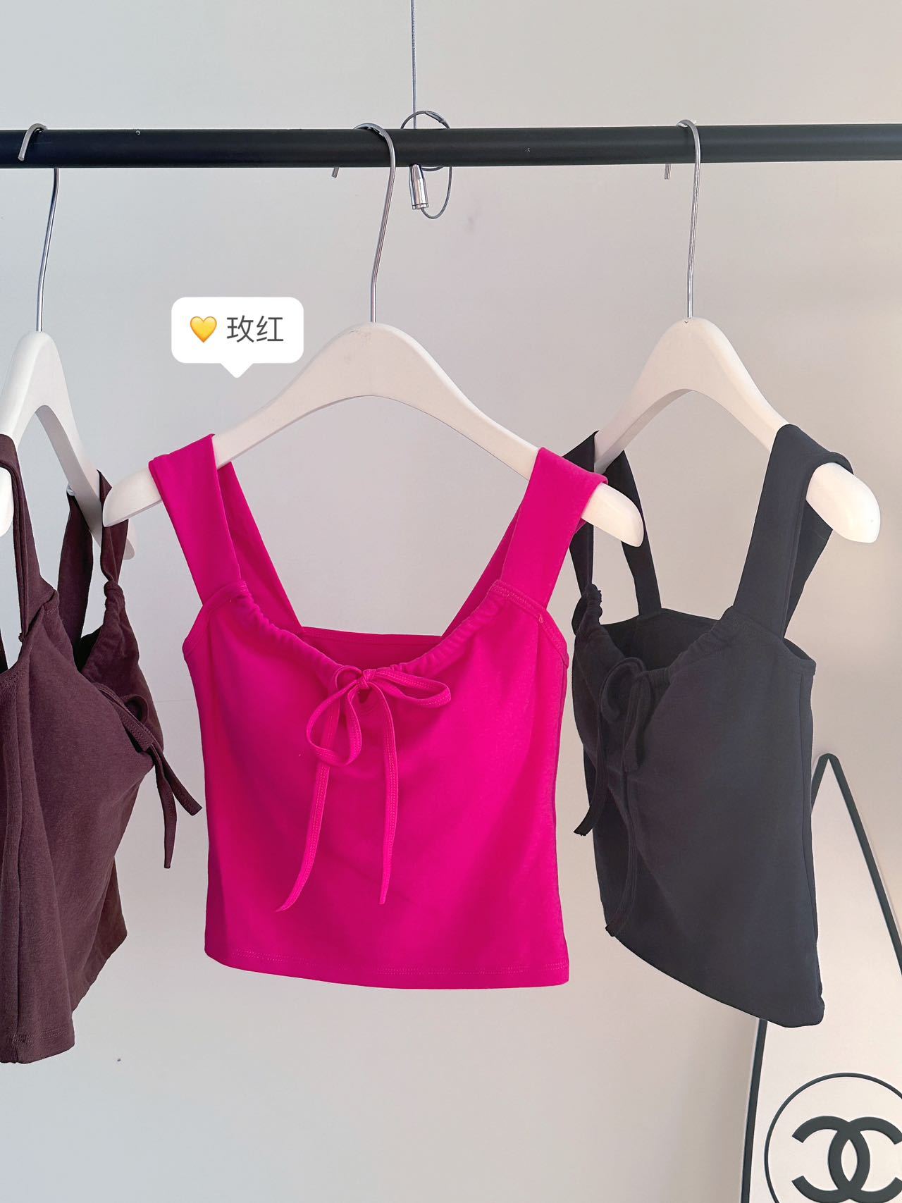 헤비급 RC 코튼 도파민 컬러 레이스업 보우 캐미솔 올인원 가슴 패드 스위트 소녀 와이드 숄더 민소매 탑