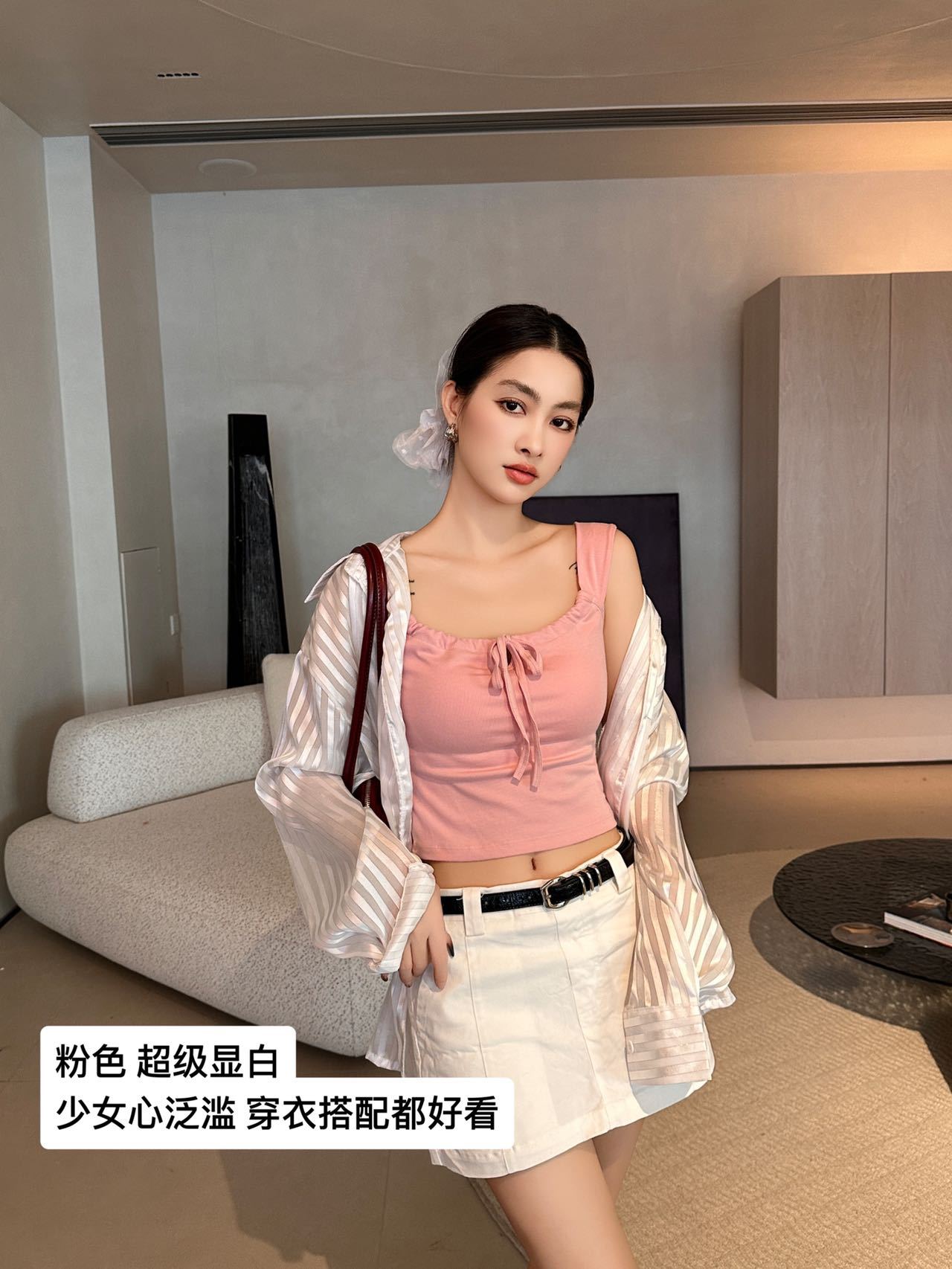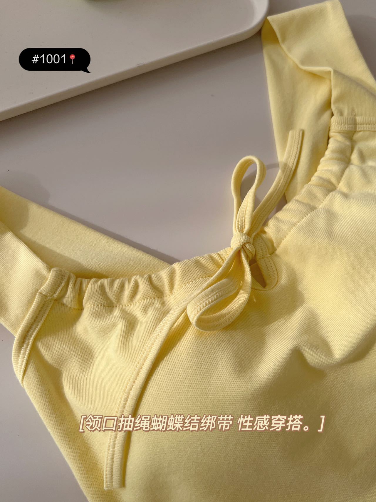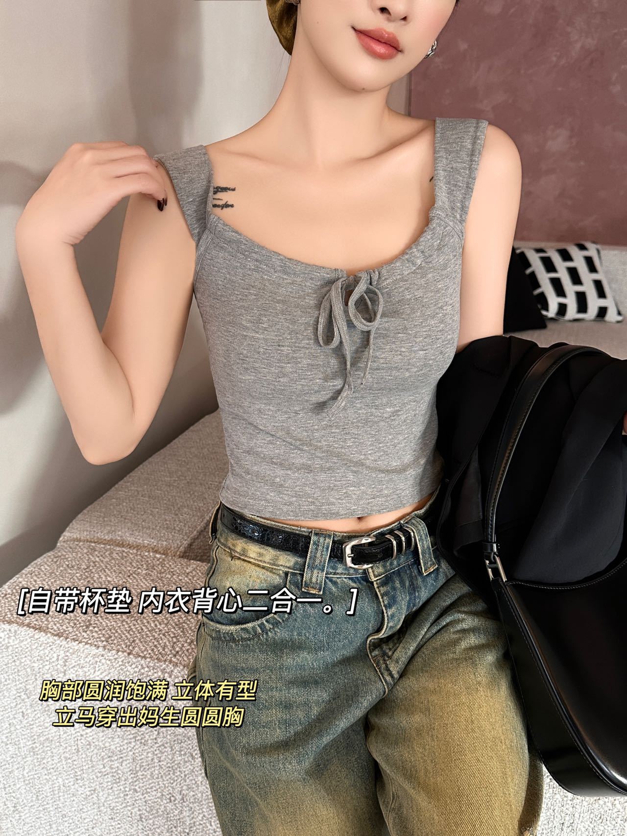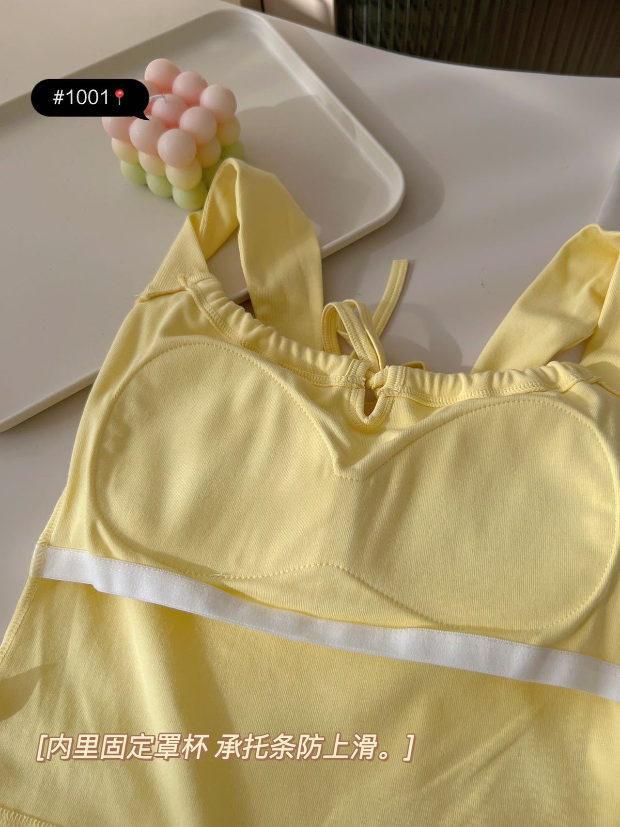 헤비급 RC 코튼 도파민 컬러 레이스업 보우 캐미솔 올인원 가슴 패드 스위트 소녀 와이드 숄더 민소매 탑