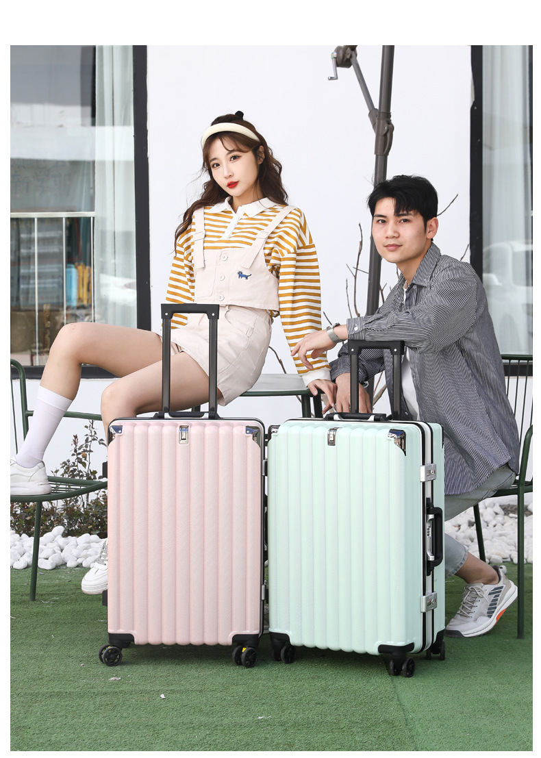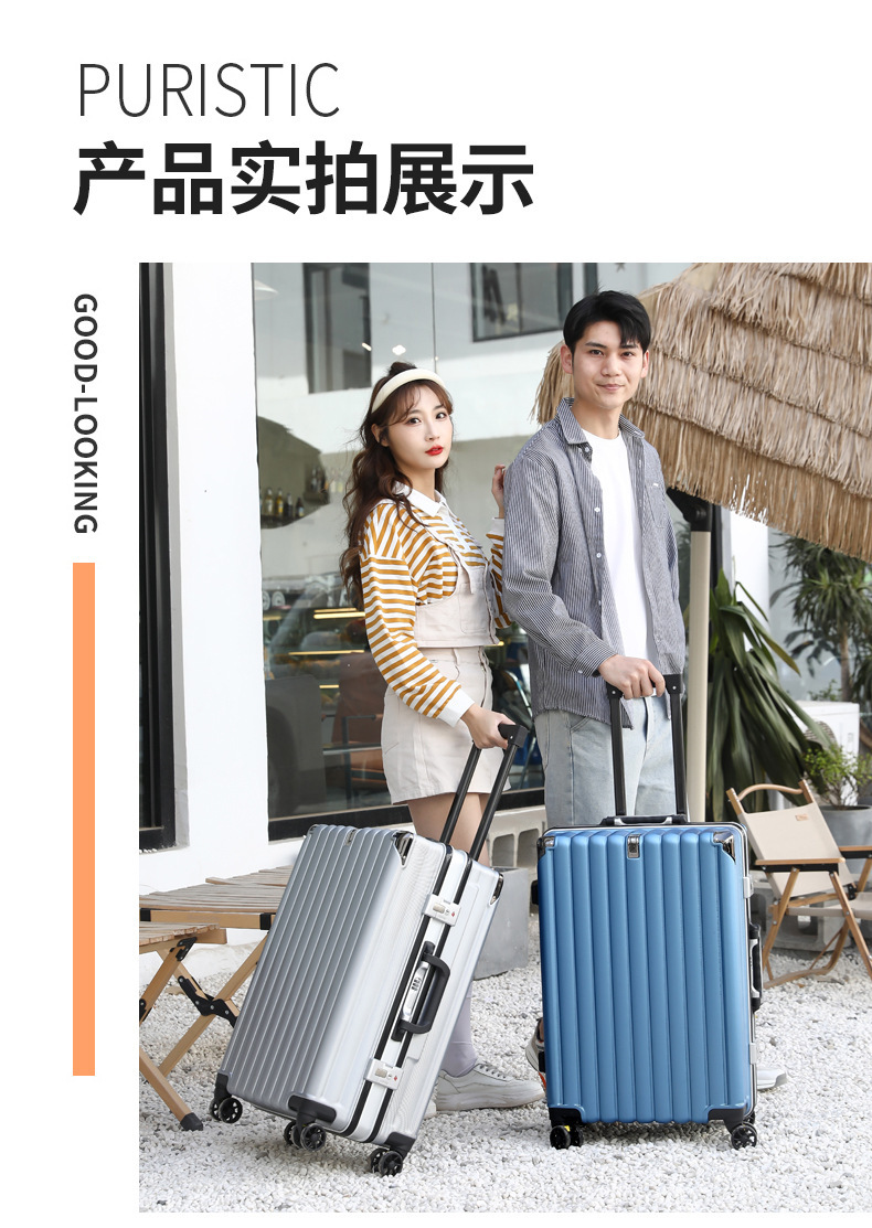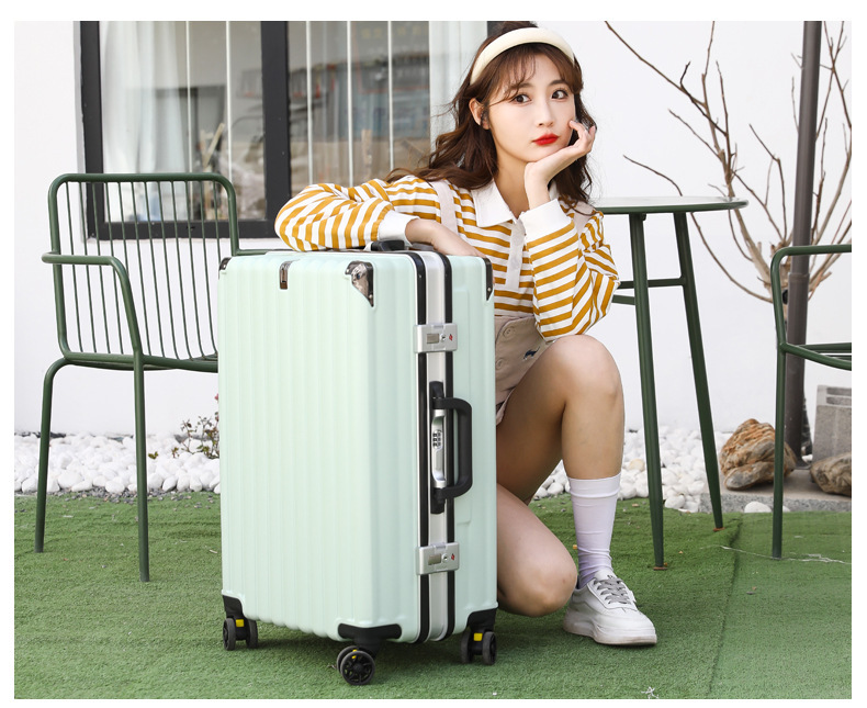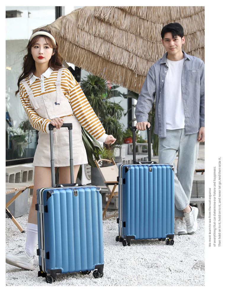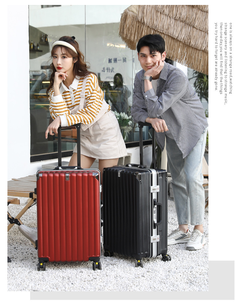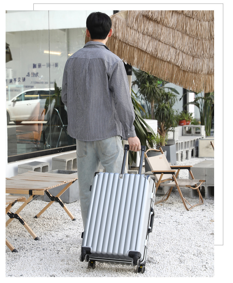 새로운 알루미늄 프레임 모델 트롤리 케이스 20inch 알루미늄 프레임 모델 휴대용 학생 가방 스트라이프 범용 휠 성인 수하물스토어 가기