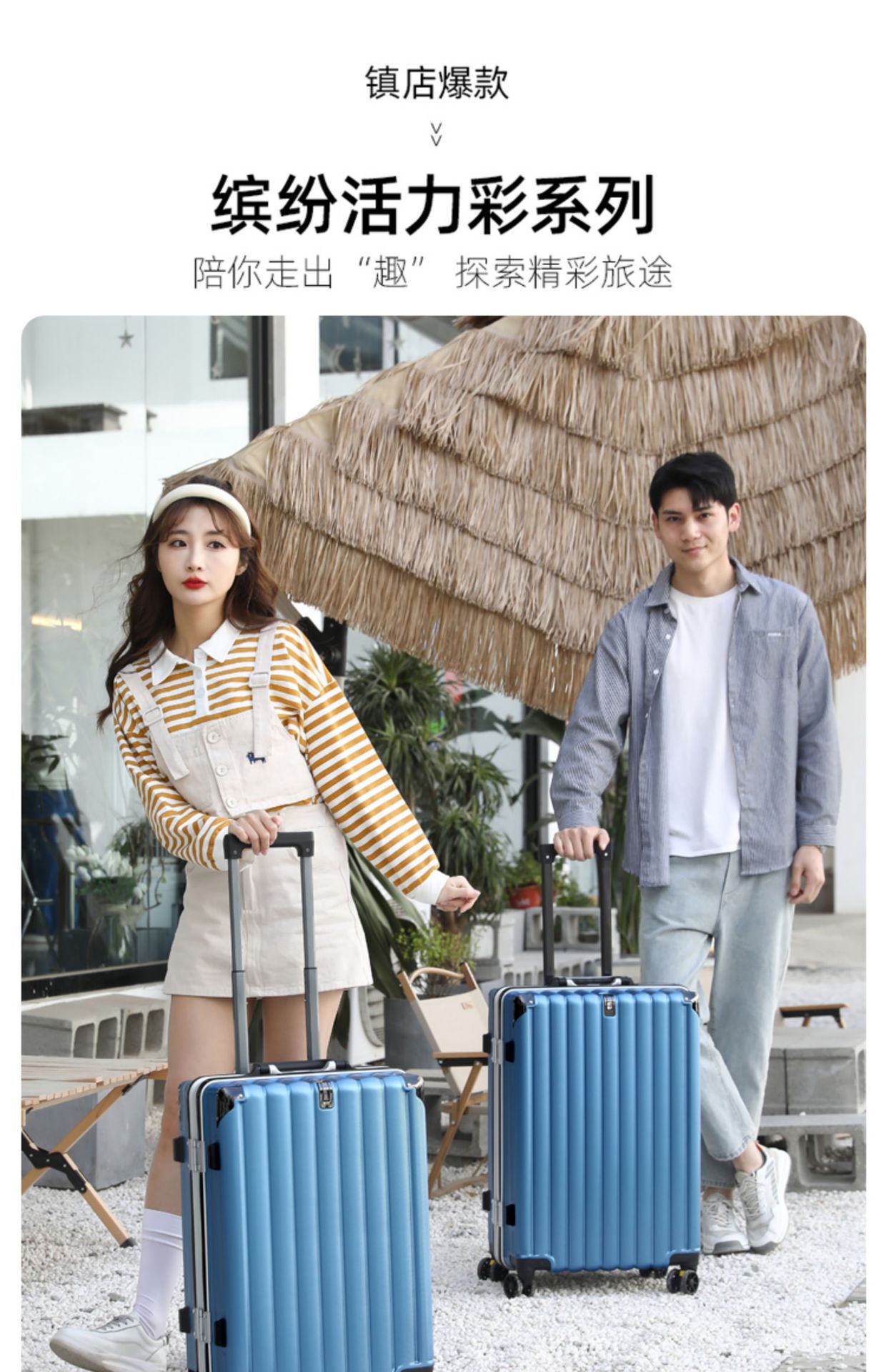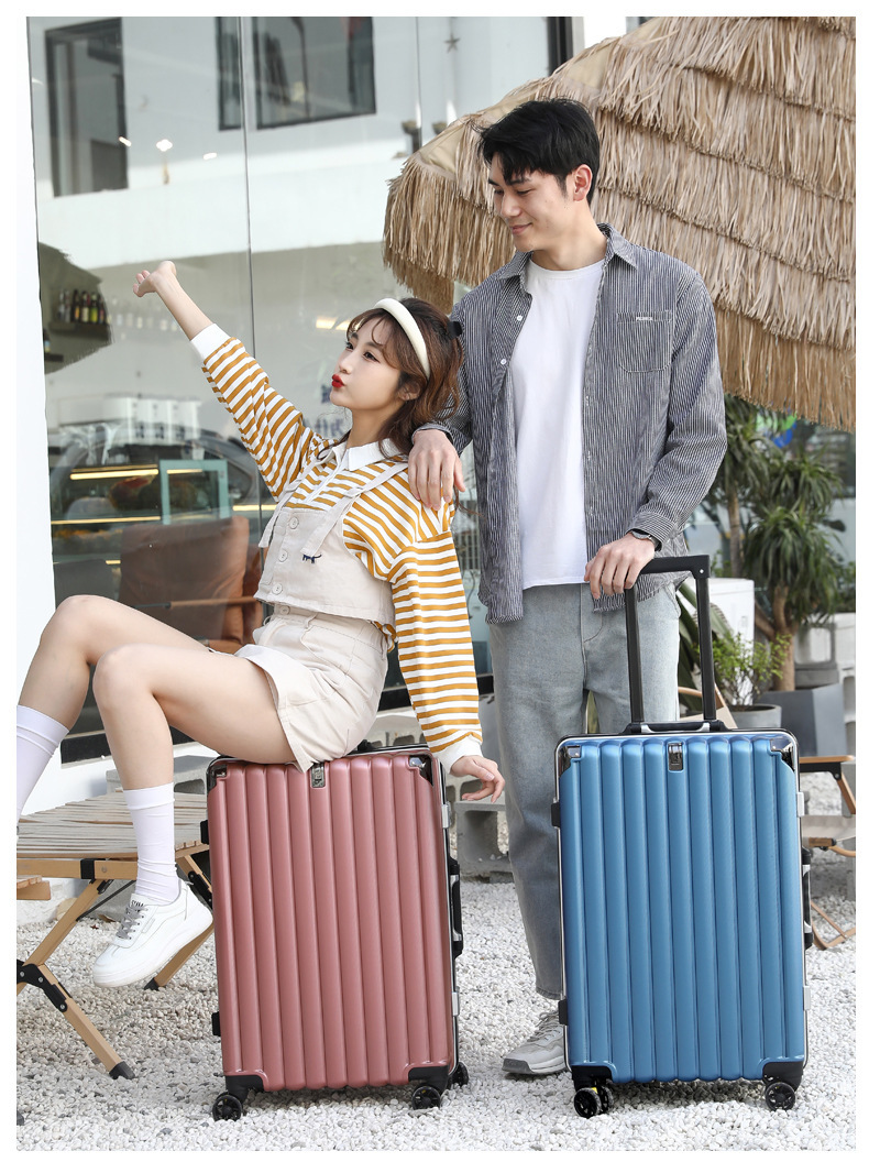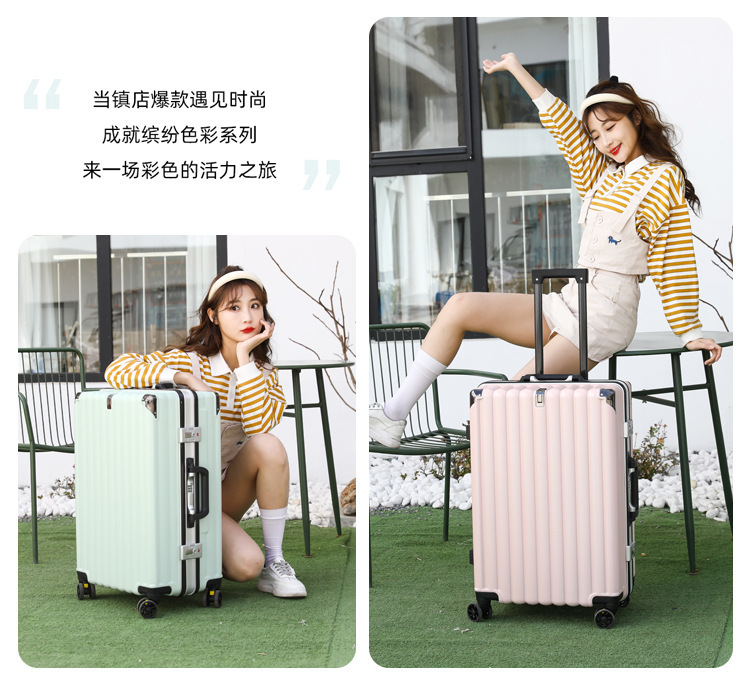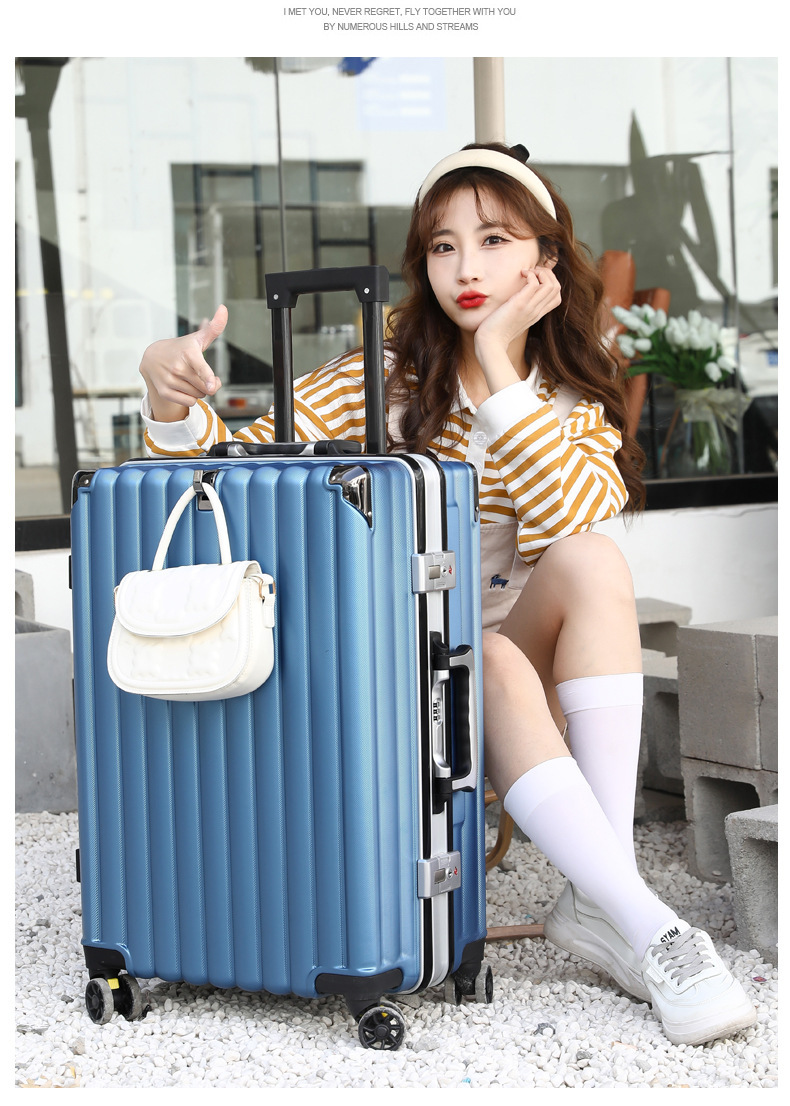 새로운 알루미늄 프레임 모델 트롤리 케이스 20inch 알루미늄 프레임 모델 휴대용 학생 가방 스트라이프 범용 휠 성인 수하물스토어 가기