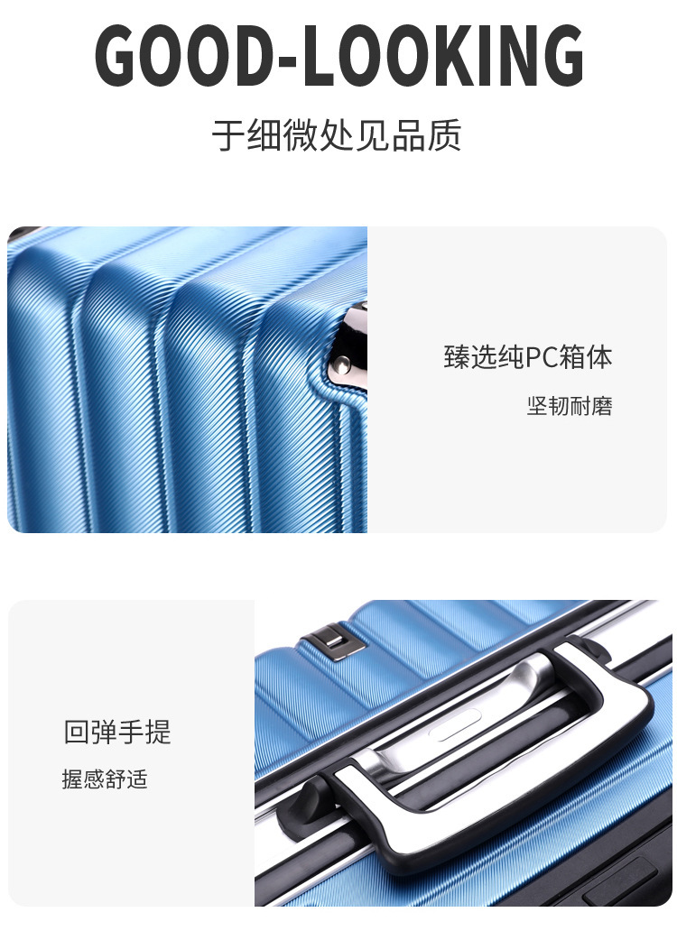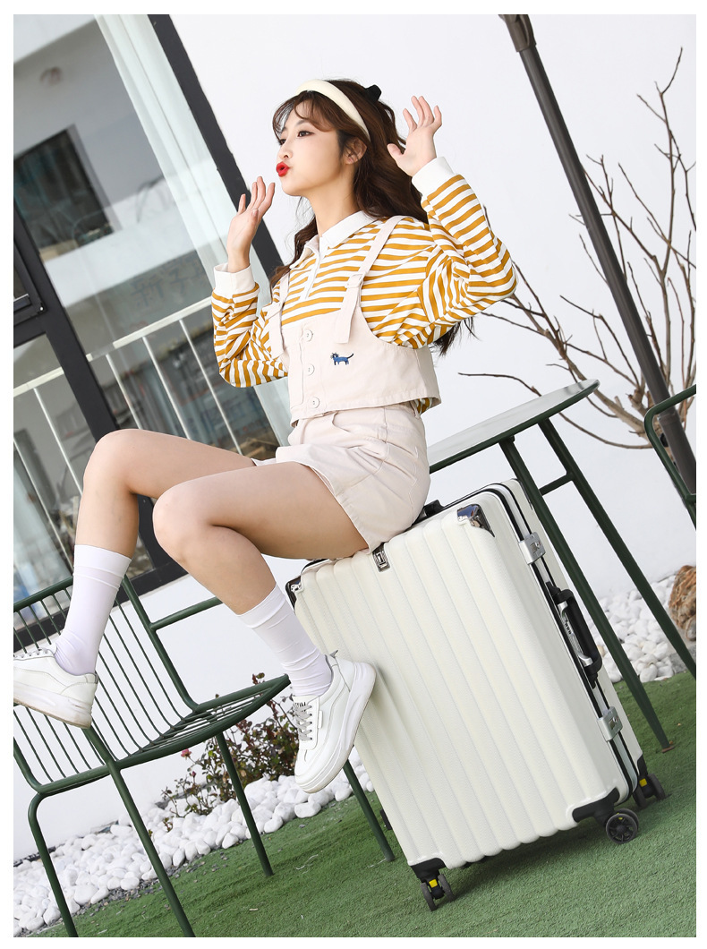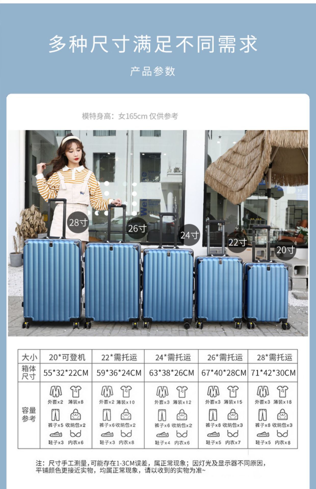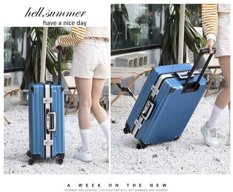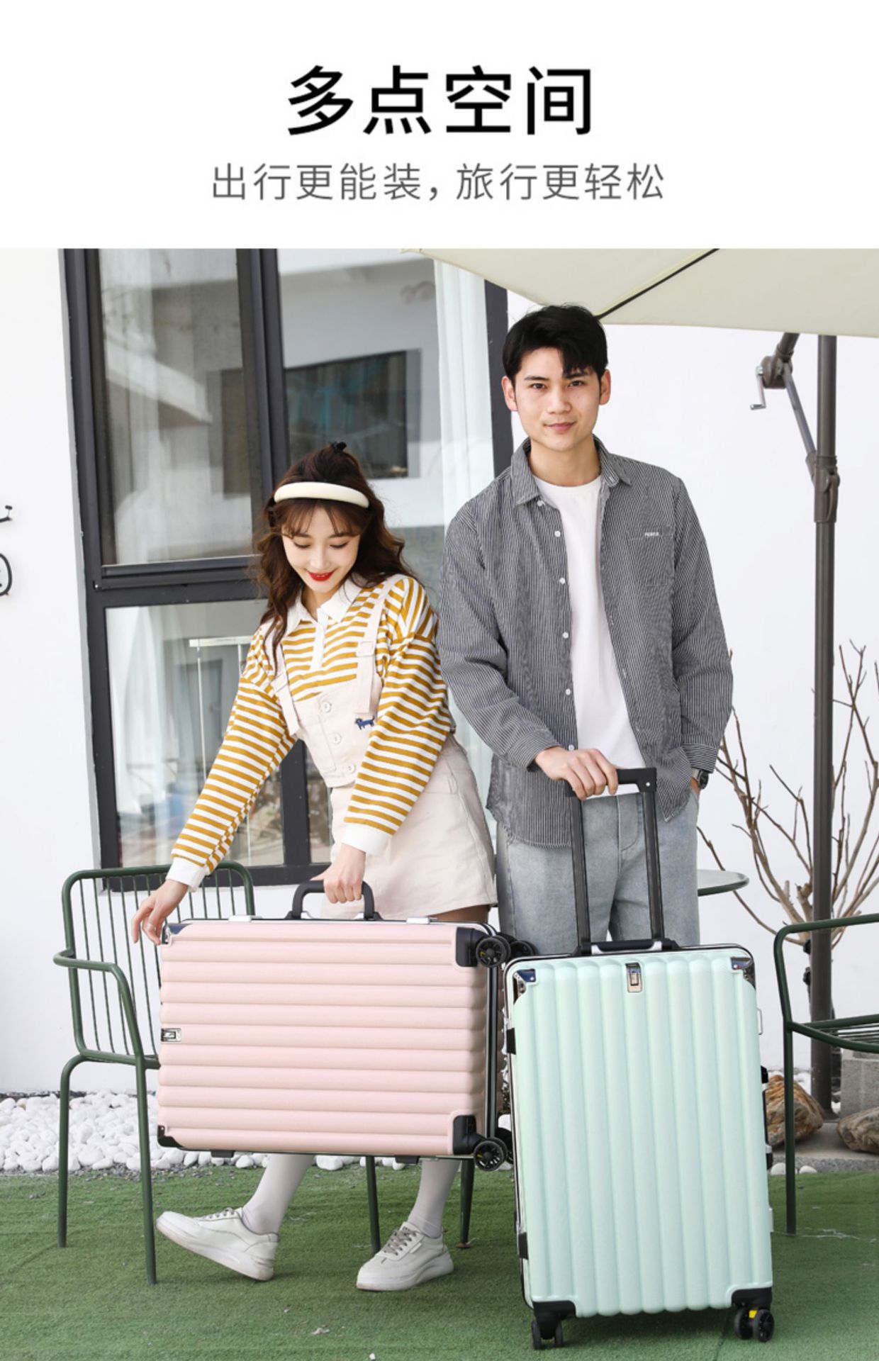 새로운 알루미늄 프레임 모델 트롤리 케이스 20inch 알루미늄 프레임 모델 휴대용 학생 가방 스트라이프 범용 휠 성인 수하물스토어 가기