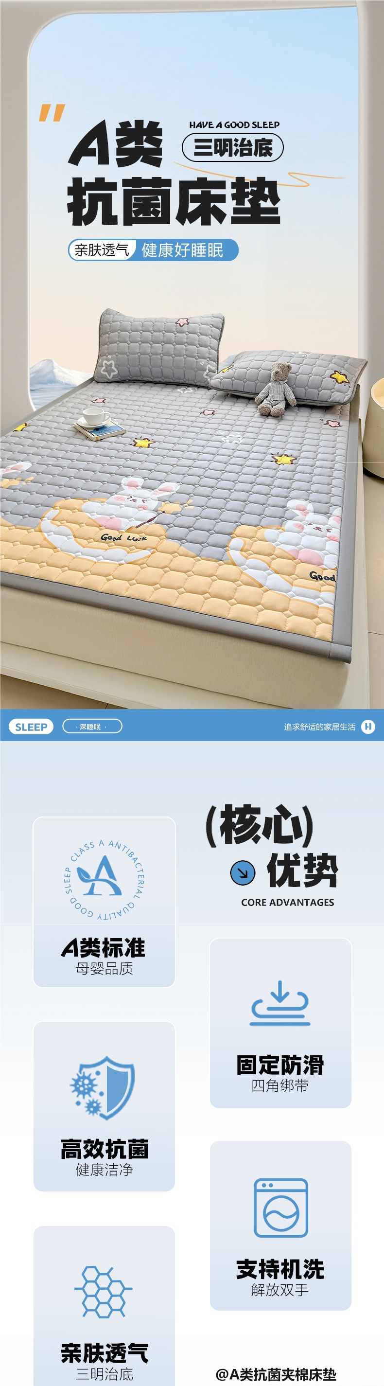 • 별이 빛나는 하늘색 [A급 항균, 미끄럼 방지, 통기성]