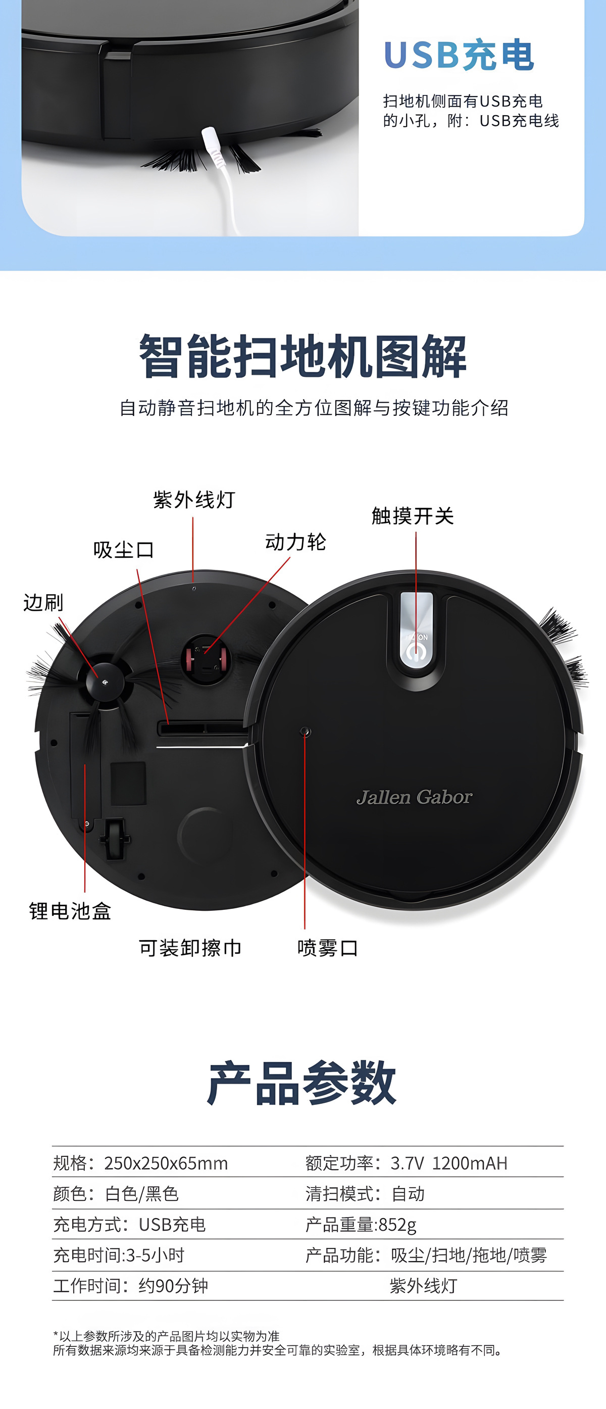 국경 간 청소 로봇 지능형 진공 청소기 가정용 청소 기계 소형 가전 제품 완전 자동 청소 로봇 선물
