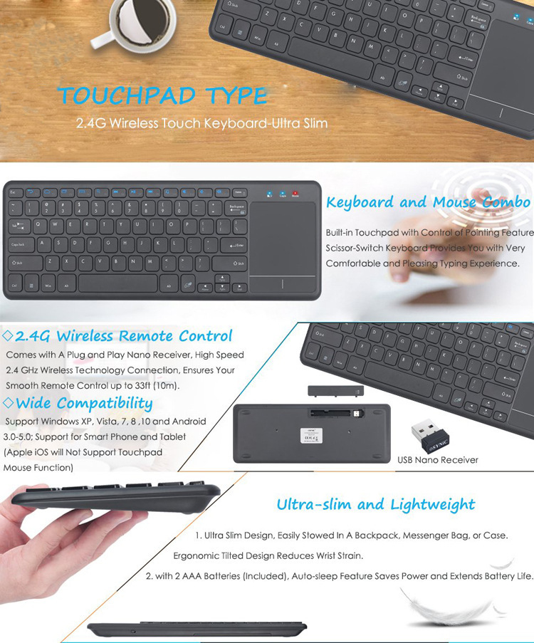 노트북 TV 멀티 장치 키보드에 적합한 터치패드 스마트 키보드가 포함된 2.4G 무선을 공장에서 직접 공급