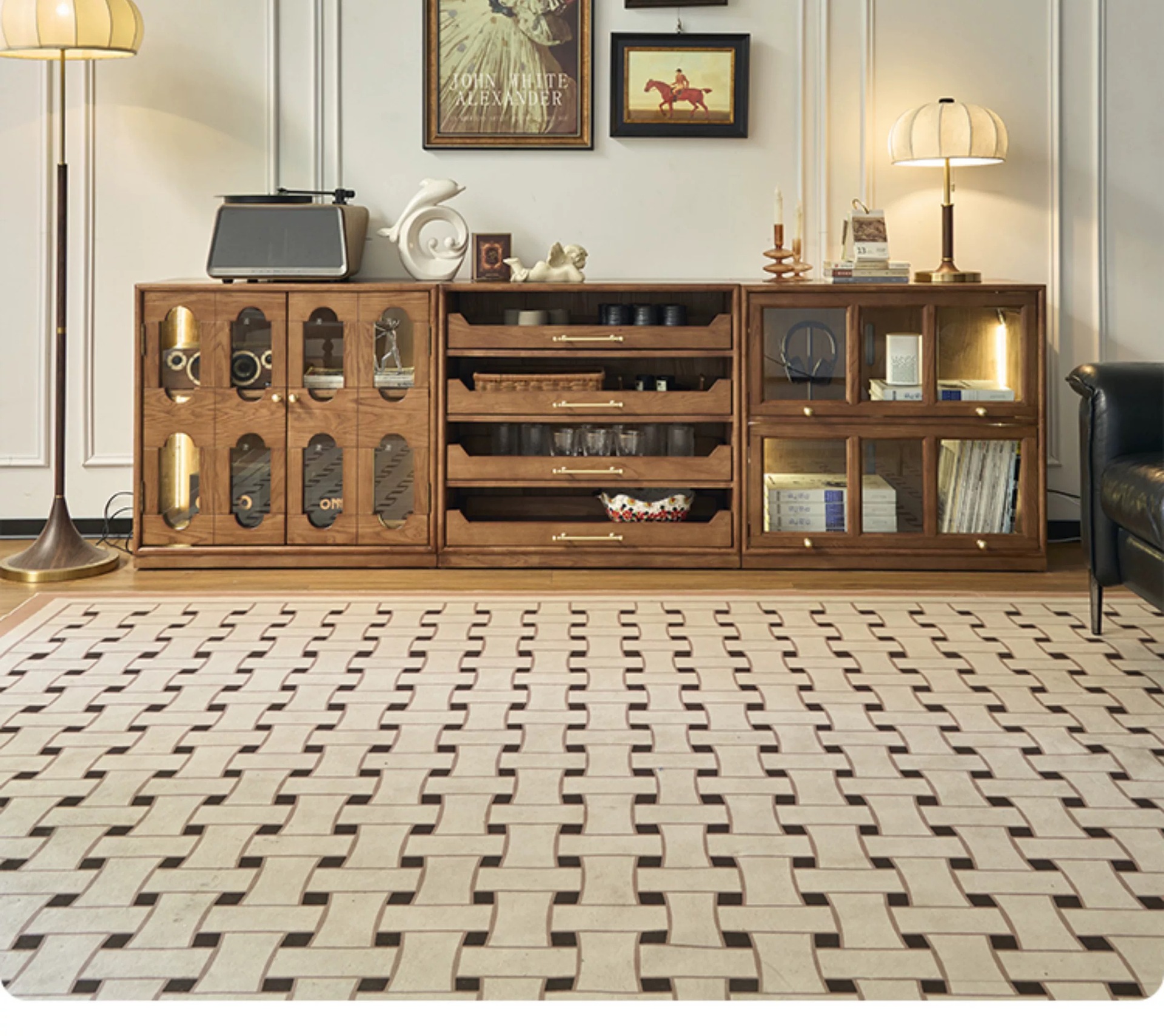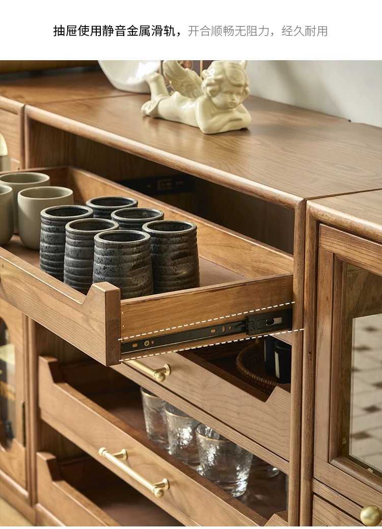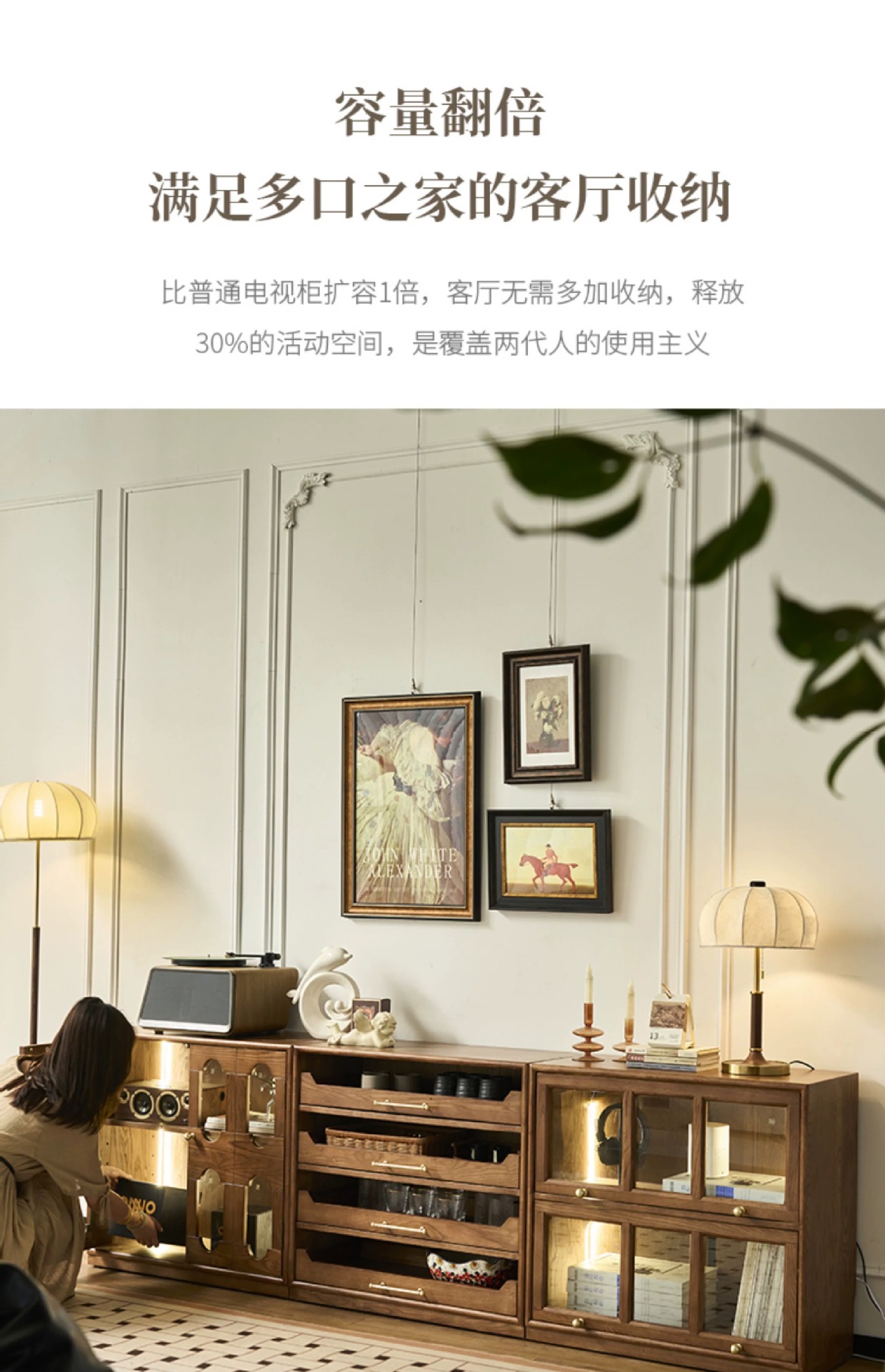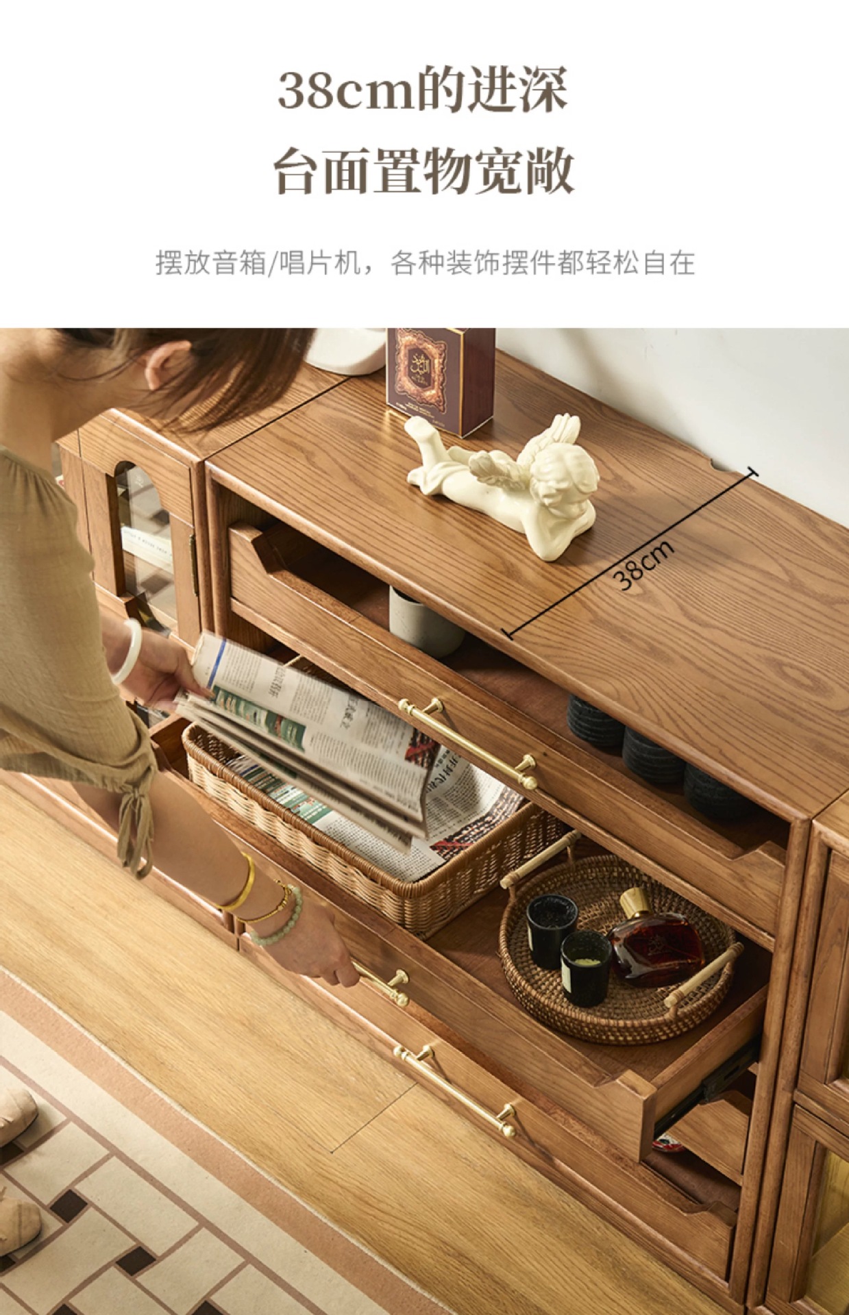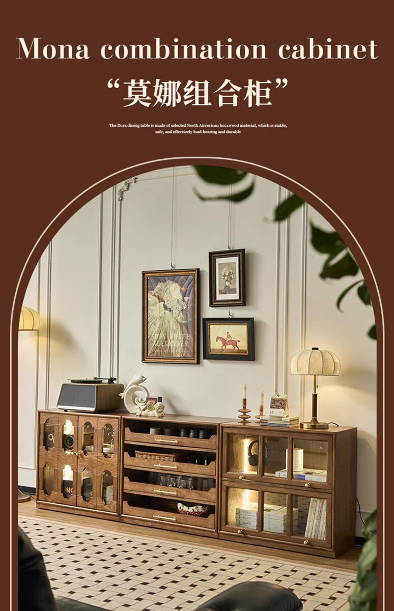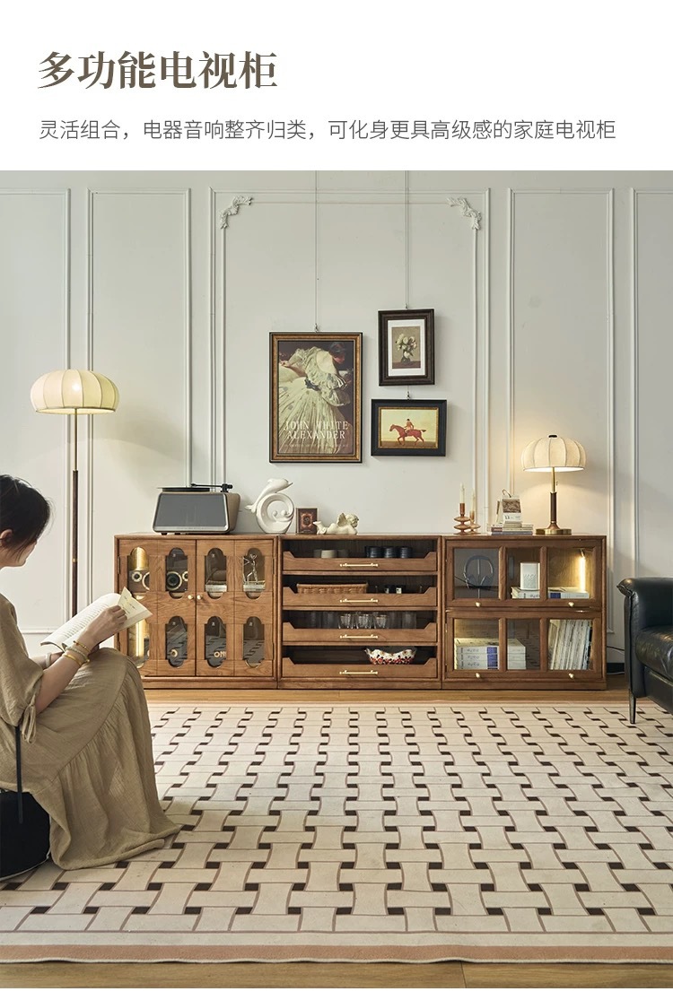 프렌치 레트로 모나 모듈 조합 캐비닛 거실 레드 오크 TV 캐비닛 바닥에서 천장까지 책장 통합 중세 스타일 스토리지