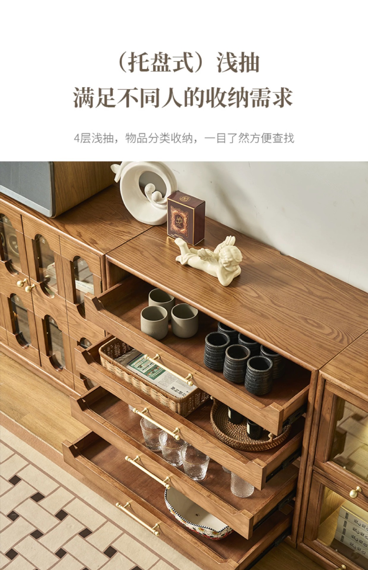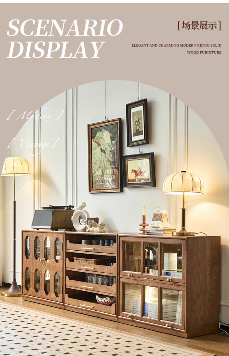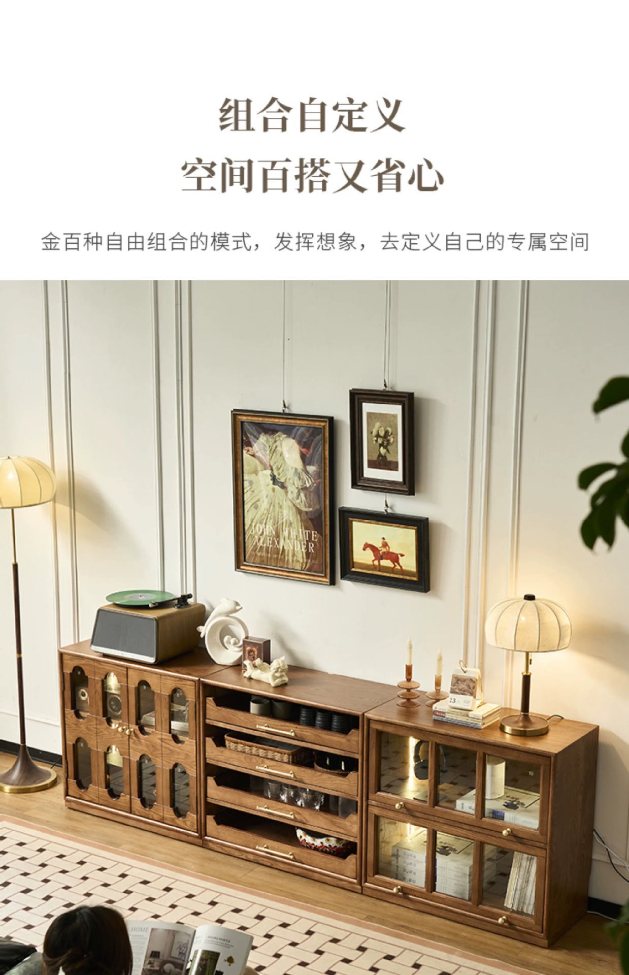프렌치 레트로 모나 모듈 조합 캐비닛 거실 레드 오크 TV 캐비닛 바닥에서 천장까지 책장 통합 중세 스타일 스토리지스토어 가기