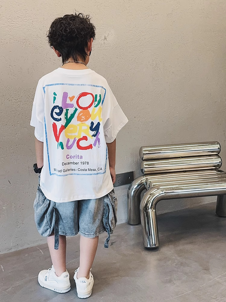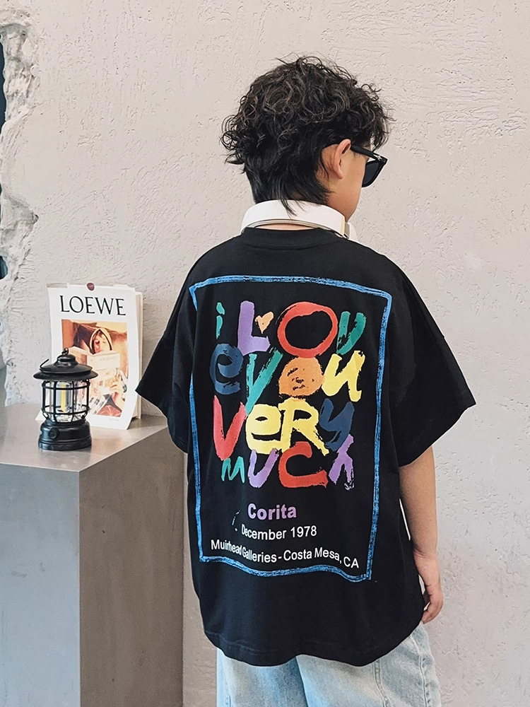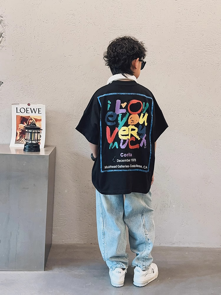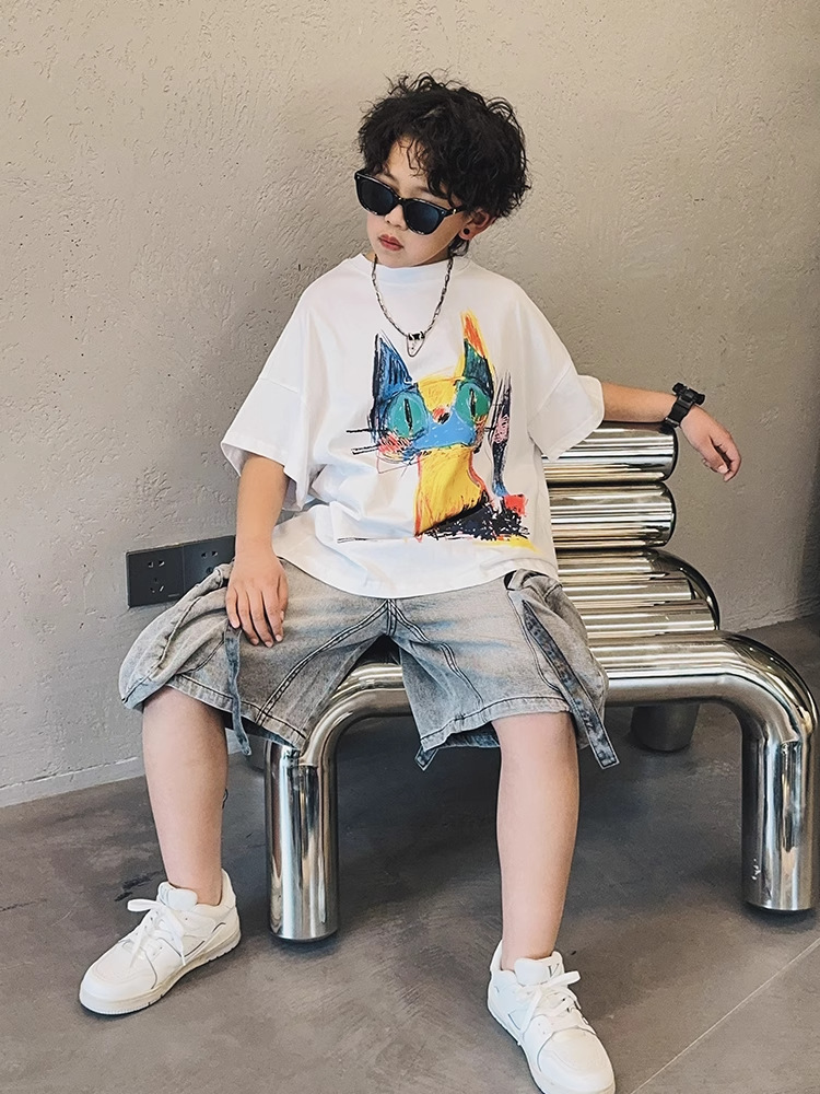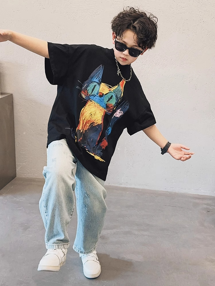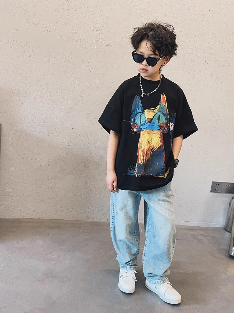 아동용 반팔 티셔츠 소년 여름 2025 새로운 스타일 중대형 어린이 만화 프린트 다용도 루즈 트렌디 쿨 바닥 셔츠스토어 가기