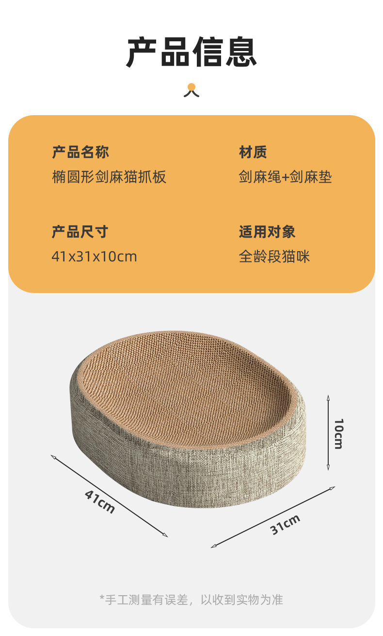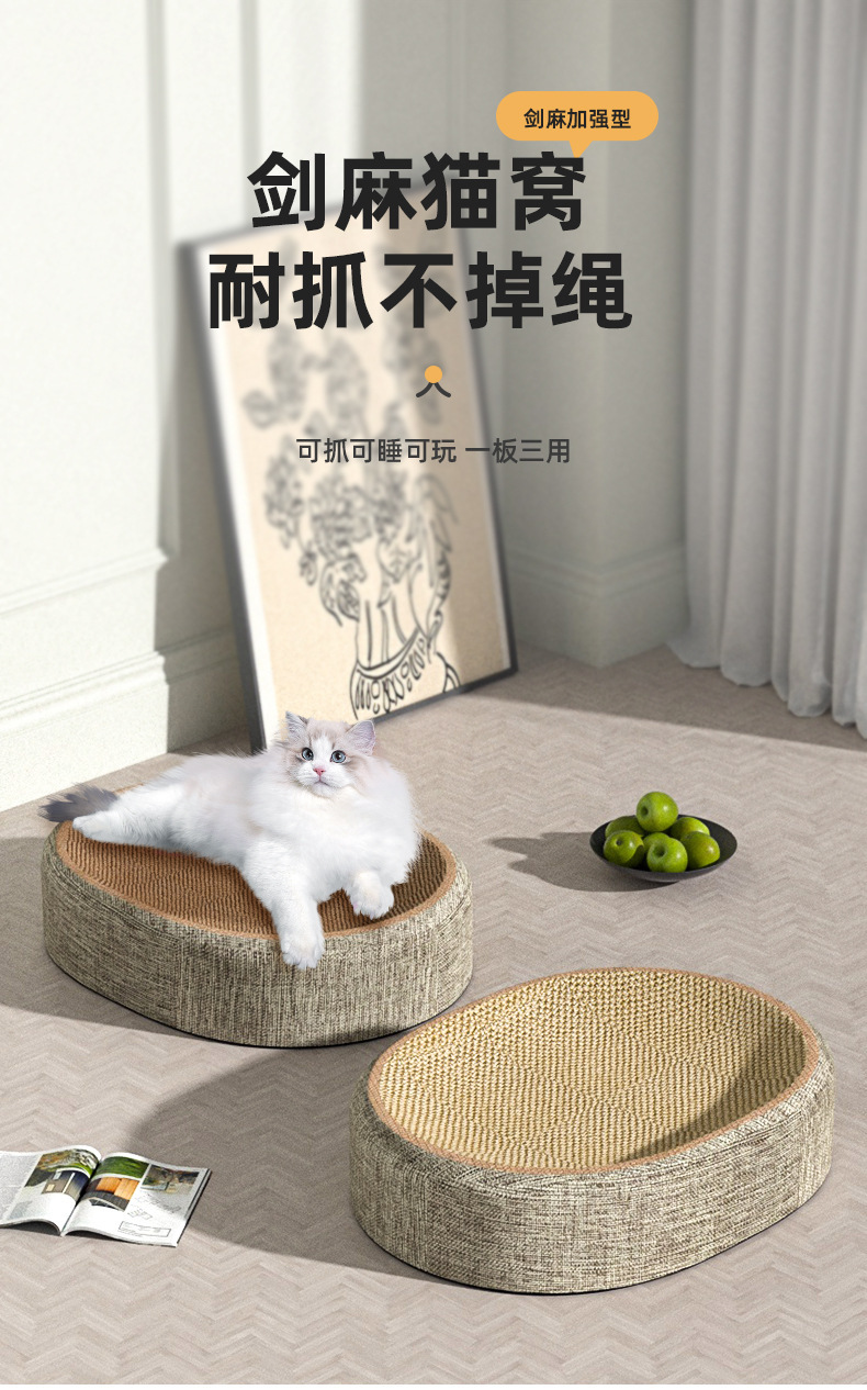 고양이 스크래치 보드 애완 동물 장난감 사이잘 브레이드 고양이 스크래치 보드 고양이 둥지 일체형 타원형 고양이 둥지 내마모성 및 긁힘 방지 고양이 용품스토어 가기