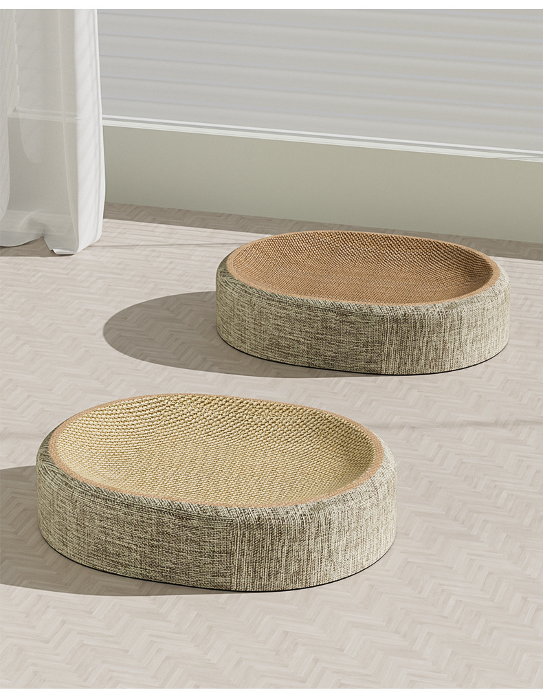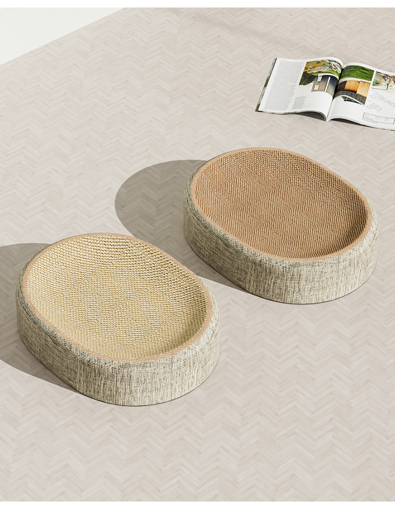 고양이 스크래치 보드 애완 동물 장난감 사이잘 브레이드 고양이 스크래치 보드 고양이 둥지 일체형 타원형 고양이 둥지 내마모성 및 긁힘 방지 고양이 용품