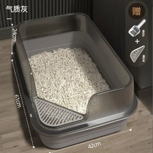 • 고양이 화장실 고양이 화장실 - 특대형 61CM - 로만 그레이(고양이 배변 국자 및 모래 누출판 포함)