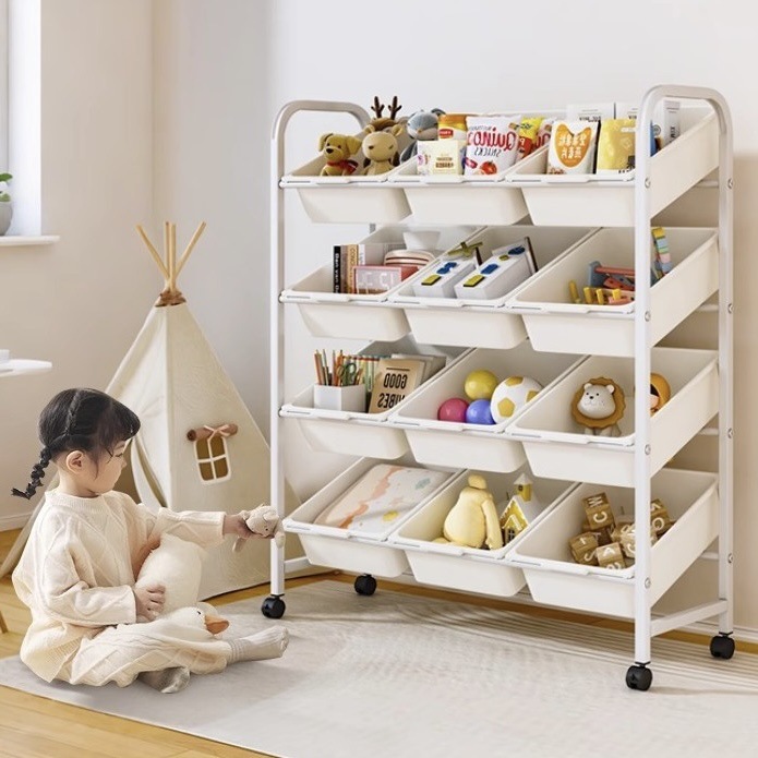 어린이 장난감 보관 랙 대용량 이동식 책장 주방 거실 침실 스낵 보관 랙 바닥에서 멀티 레이어