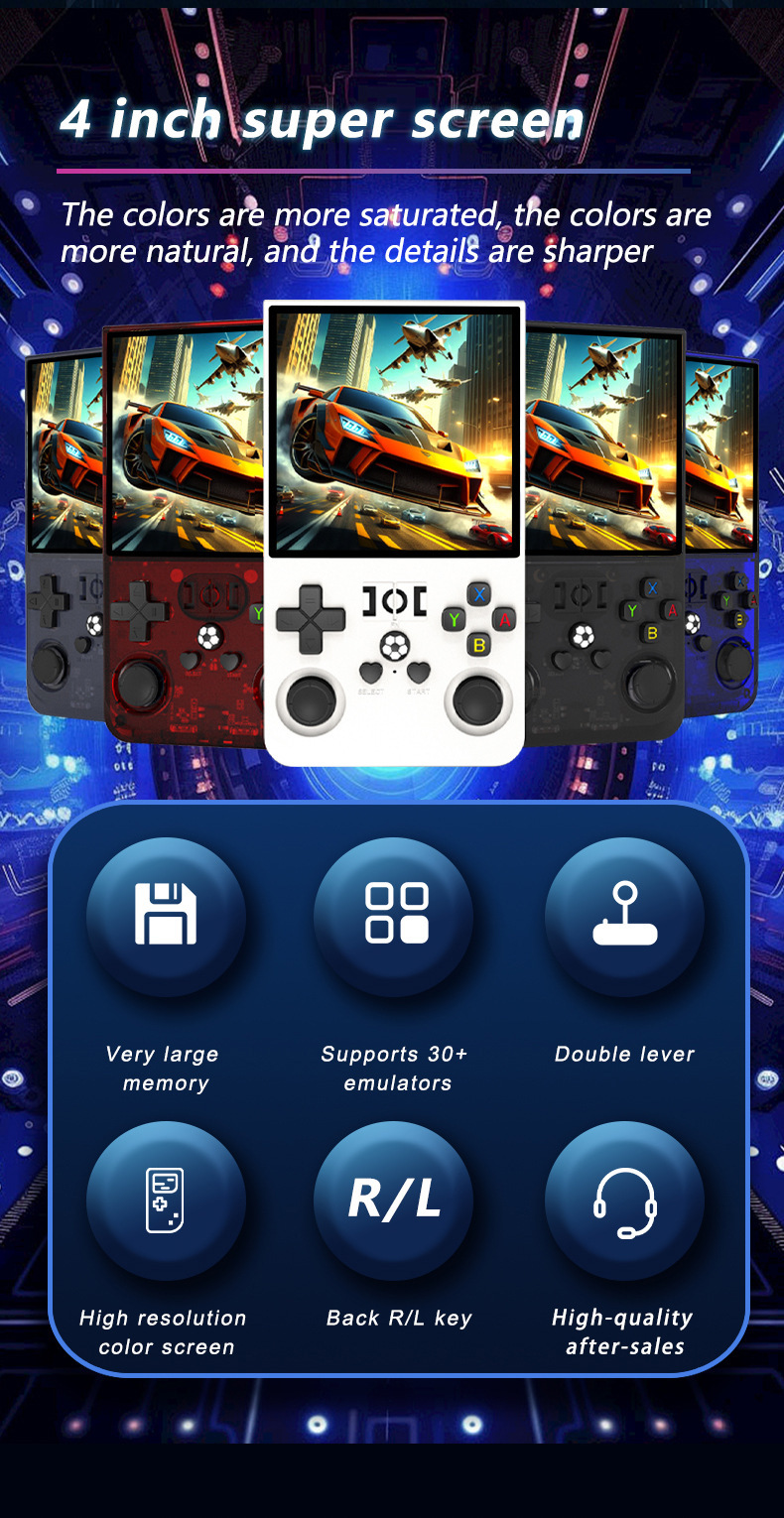 새로운 국경 간 R36MAX 오픈 소스 휴대용 게임 콘솔 휴대용 복고풍 아케이드 게임 향수 듀얼 시스템 휴대용 게임 콘솔스토어 가기