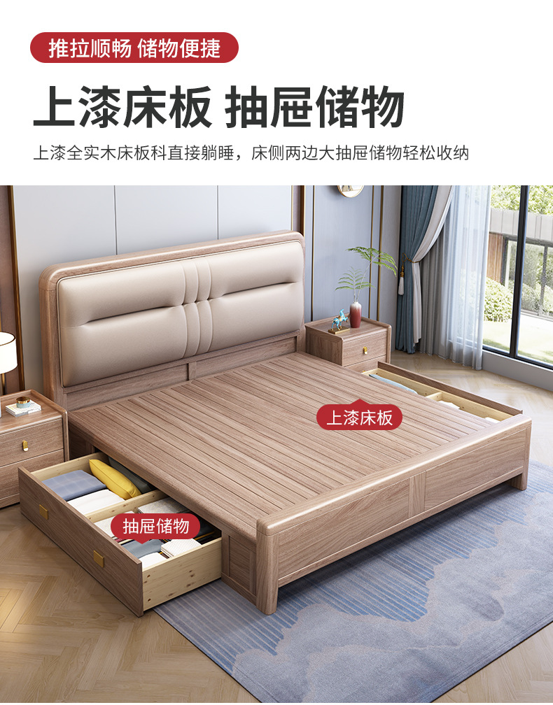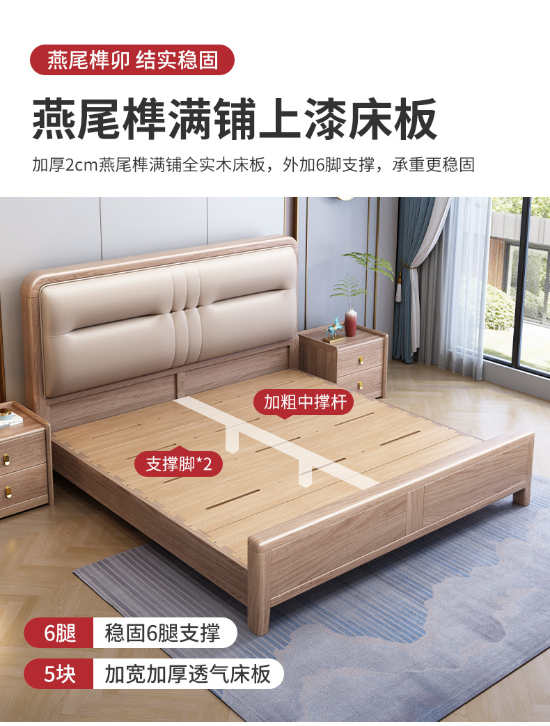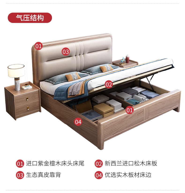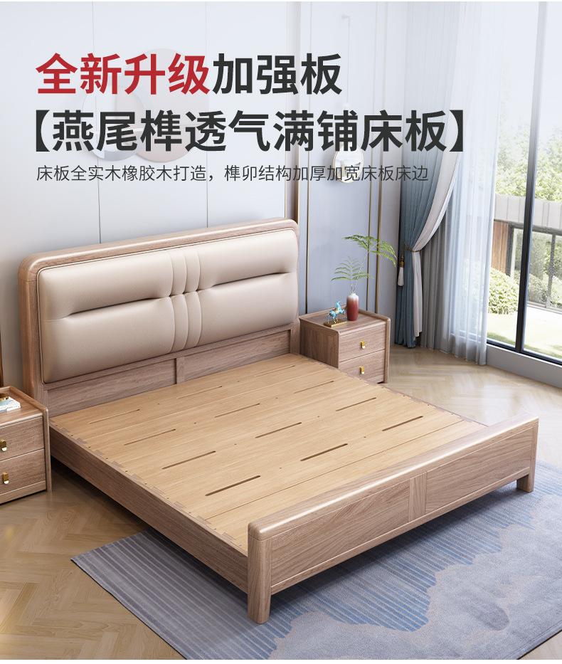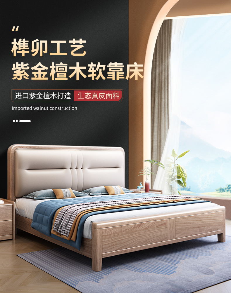 보라색 금 백단 원목 침대, 원목, 기둥 및 모따기, 두꺼운 마스터 침실, 현대적이고 단순한 고급 더블 침대 수납스토어 가기