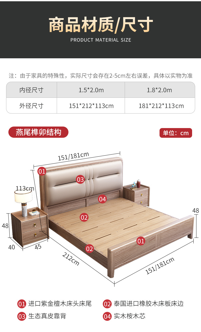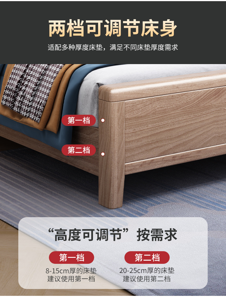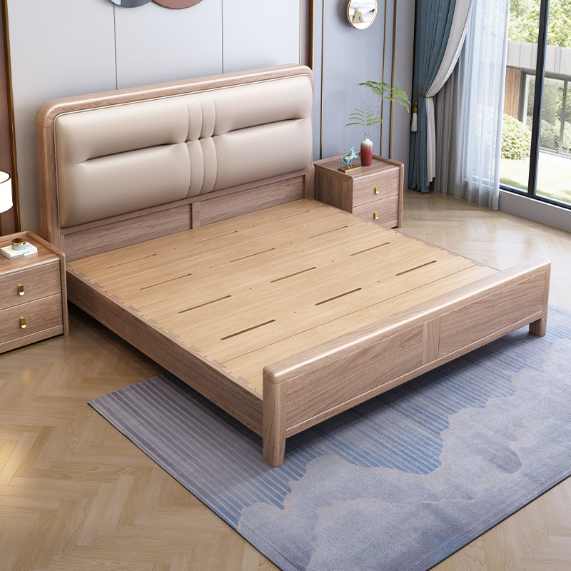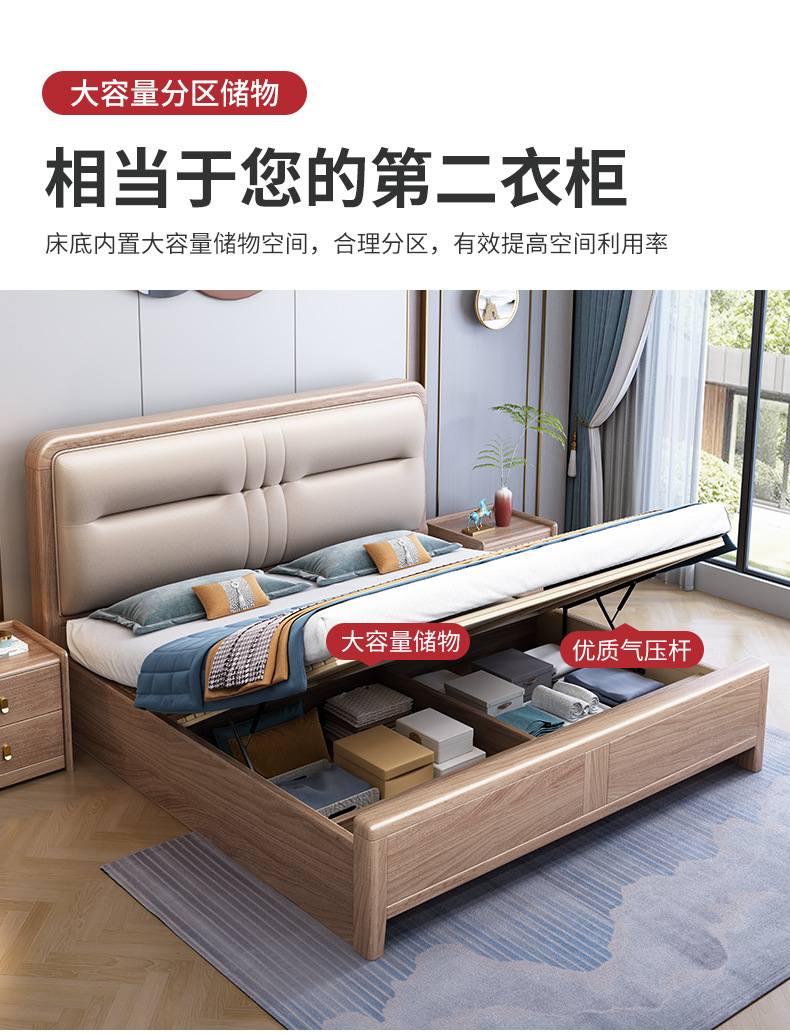 보라색 금 백단 원목 침대, 원목, 기둥 및 모따기, 두꺼운 마스터 침실, 현대적이고 단순한 고급 더블 침대 수납스토어 가기