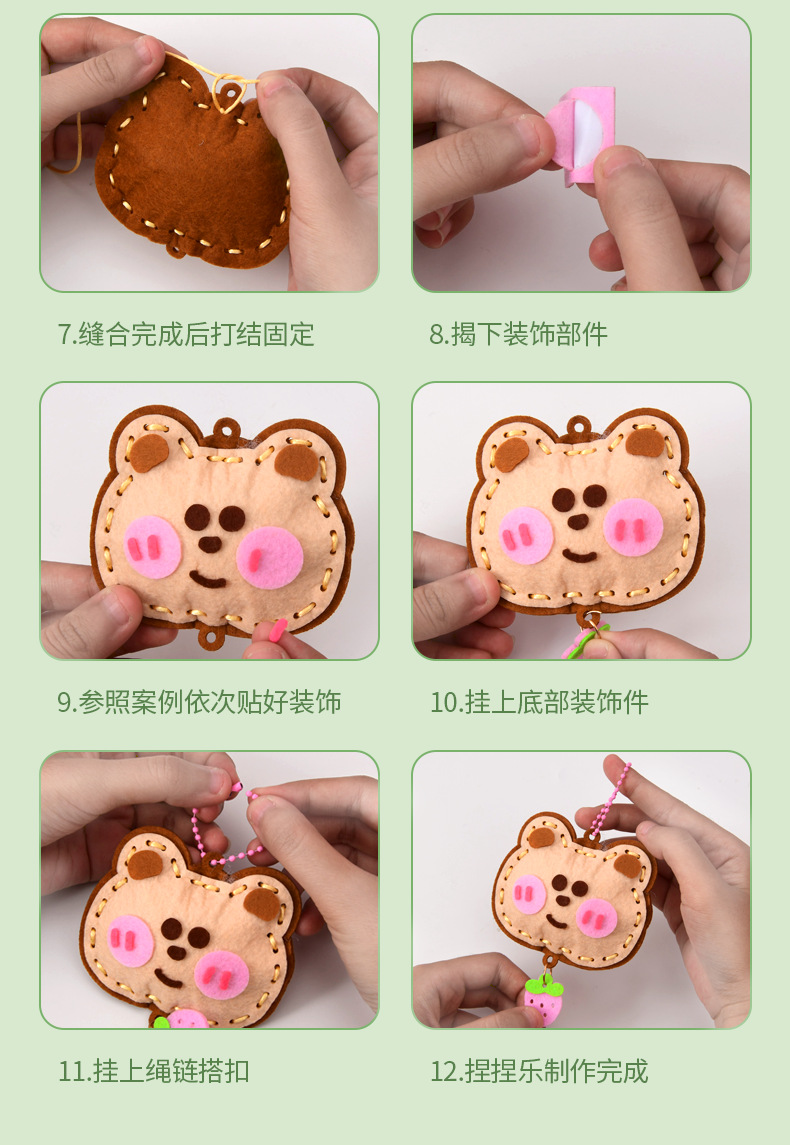 어린이 수제 diy 만화 동물 펠트 펜던트 유치원 봉제 재료 패키지 키 펜던트 버클 선물스토어 가기