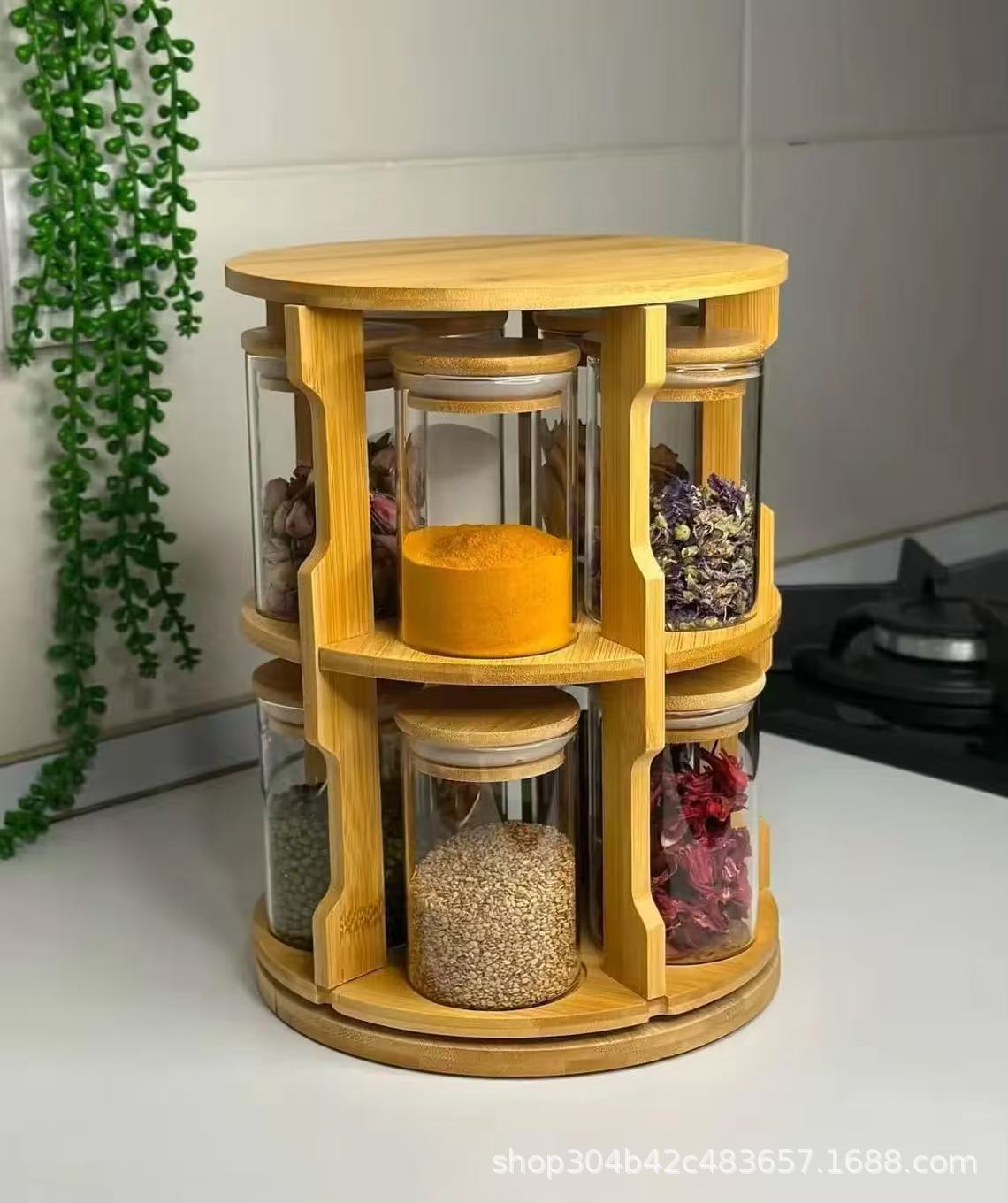 가정용 목재 조미료 랙 대나무 주방 랙 2 층 회전 트레이 캐비닛 조미료 보관 랙 이동식스토어 가기