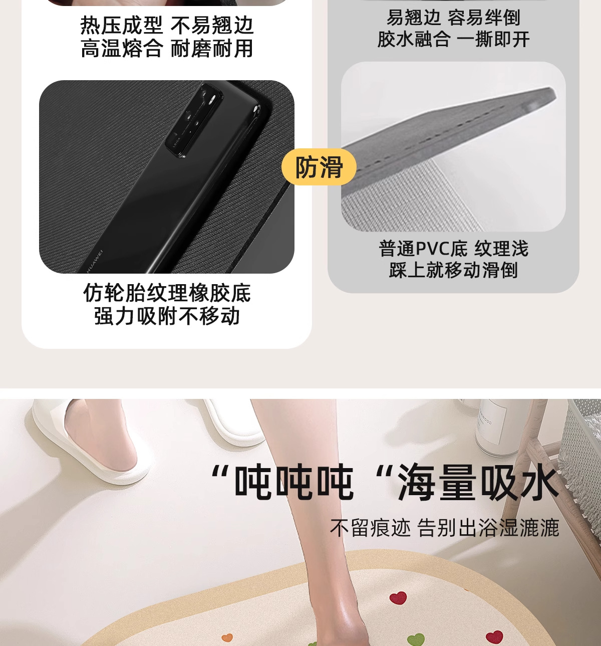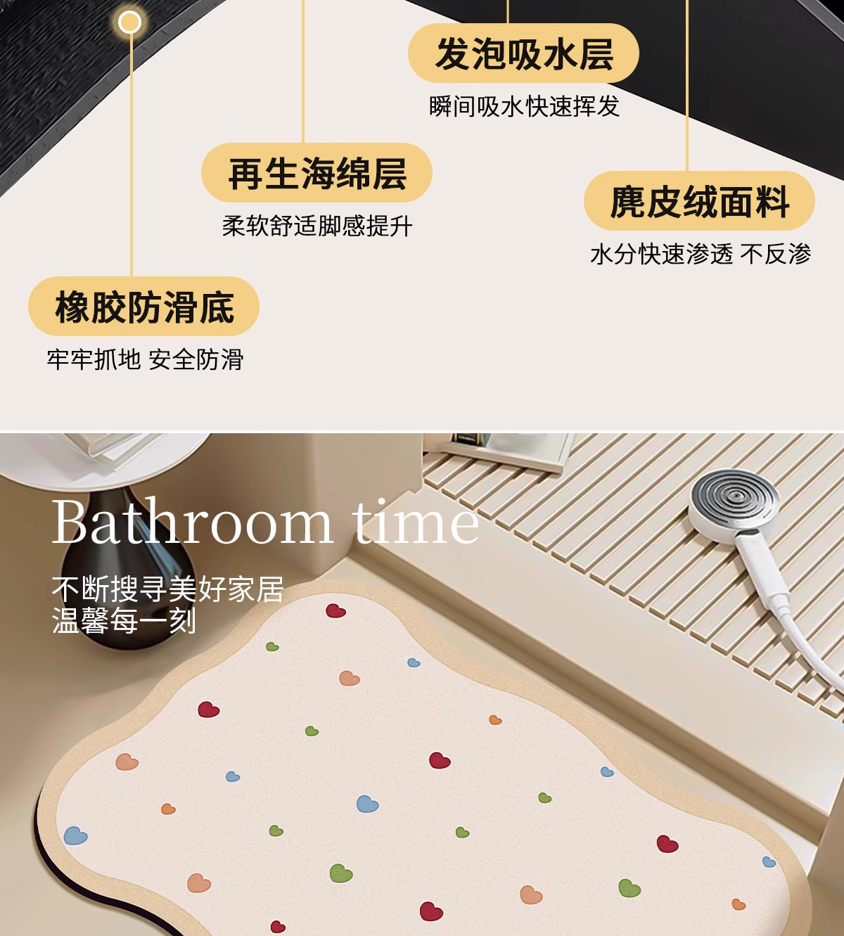 욕실 바닥 매트, 욕실 미끄럼 방지 흡수성 화장실 강력한 출입구 욕실 규조토 진흙 속건성 발 매트 카펫 욕실스토어 가기