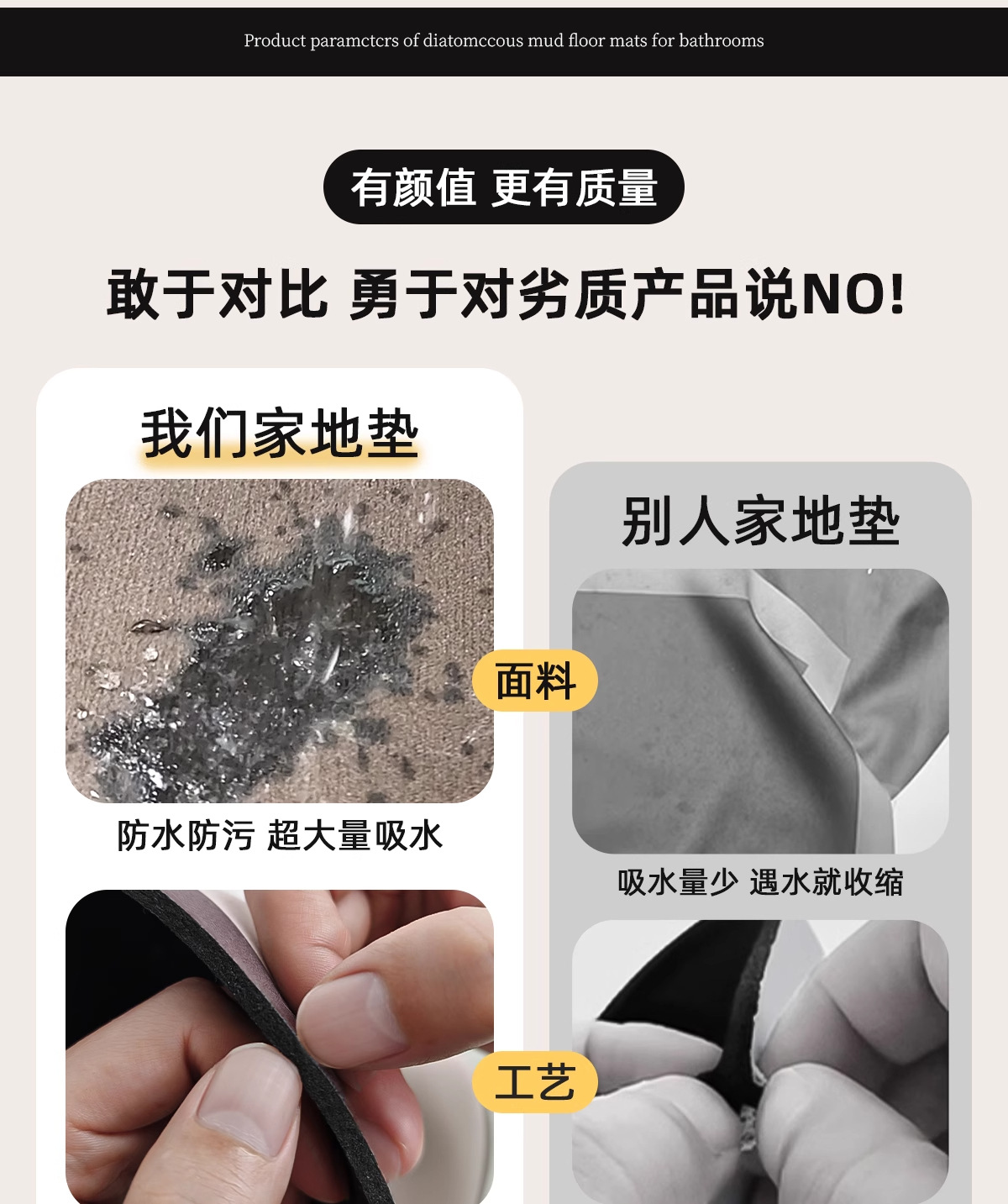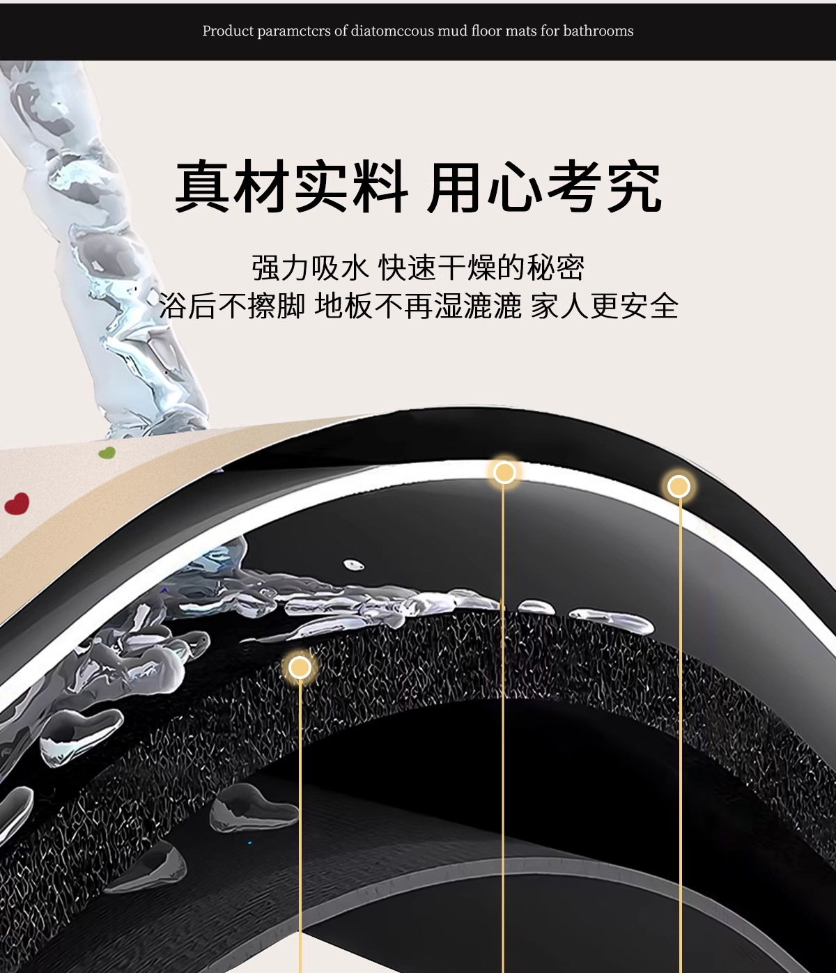 욕실 바닥 매트, 욕실 미끄럼 방지 흡수성 화장실 강력한 출입구 욕실 규조토 진흙 속건성 발 매트 카펫 욕실