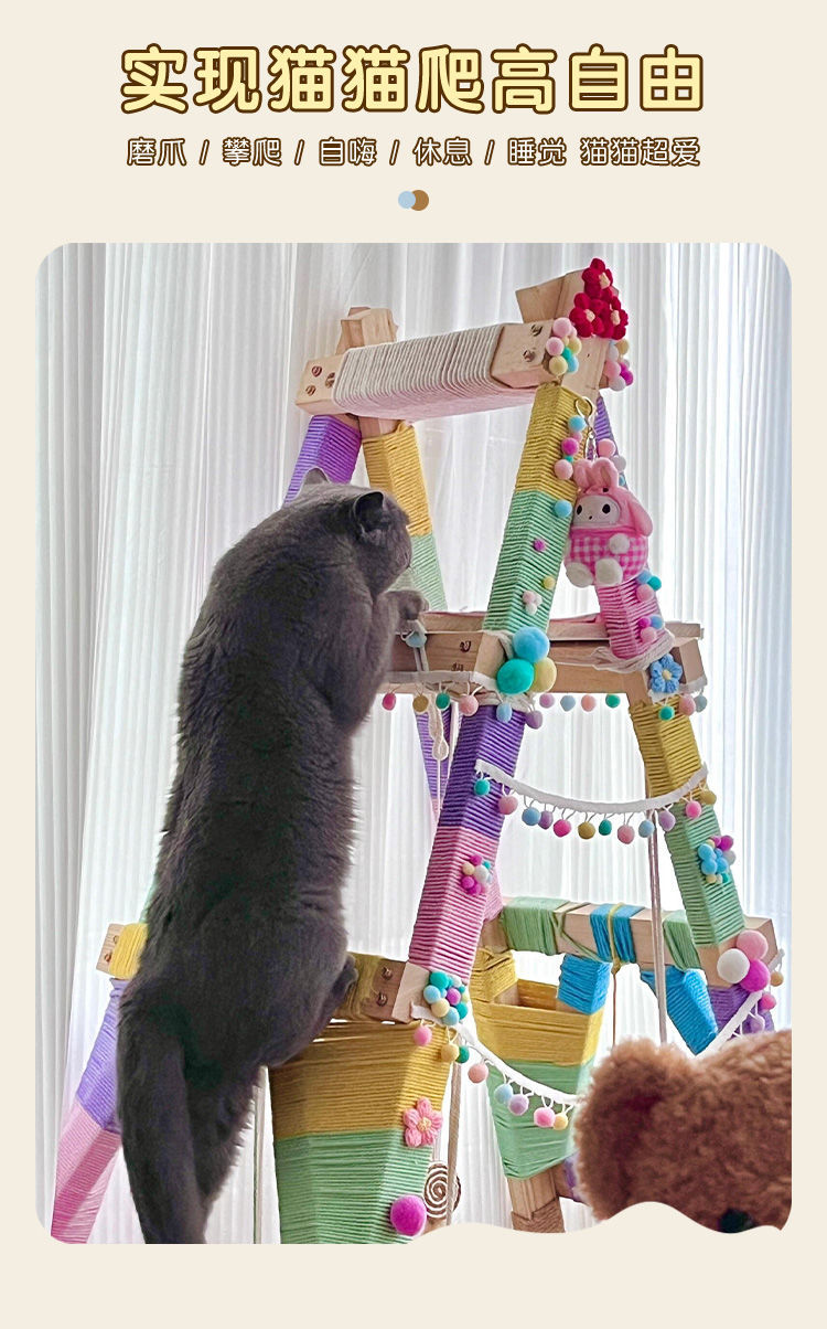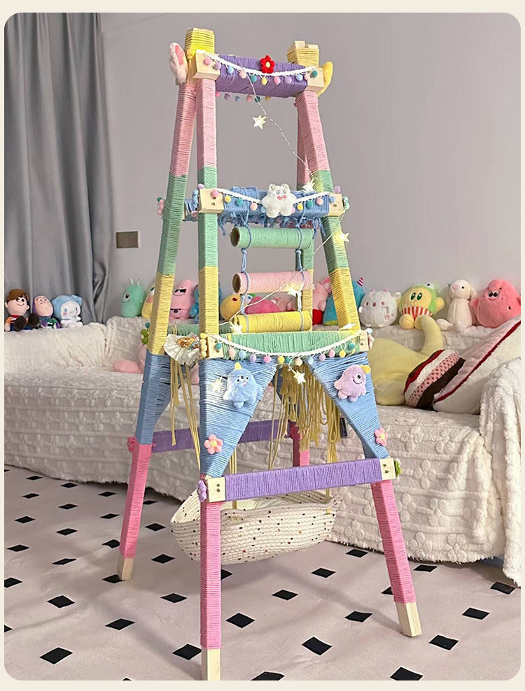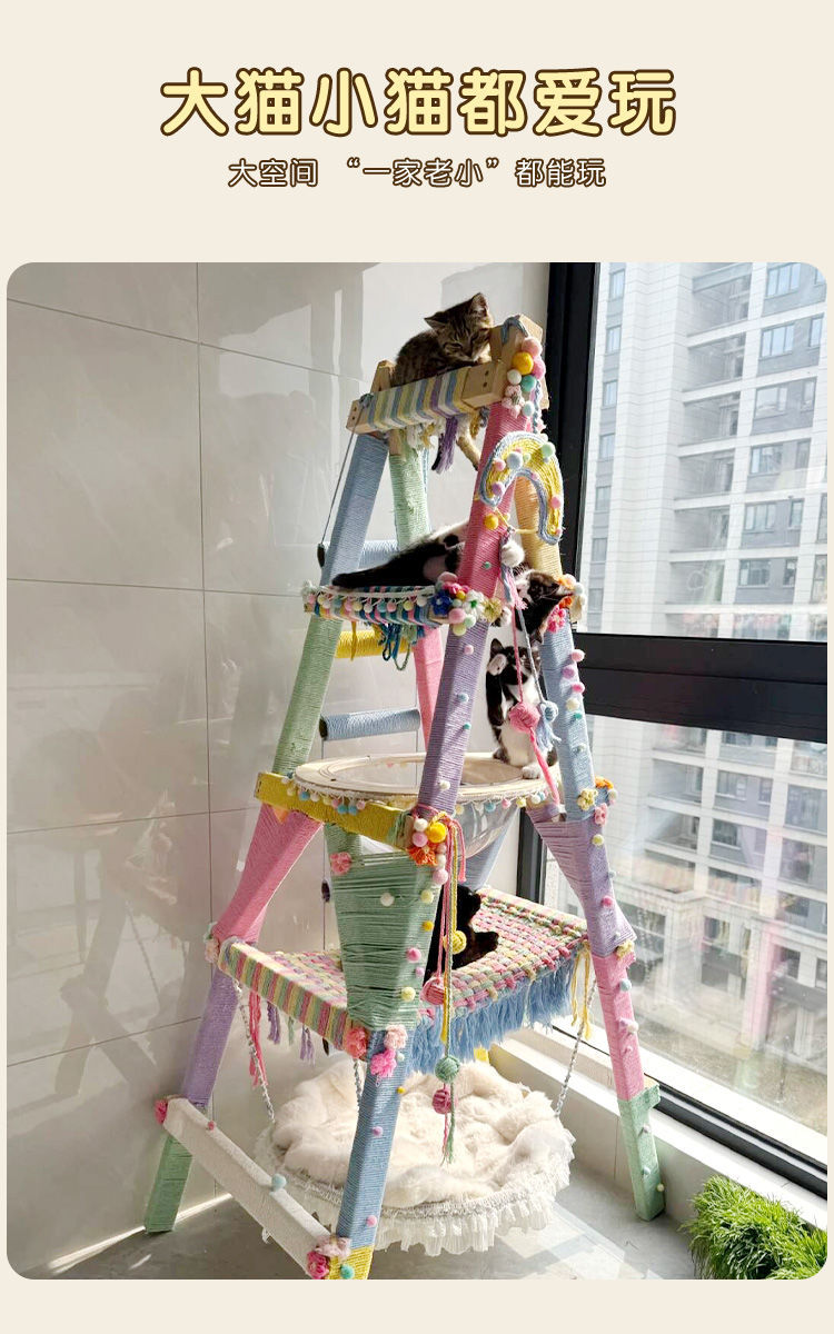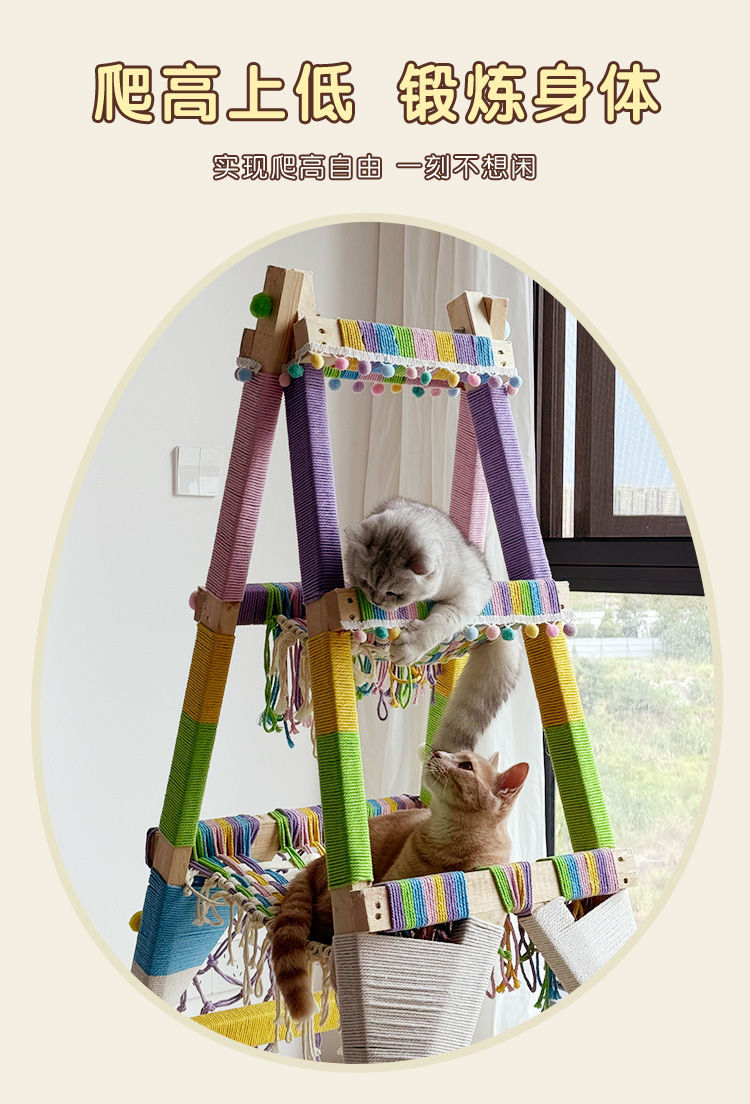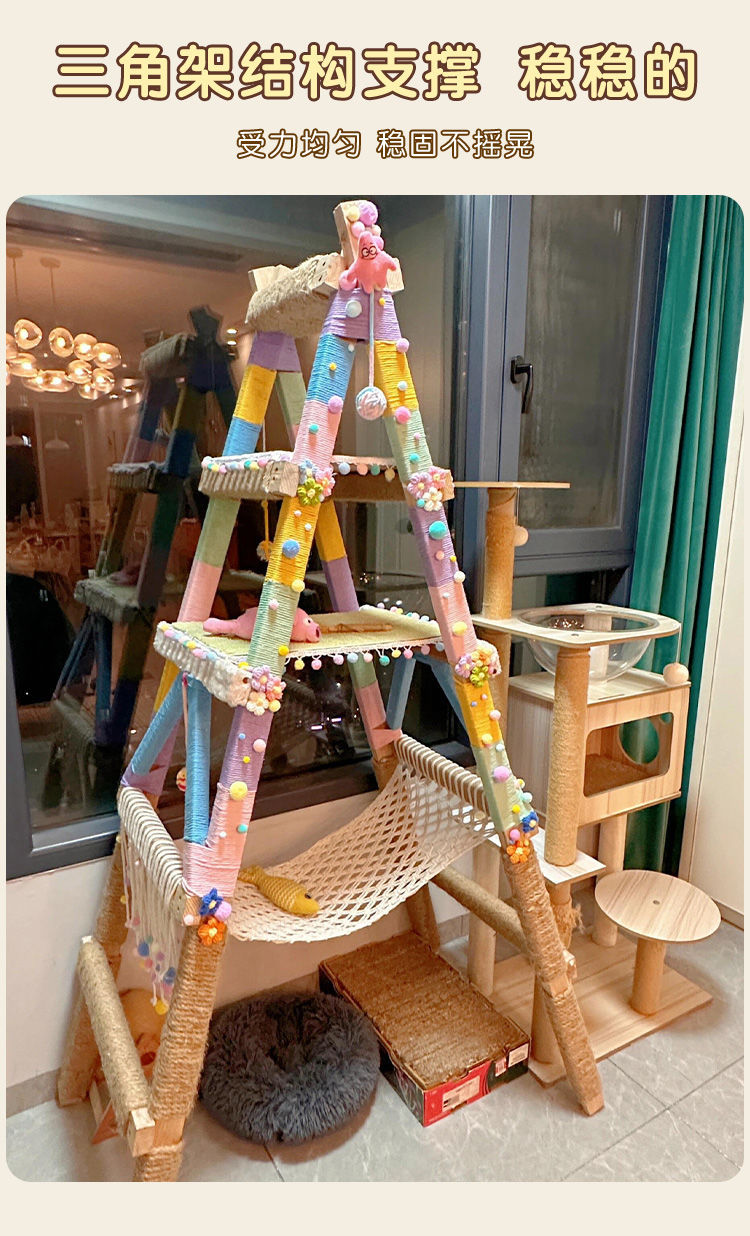 • 2.1m단 고양이 등산 프레임 + 컬러풀한 면 로프 5롤