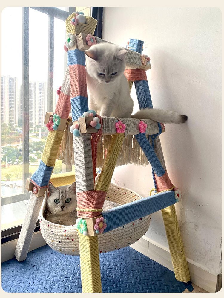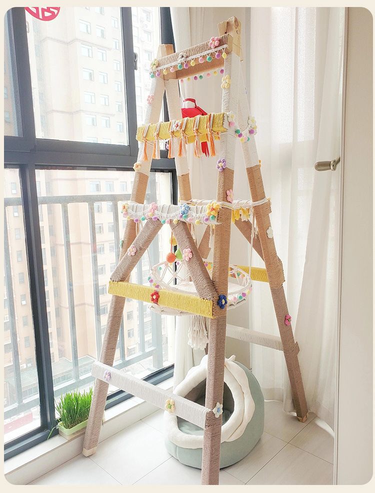 • 1.9m단 고양이 등산 프레임 + 컬러풀한 면 로프 5롤