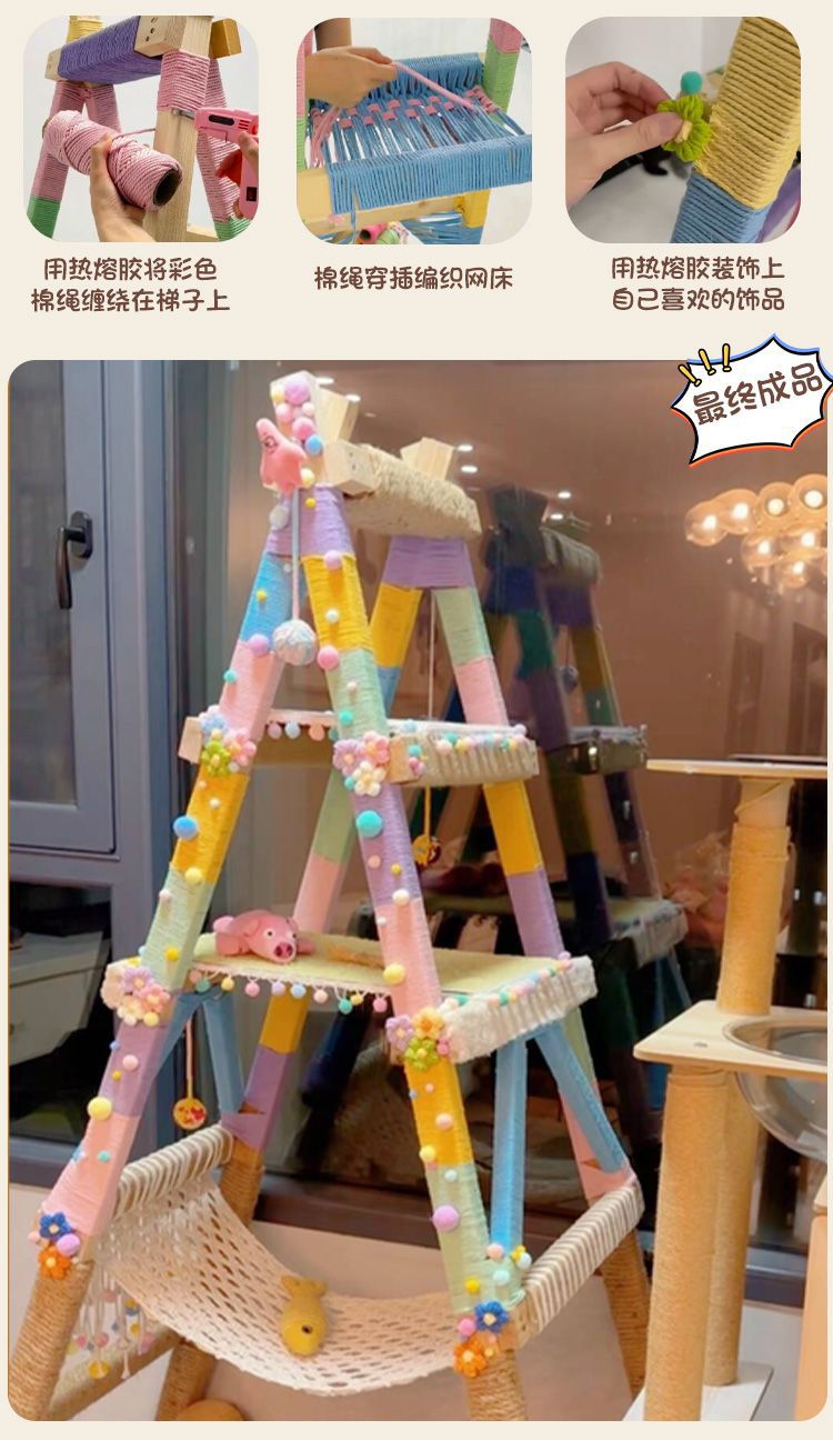 고양이 사다리, 고양이 로프 사다리, 재료 액세서리, 원목 사다리, 고양이 등반 프레임, 면 로프 헤링본 사다리, 기본 항목, 삼나무스토어 가기