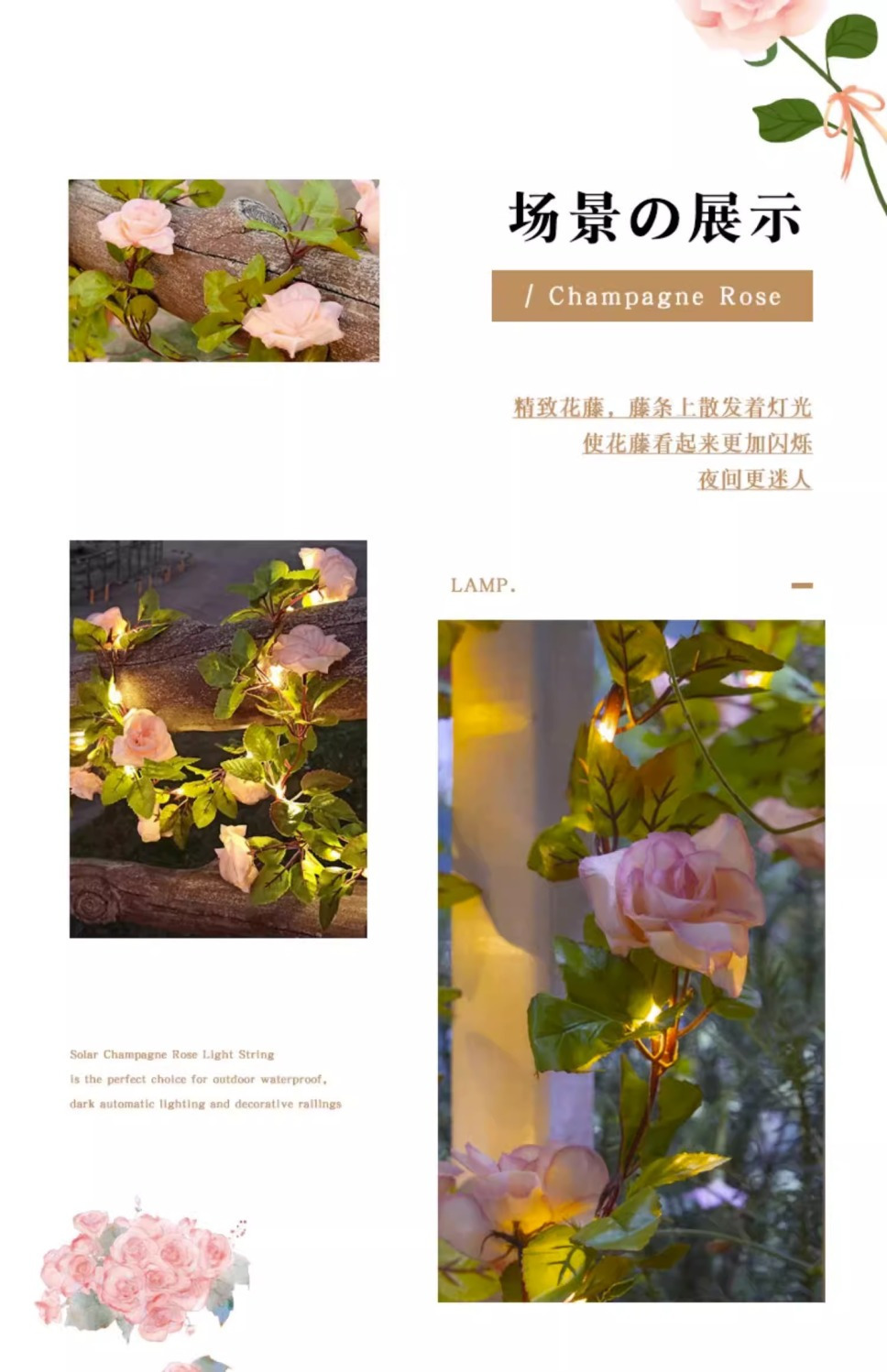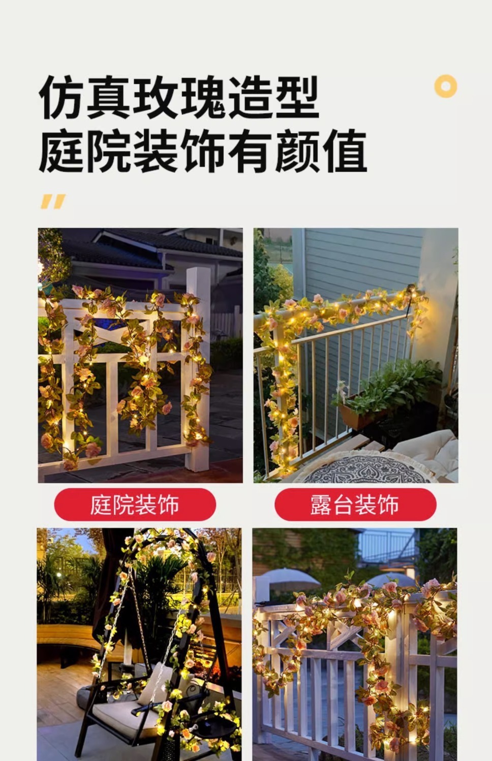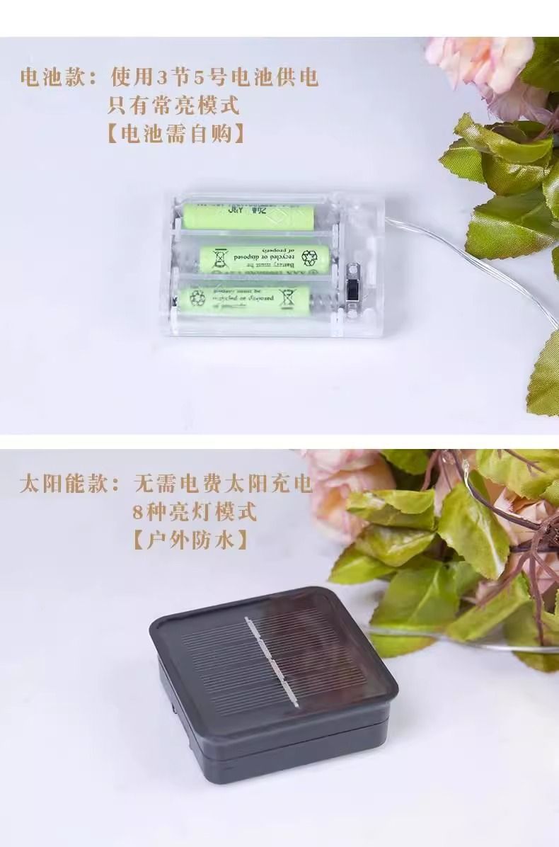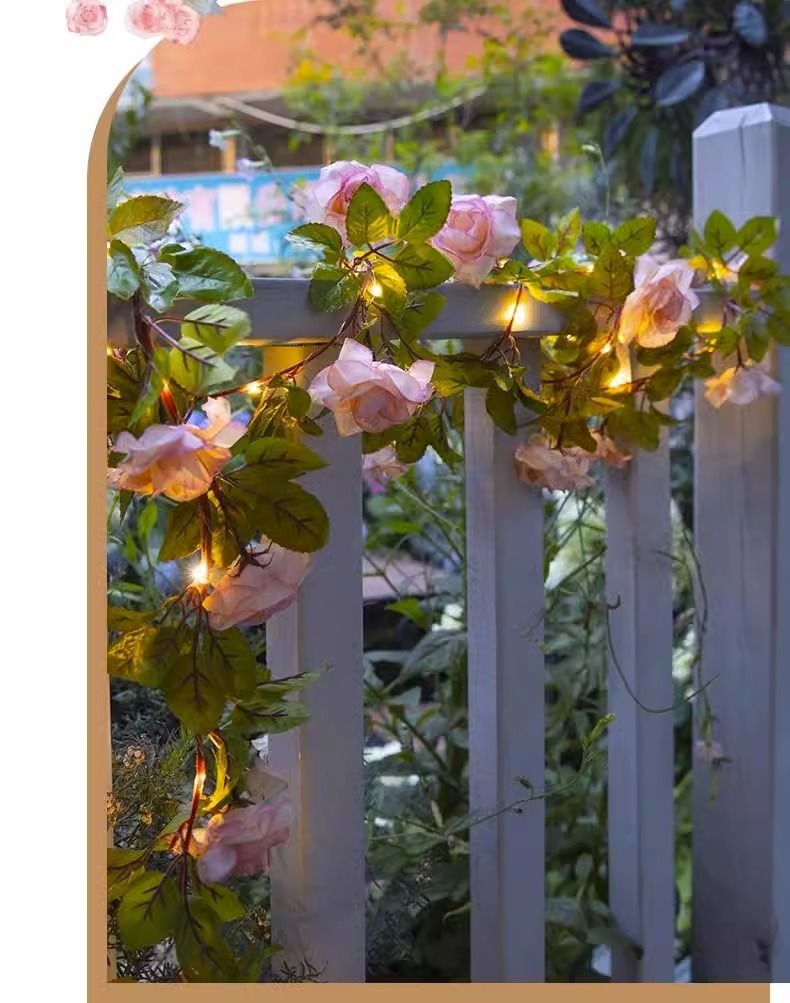 국경 간 새로운 LED 태양 야외 방수 침실 방 정원 장식 등나무 장미 꽃 플러그인 빛 문자열