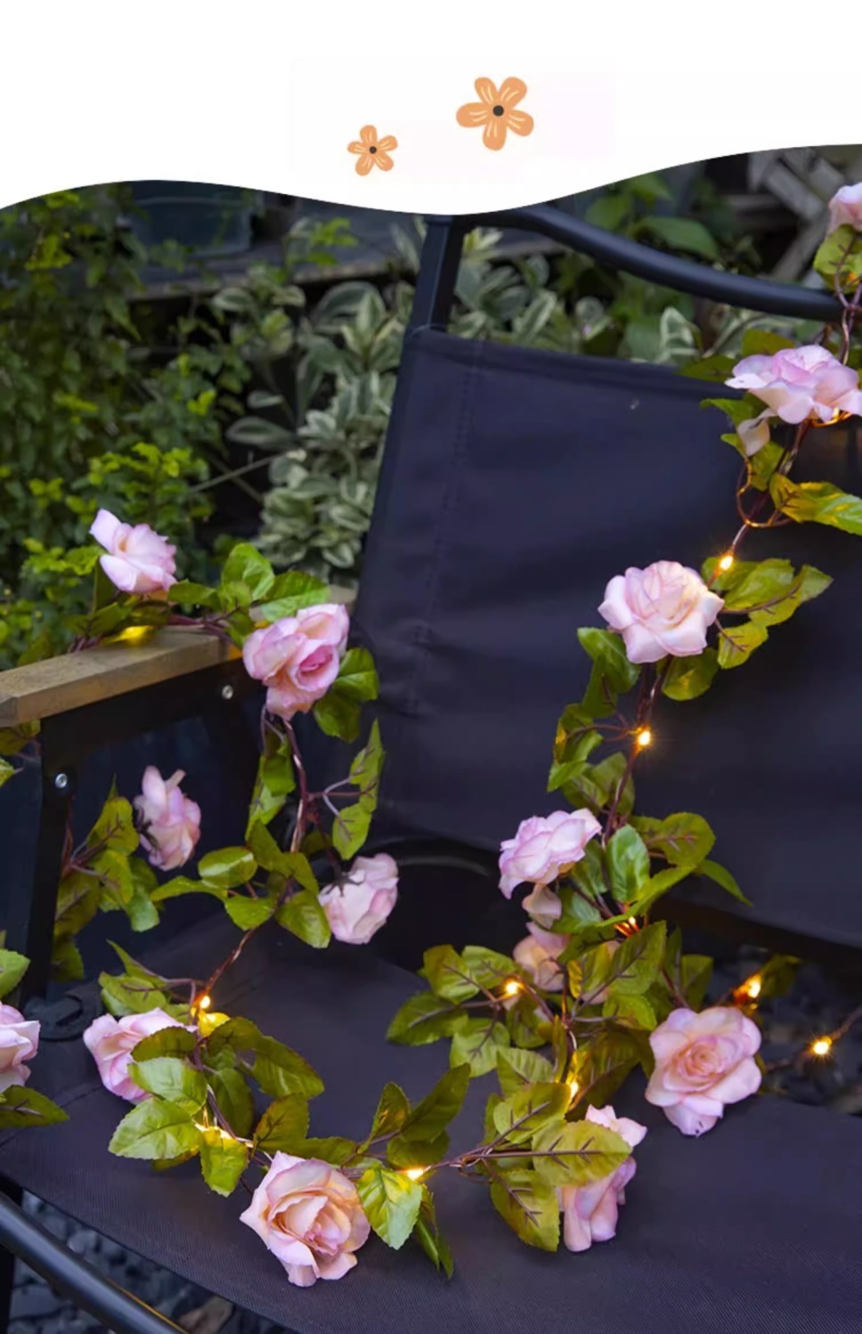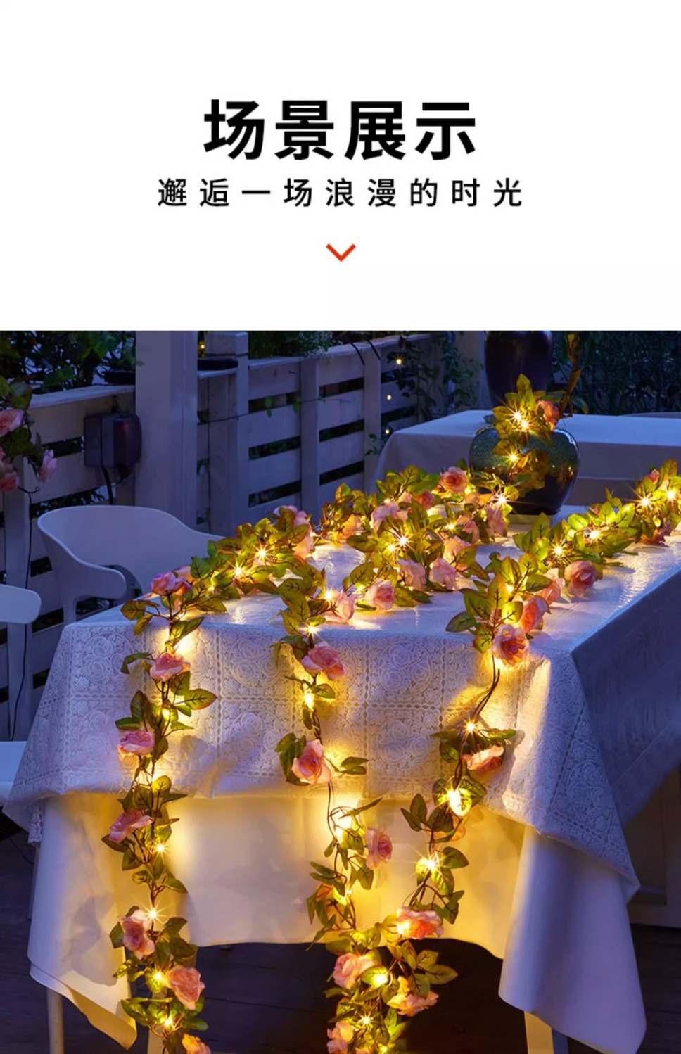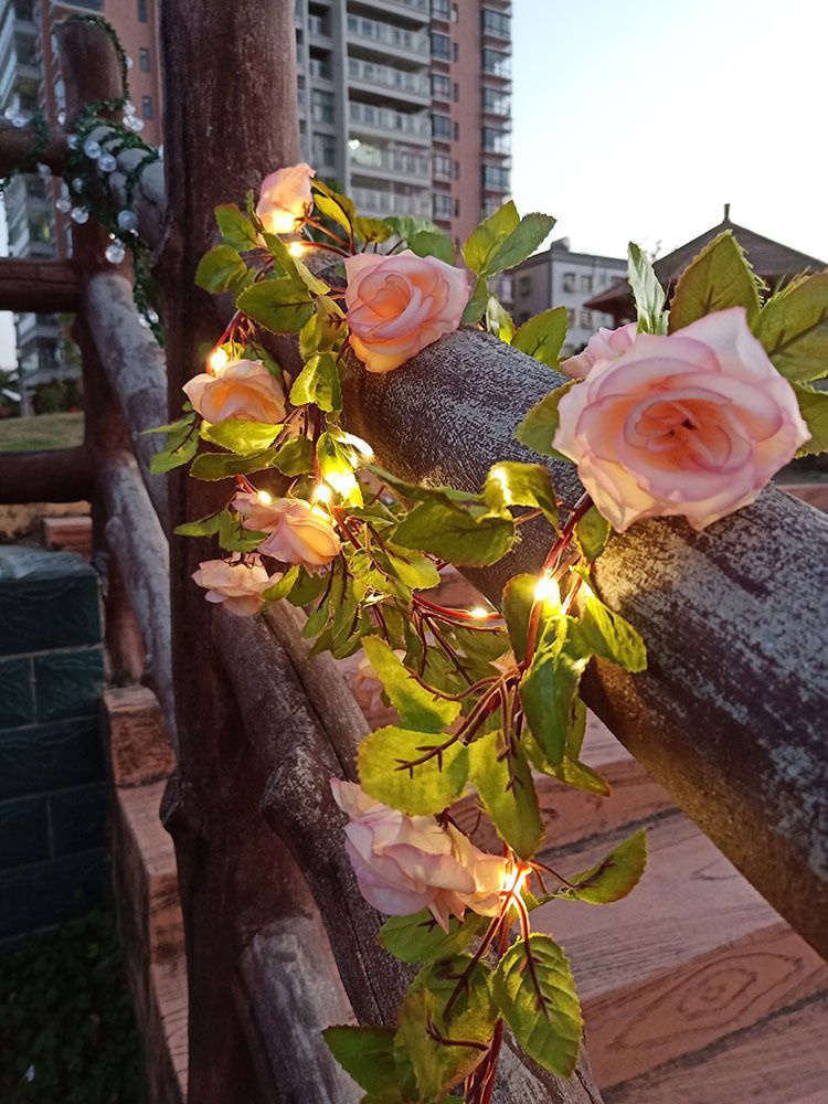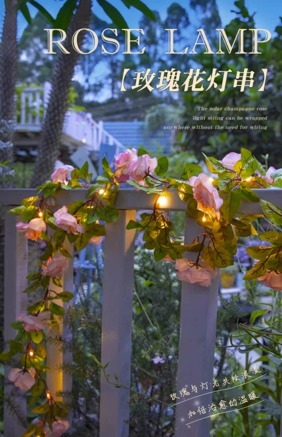 국경 간 새로운 LED 태양 야외 방수 침실 방 정원 장식 등나무 장미 꽃 플러그인 빛 문자열
