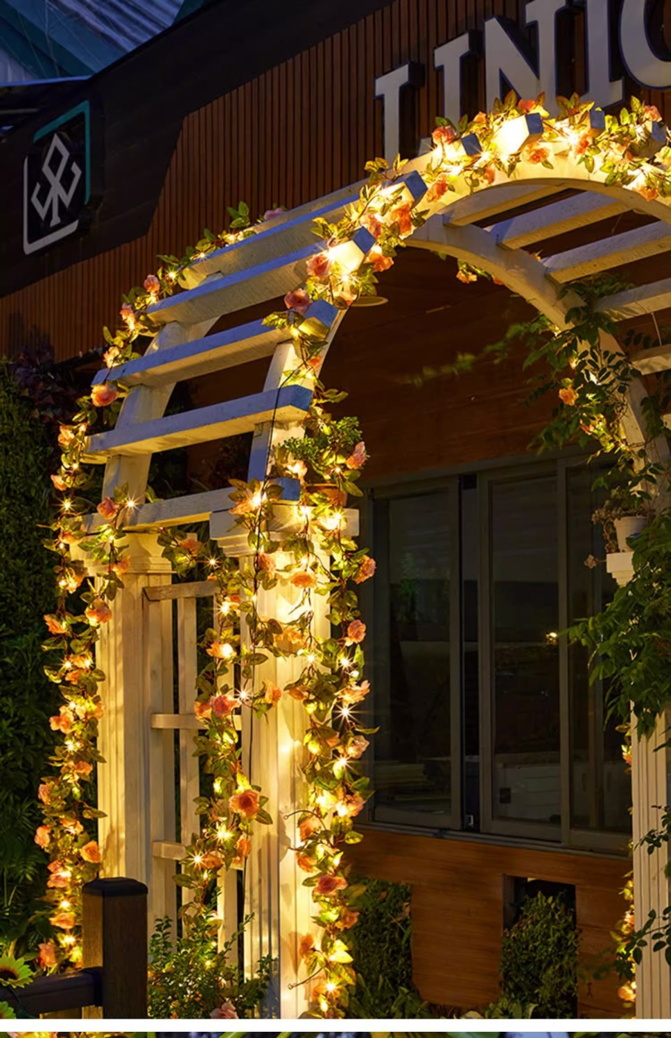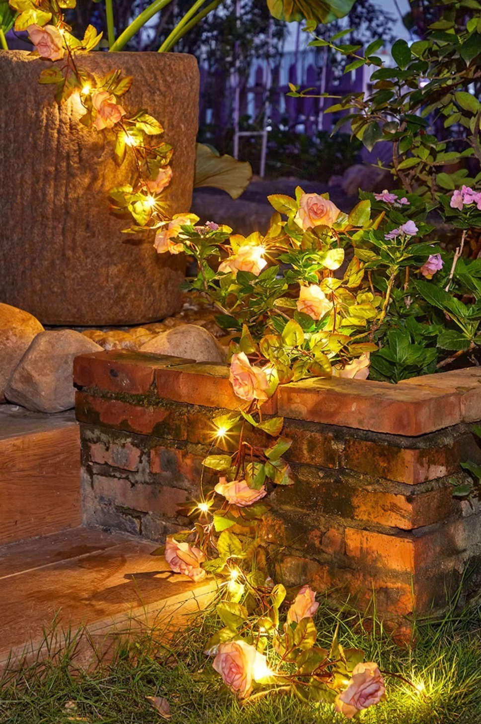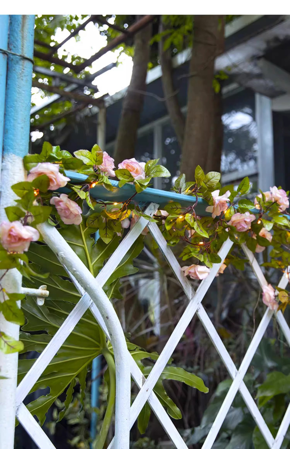 국경 간 새로운 LED 태양 야외 방수 침실 방 정원 장식 등나무 장미 꽃 플러그인 빛 문자열스토어 가기