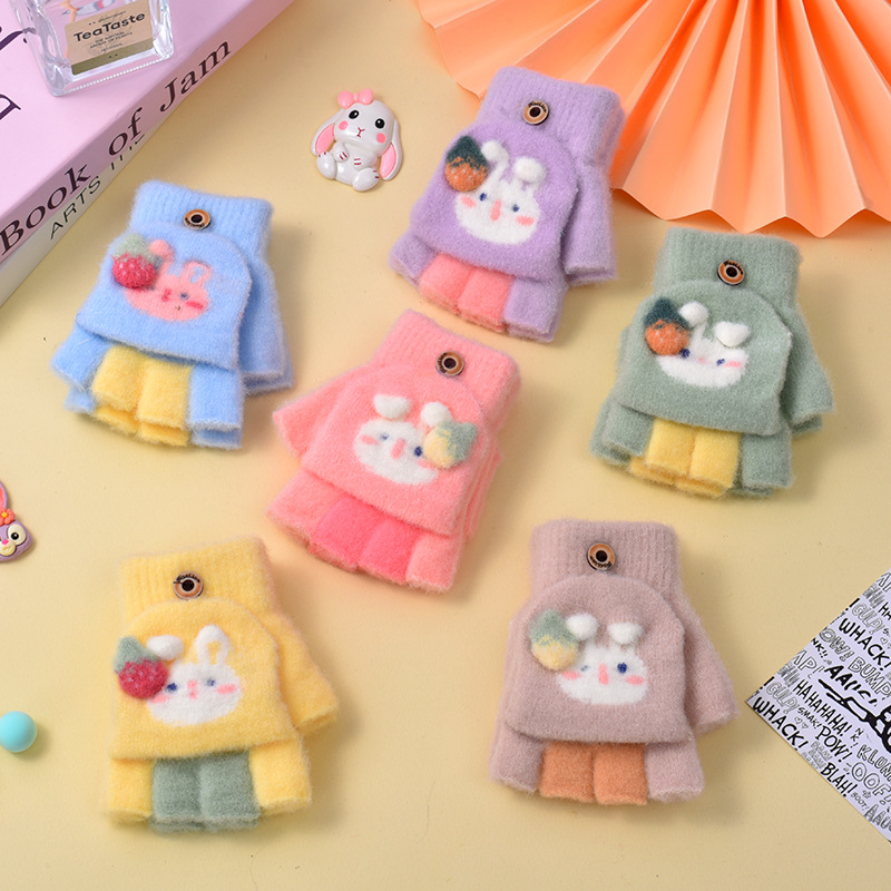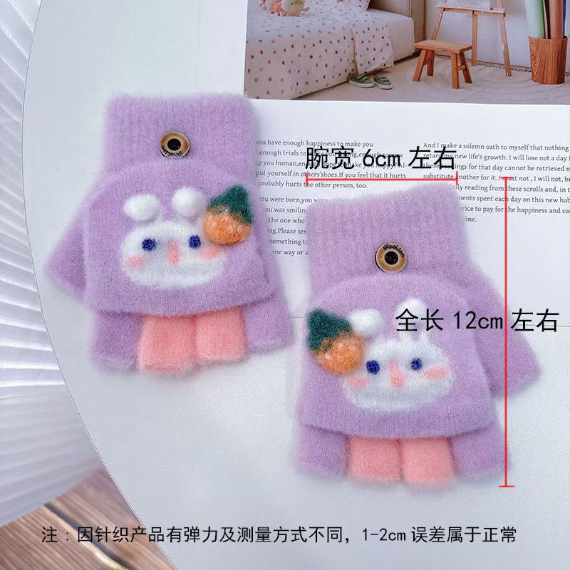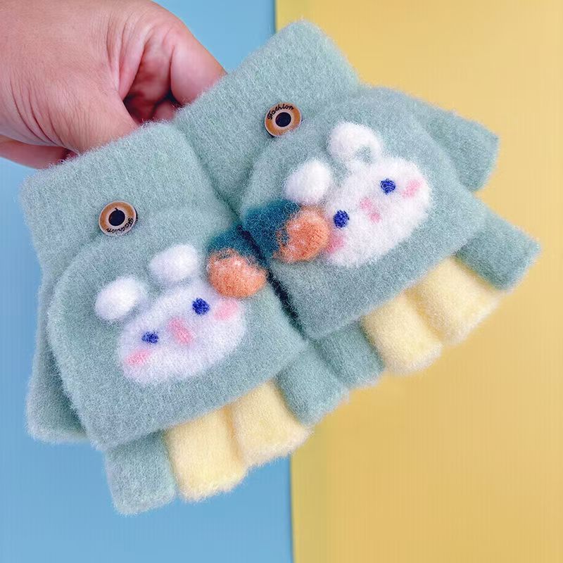 겨울용 남녀 반손가락 플립업 장갑 3~8세 유치원 여아 귀여운 핑거리스 다섯 손가락 어린이 따뜻하고 방한