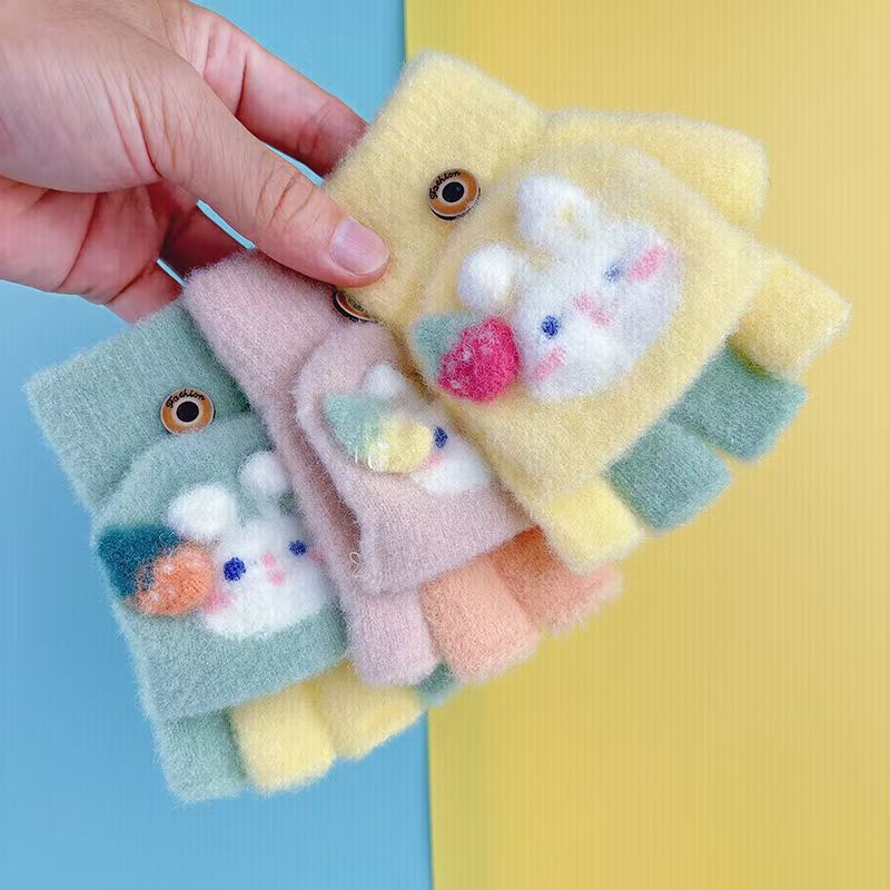 겨울용 남녀 반손가락 플립업 장갑 3~8세 유치원 여아 귀여운 핑거리스 다섯 손가락 어린이 따뜻하고 방한스토어 가기