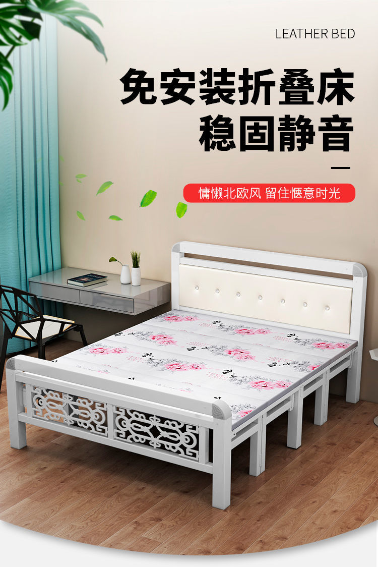 접이식 싱글 침대 점심 침대 나무 침대 간단한 나무 침대 더블 철 프레임 1.35m 임대 주택 공장스토어 가기