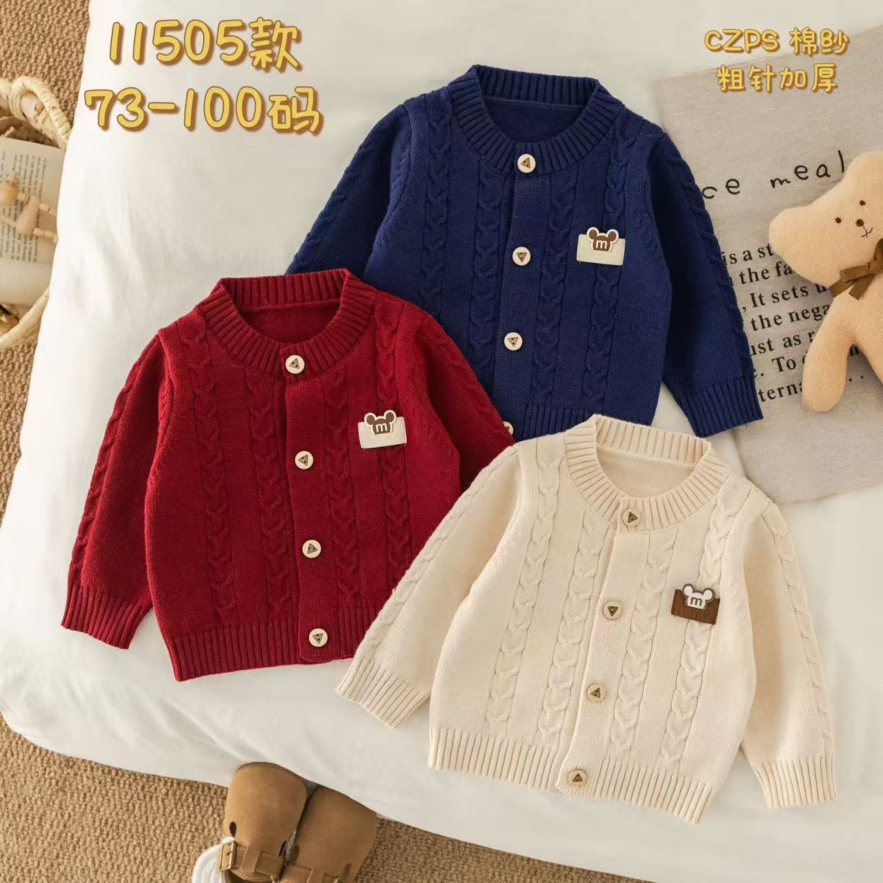 아동복 재고 있음, 아동용 스웨터, 단색 싱글 브레스트 가디건, 멀티 컬러 상의, 가정복, 피부 친화적이고 편안한, 제조업체 도매