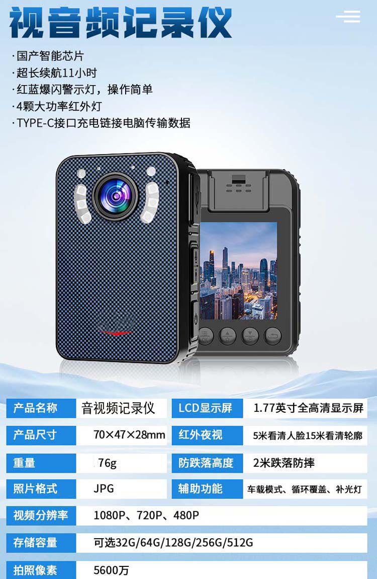 법 집행 기록 장치 HD 별빛 야간 투시경 휴대용 가슴 착용 현장 작업 오디오 및 비디오 검사 카메라