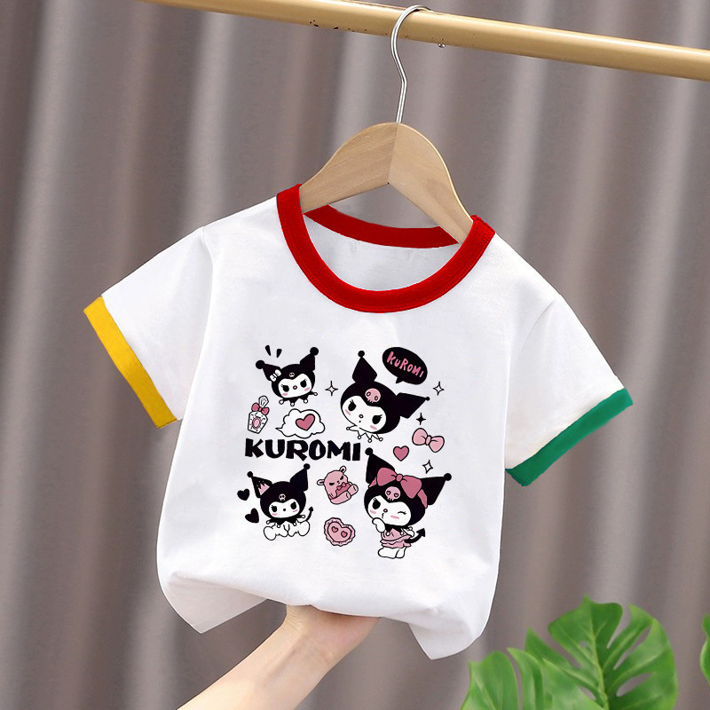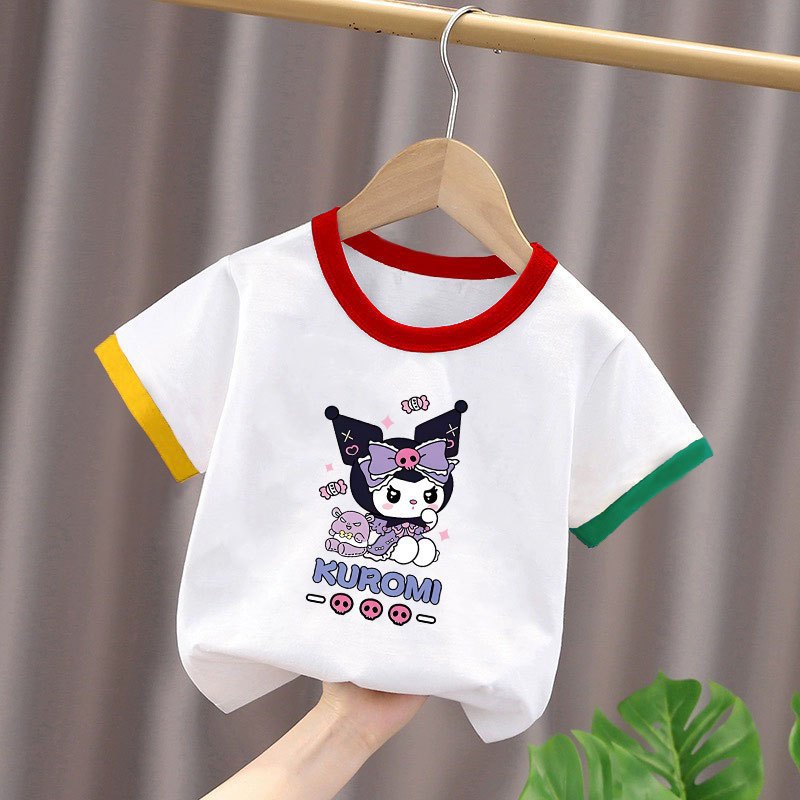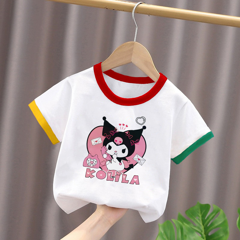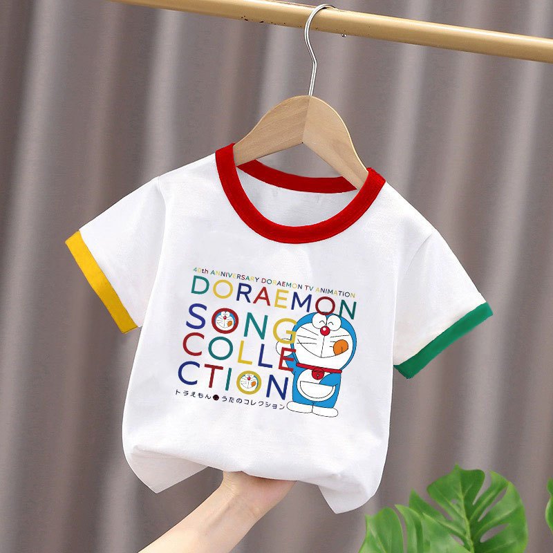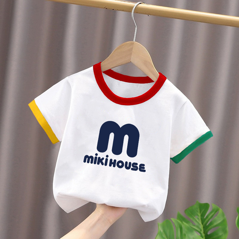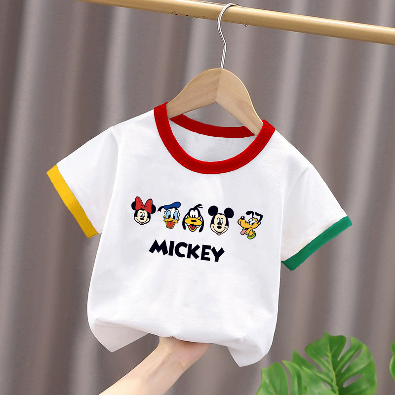 2025년 여름 새로운 스타일의 순면 아기 스타일 만화 프린트 컬러 블록 탑(남학생과 여학생용), 중대형 아동용 하의 셔츠스토어 가기