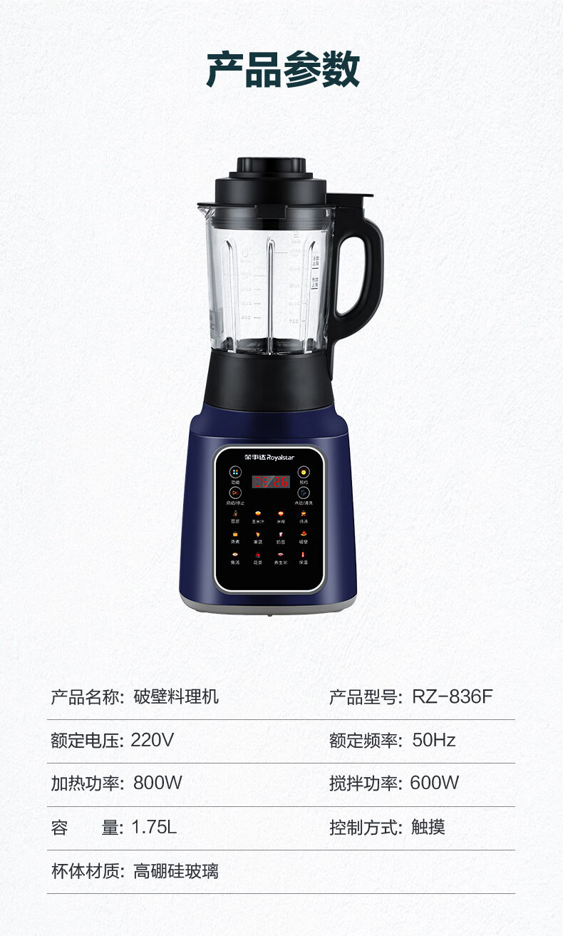 벽파괴기 두유기 전자동 예약 가열 필터링 없음 1.75L 주스 및 조리 보조식품 기계 RZ-836F