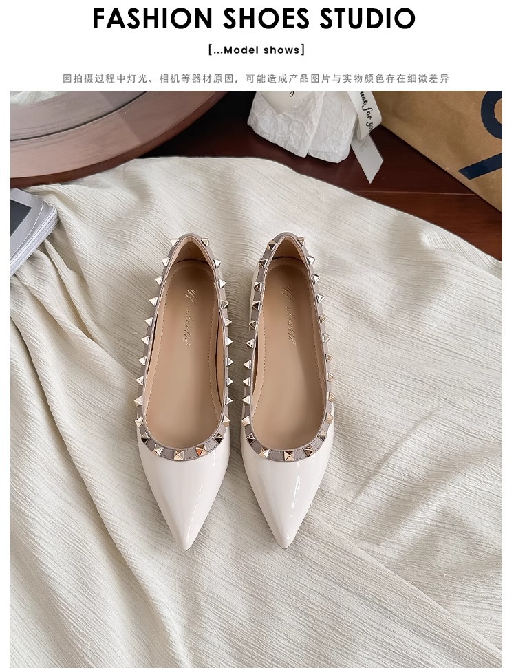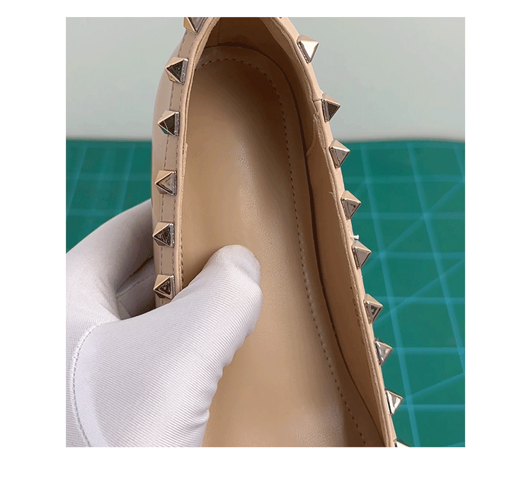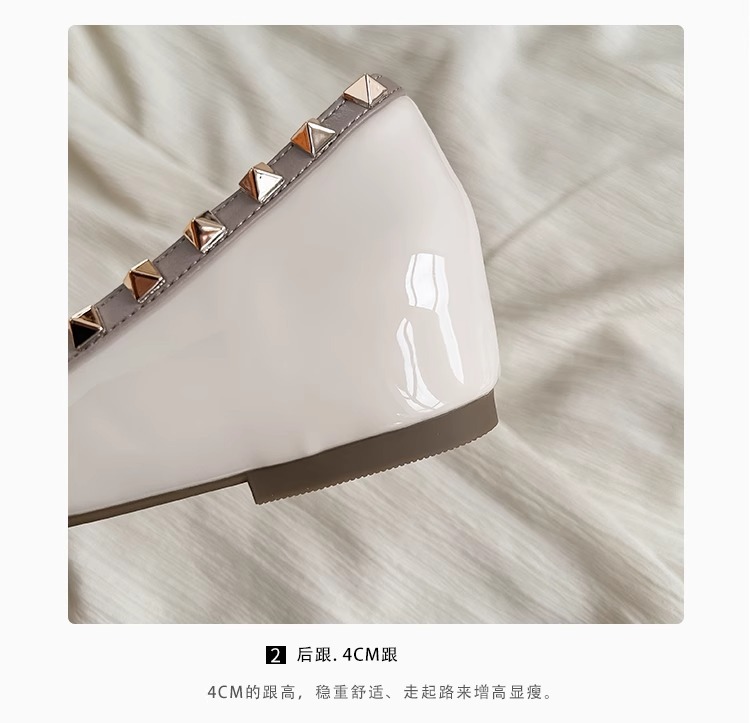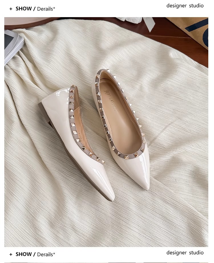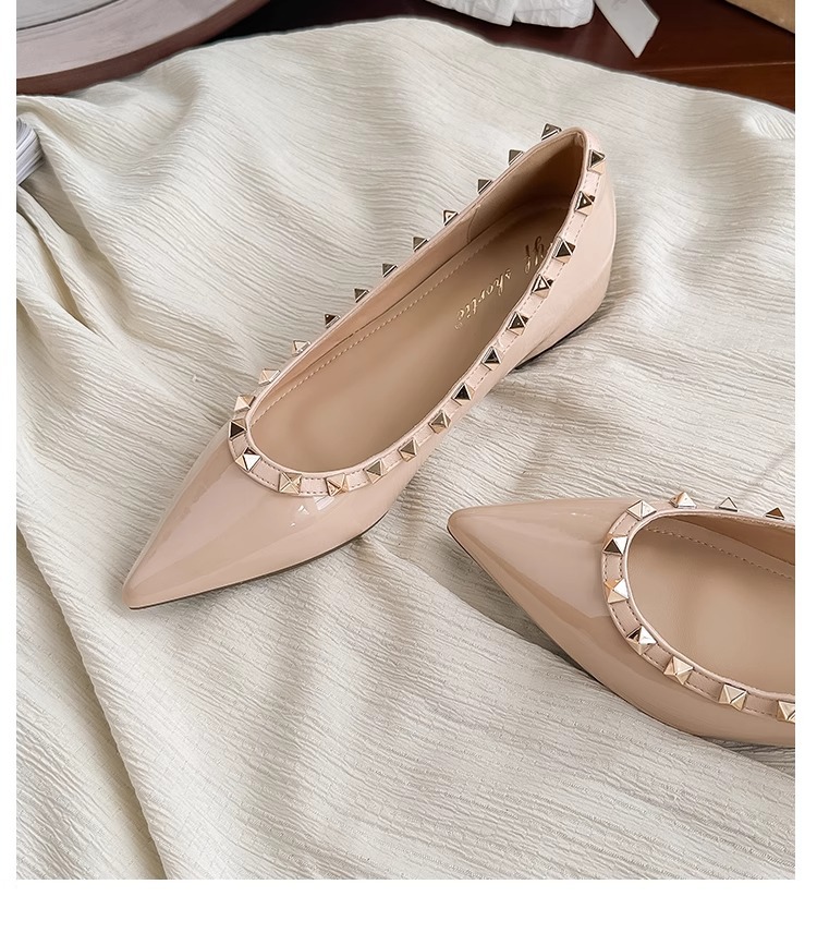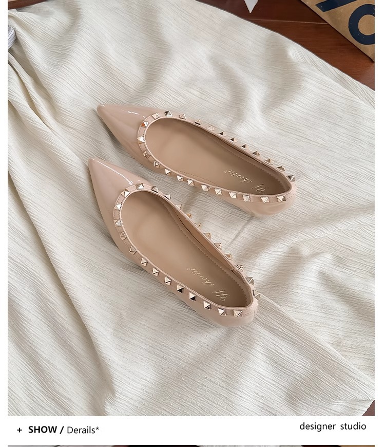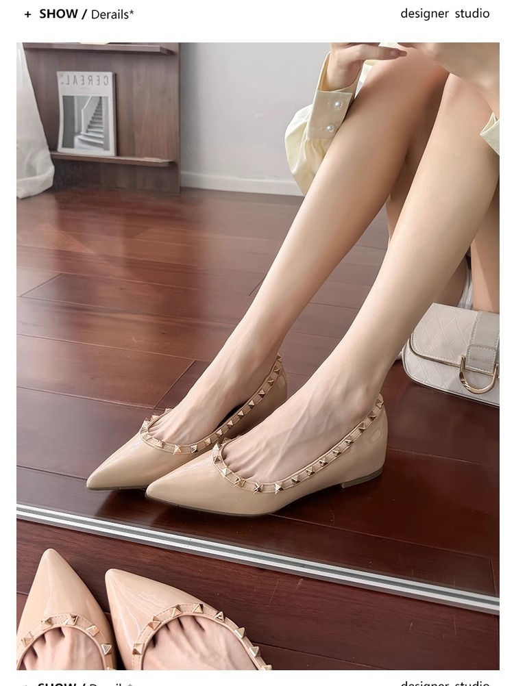 양가죽 버전~ 프렌치 스타일 뾰족코 여성용 여름 신발, 여성용 리벳 장식 얕은 굽 키높이 저가힐스토어 가기