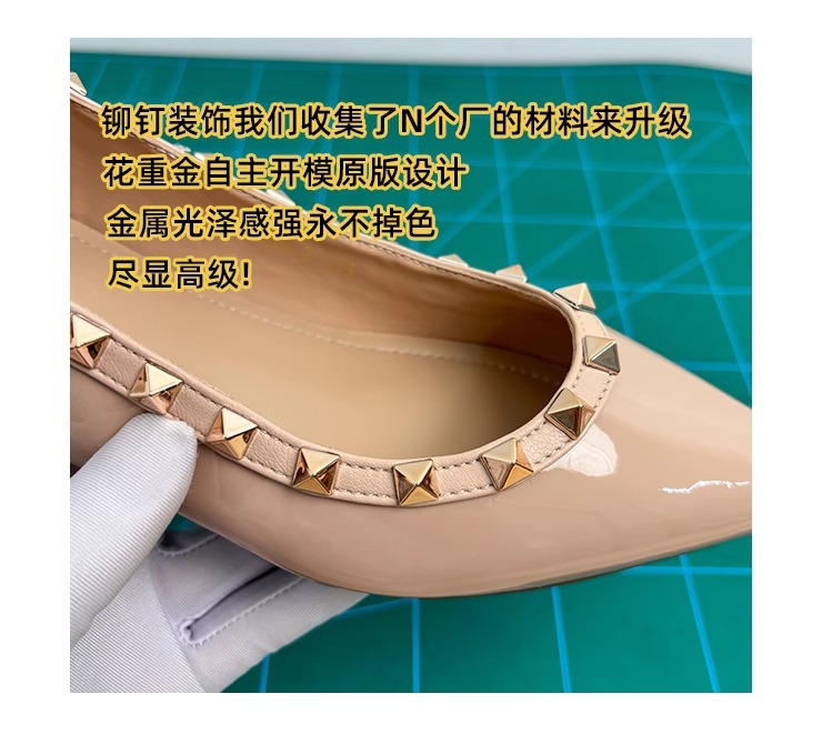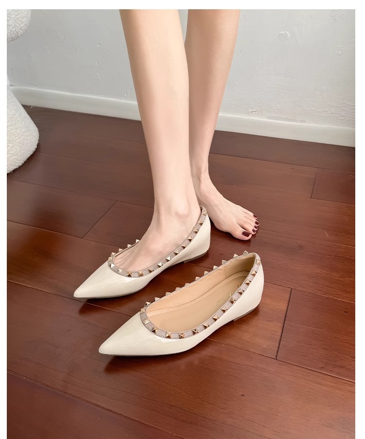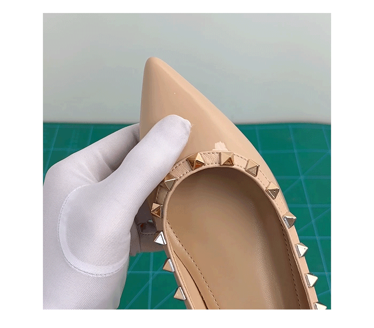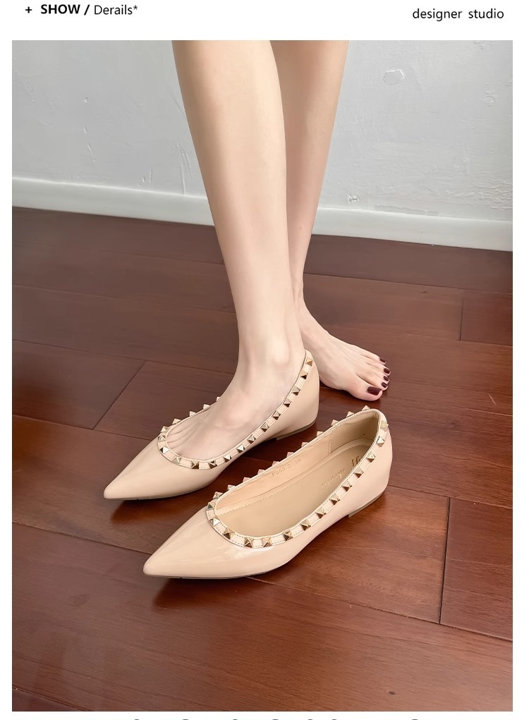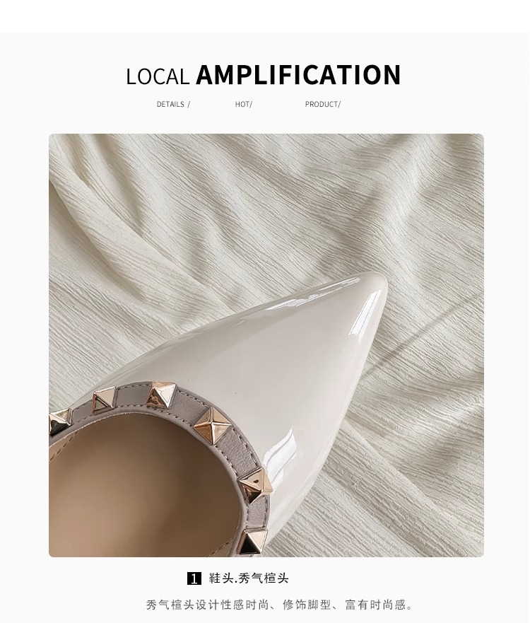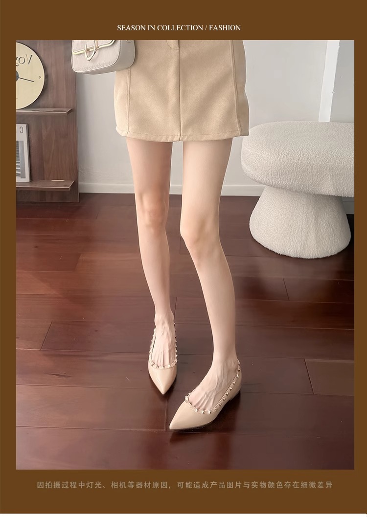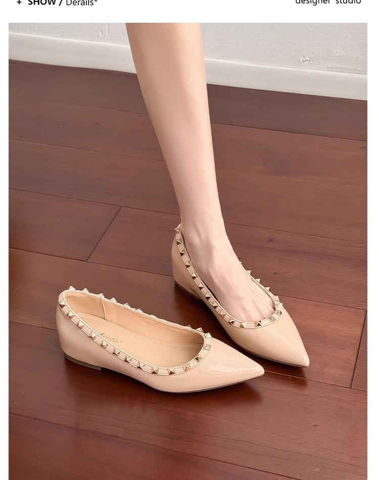 양가죽 버전~ 프렌치 스타일 뾰족코 여성용 여름 신발, 여성용 리벳 장식 얕은 굽 키높이 저가힐스토어 가기