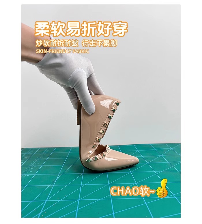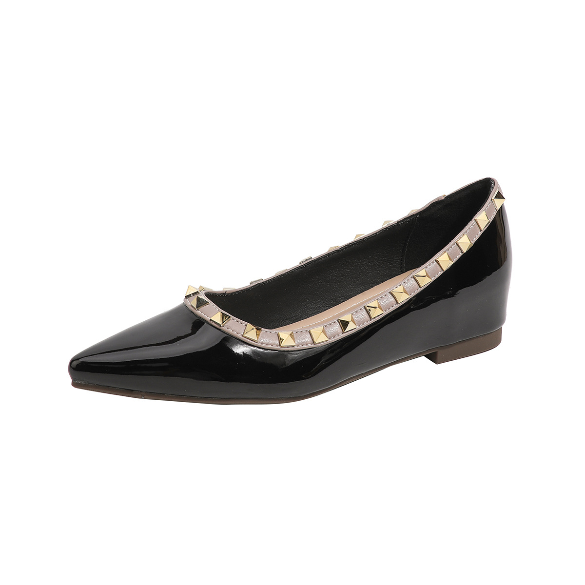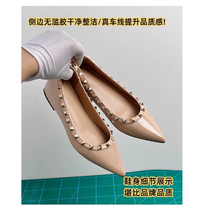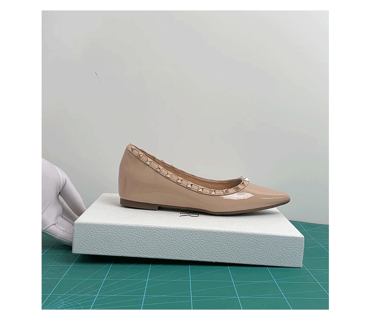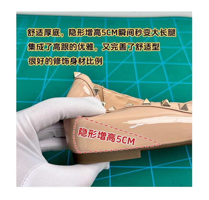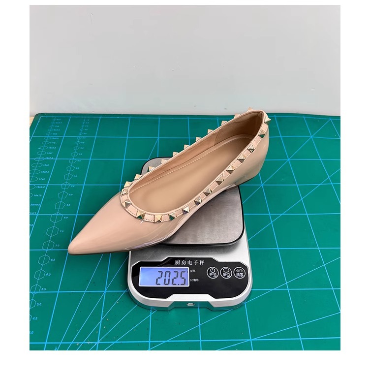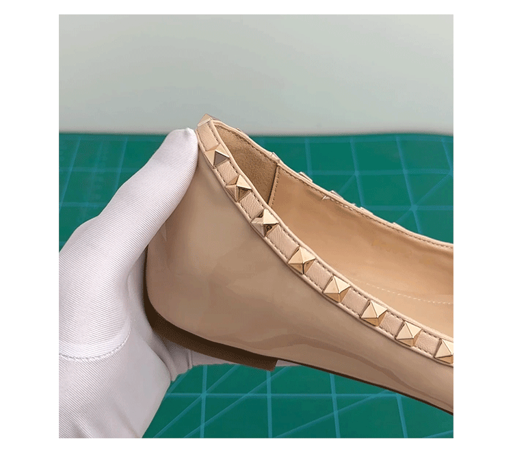 양가죽 버전~ 프렌치 스타일 뾰족코 여성용 여름 신발, 여성용 리벳 장식 얕은 굽 키높이 저가힐스토어 가기