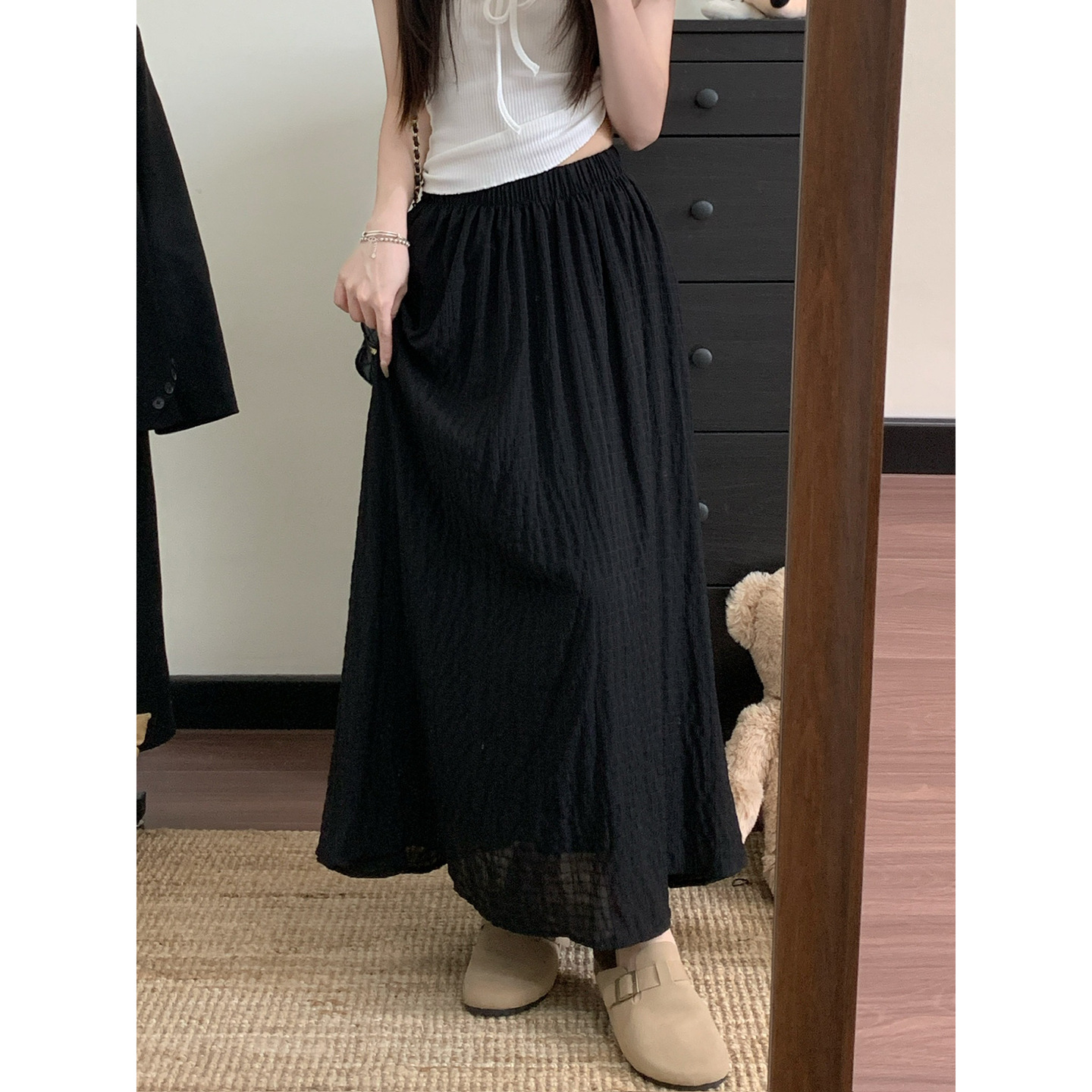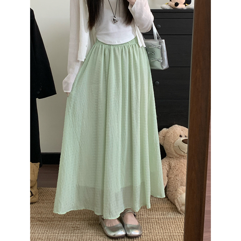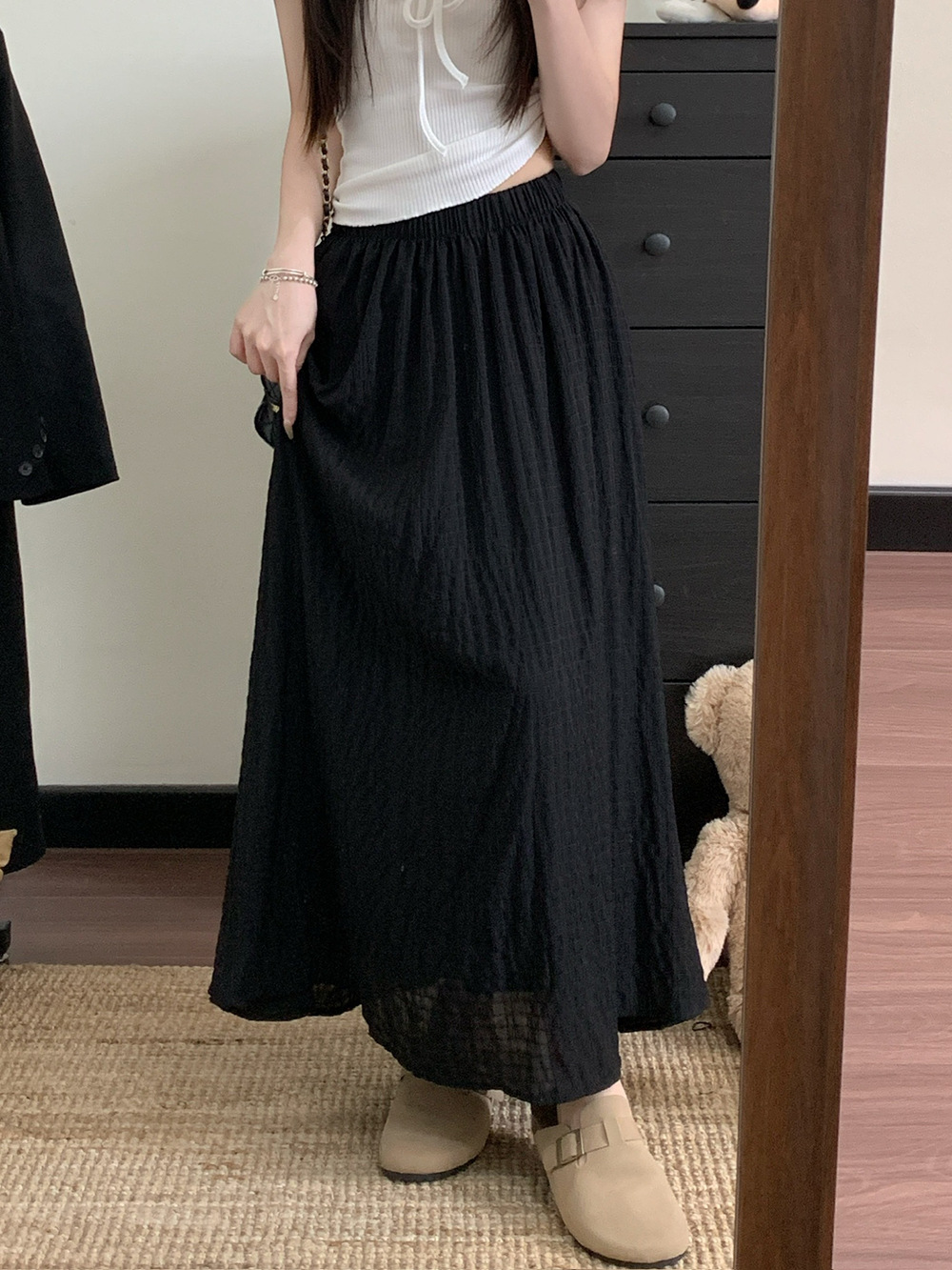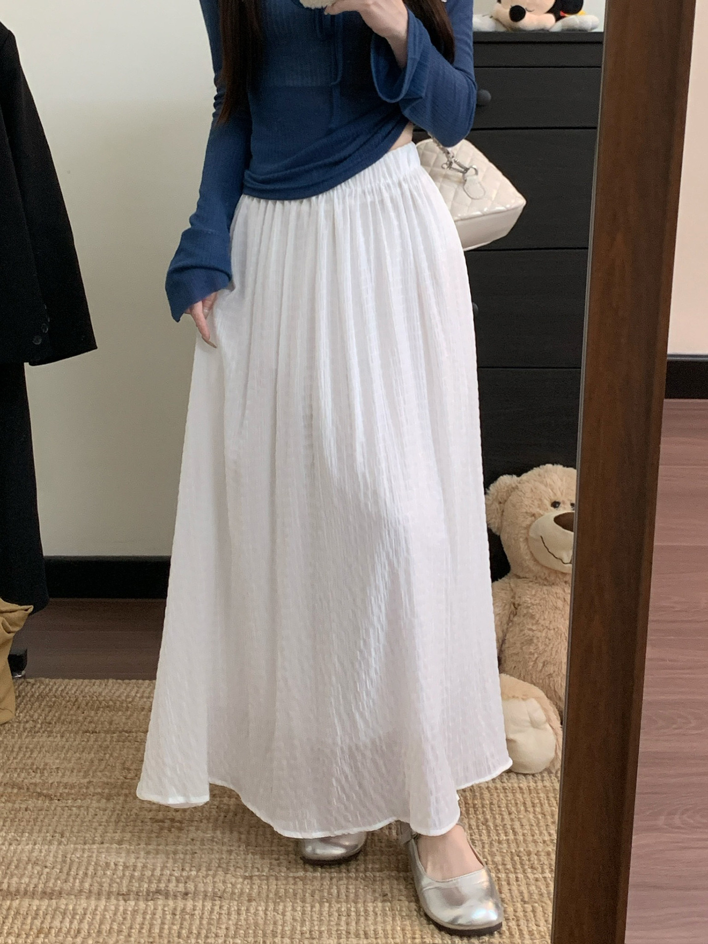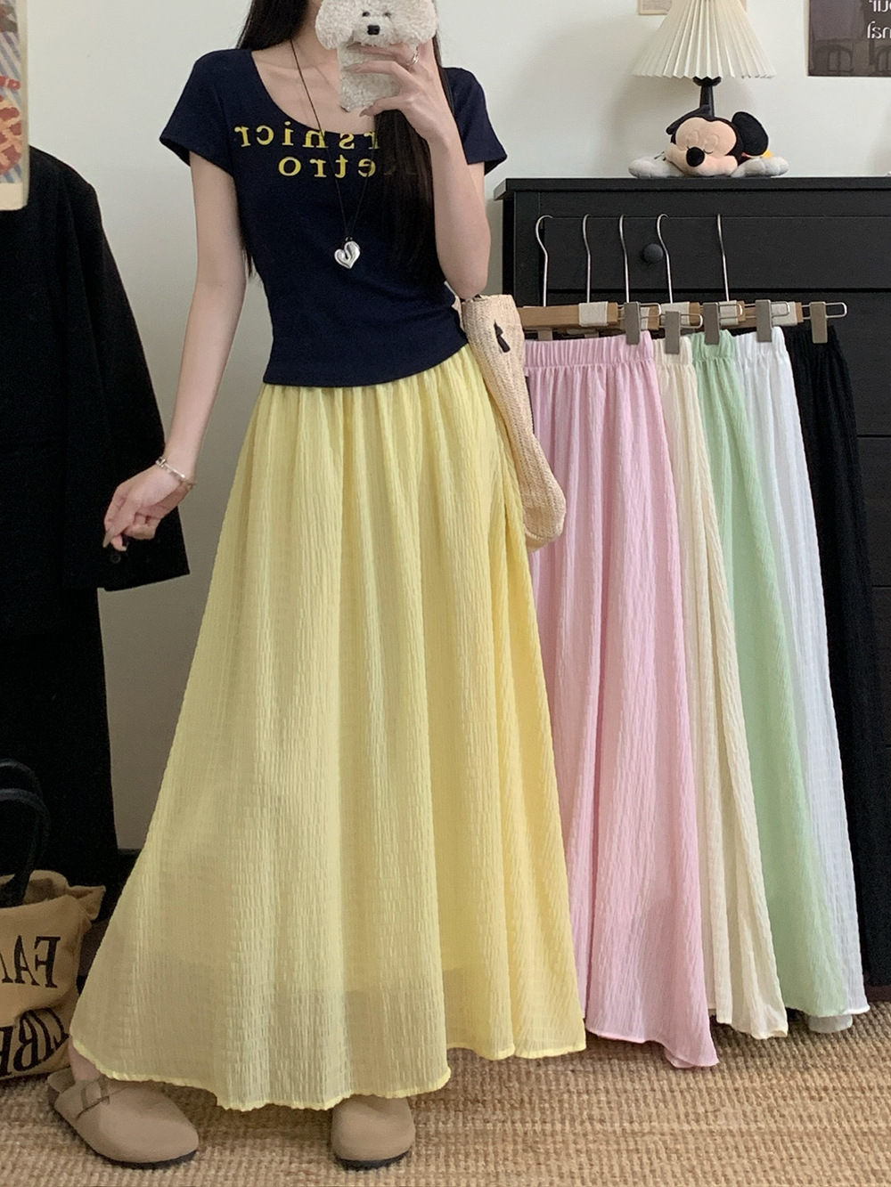 여름 여성용 캐주얼 요정풍 스커트 한국판 안감이 있는 신형 신축성 있는 하이웨이스트 심플 통근 롱 스커트