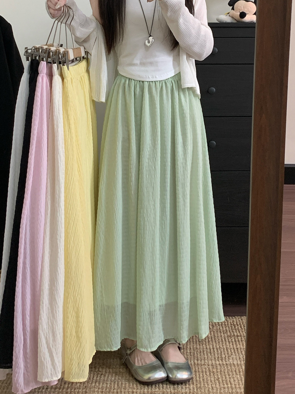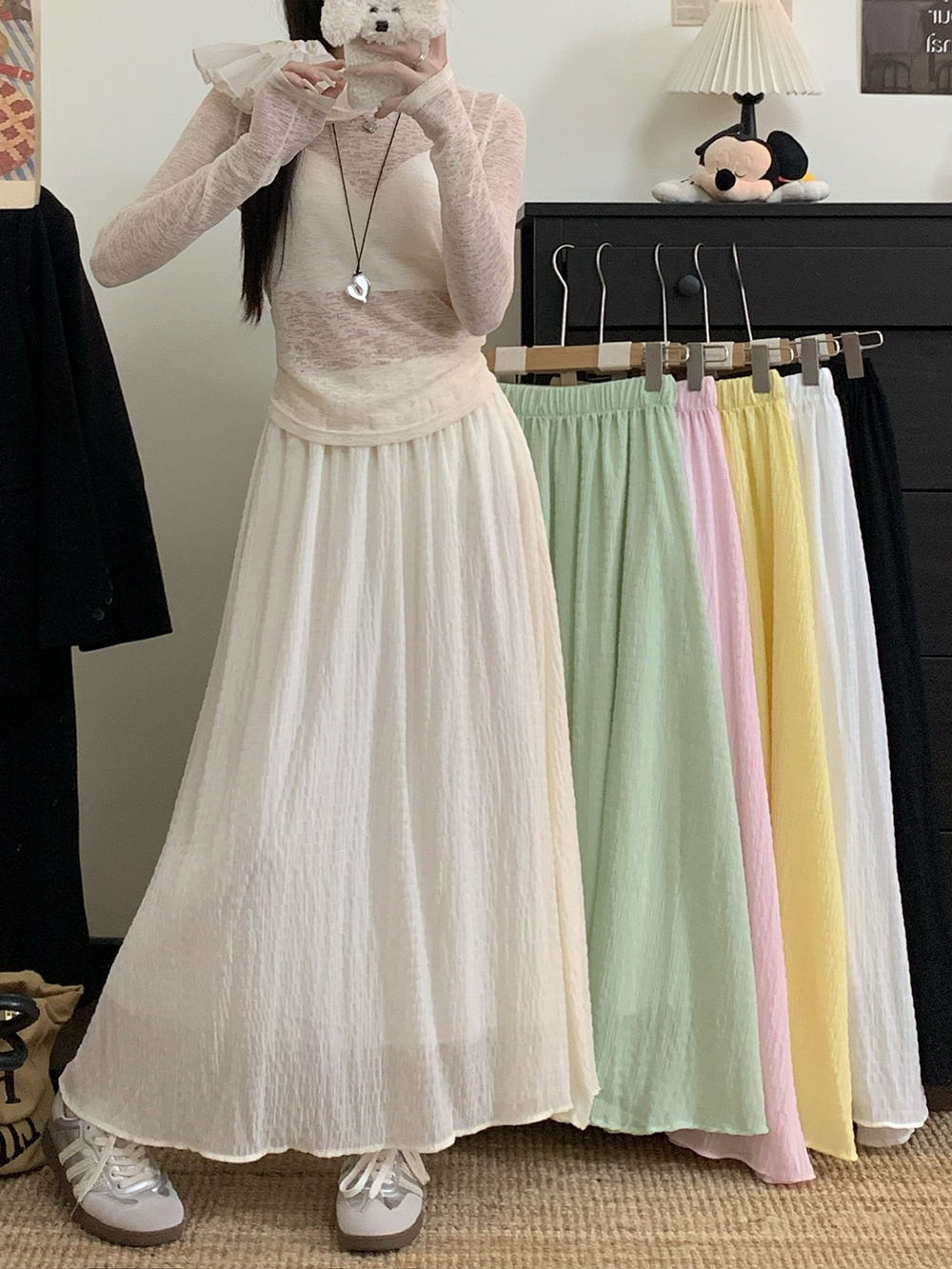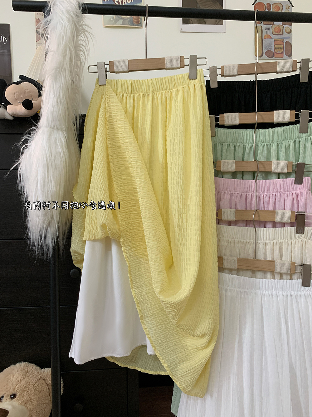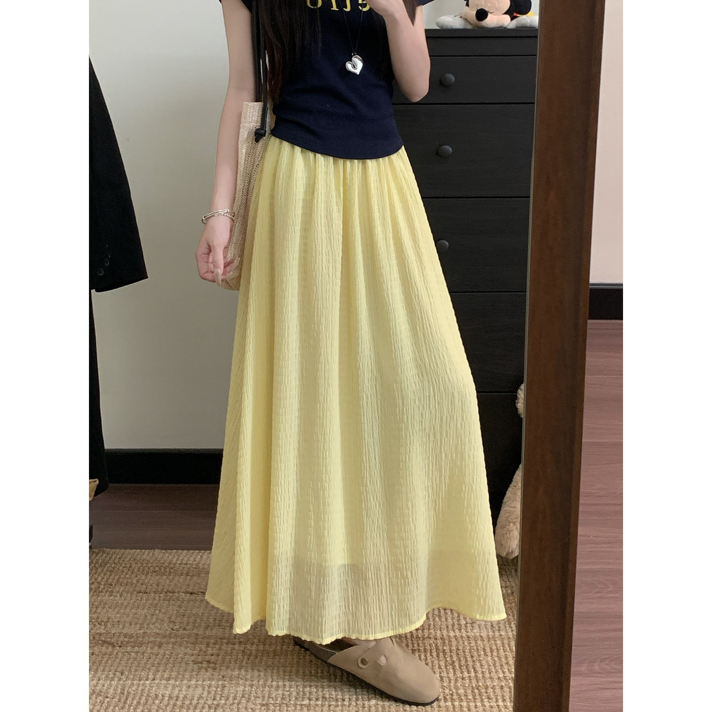 여름 여성용 캐주얼 요정풍 스커트 한국판 안감이 있는 신형 신축성 있는 하이웨이스트 심플 통근 롱 스커트