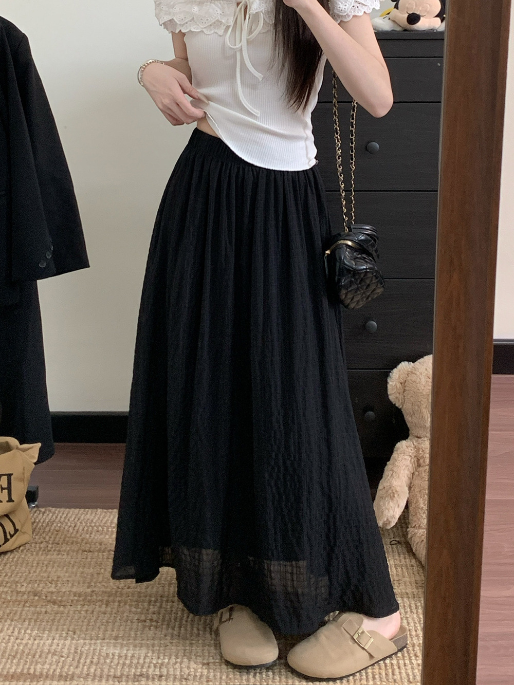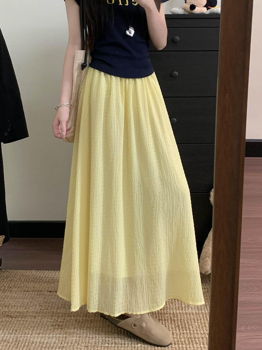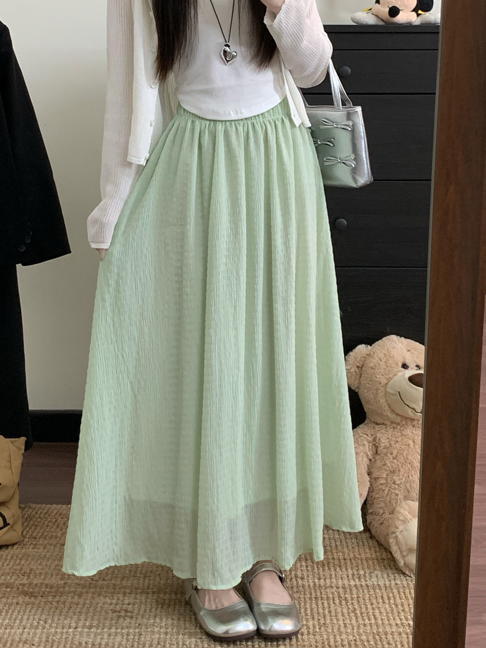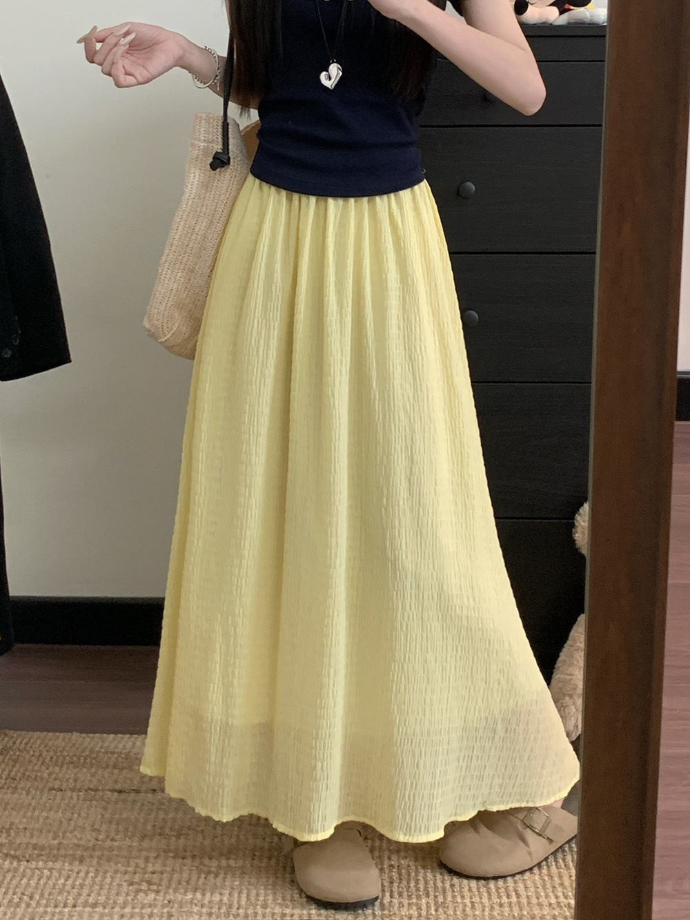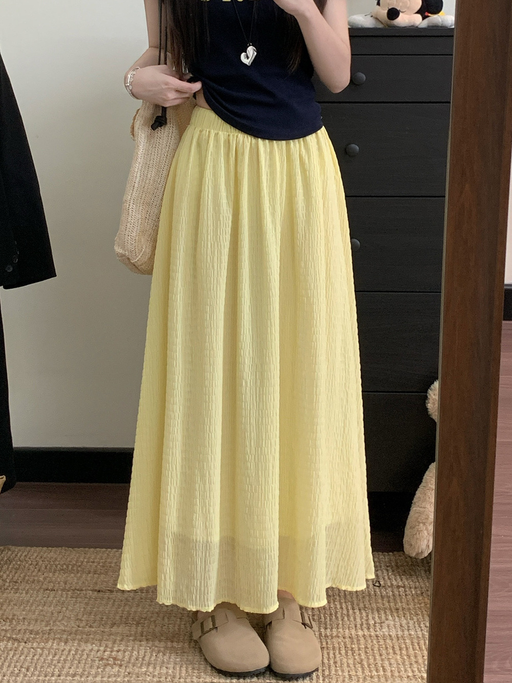 여름 여성용 캐주얼 요정풍 스커트 한국판 안감이 있는 신형 신축성 있는 하이웨이스트 심플 통근 롱 스커트
