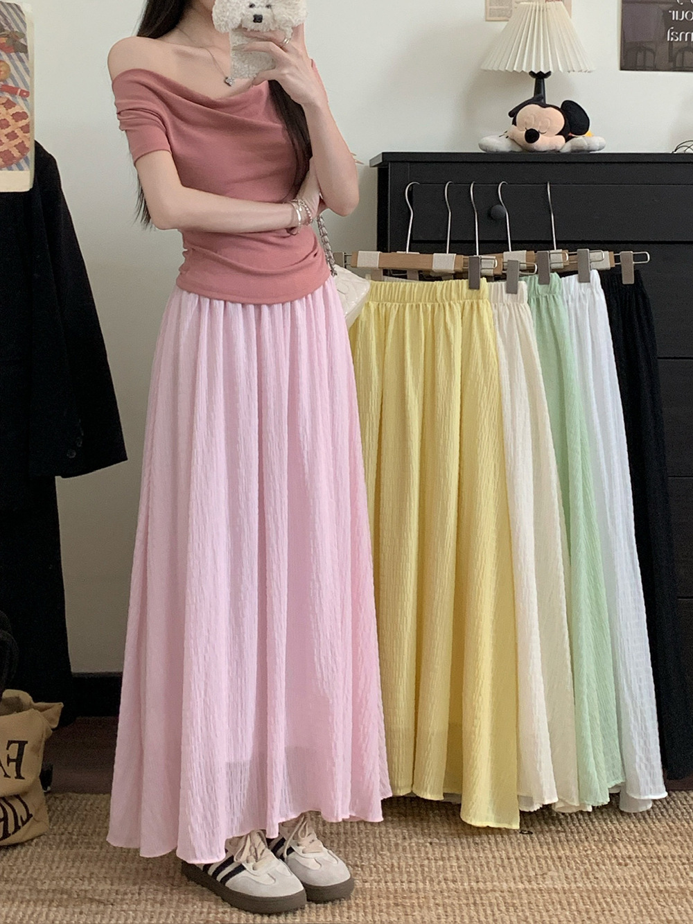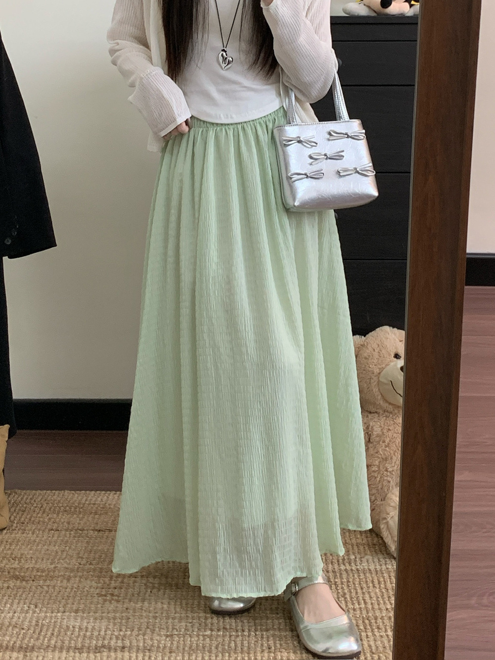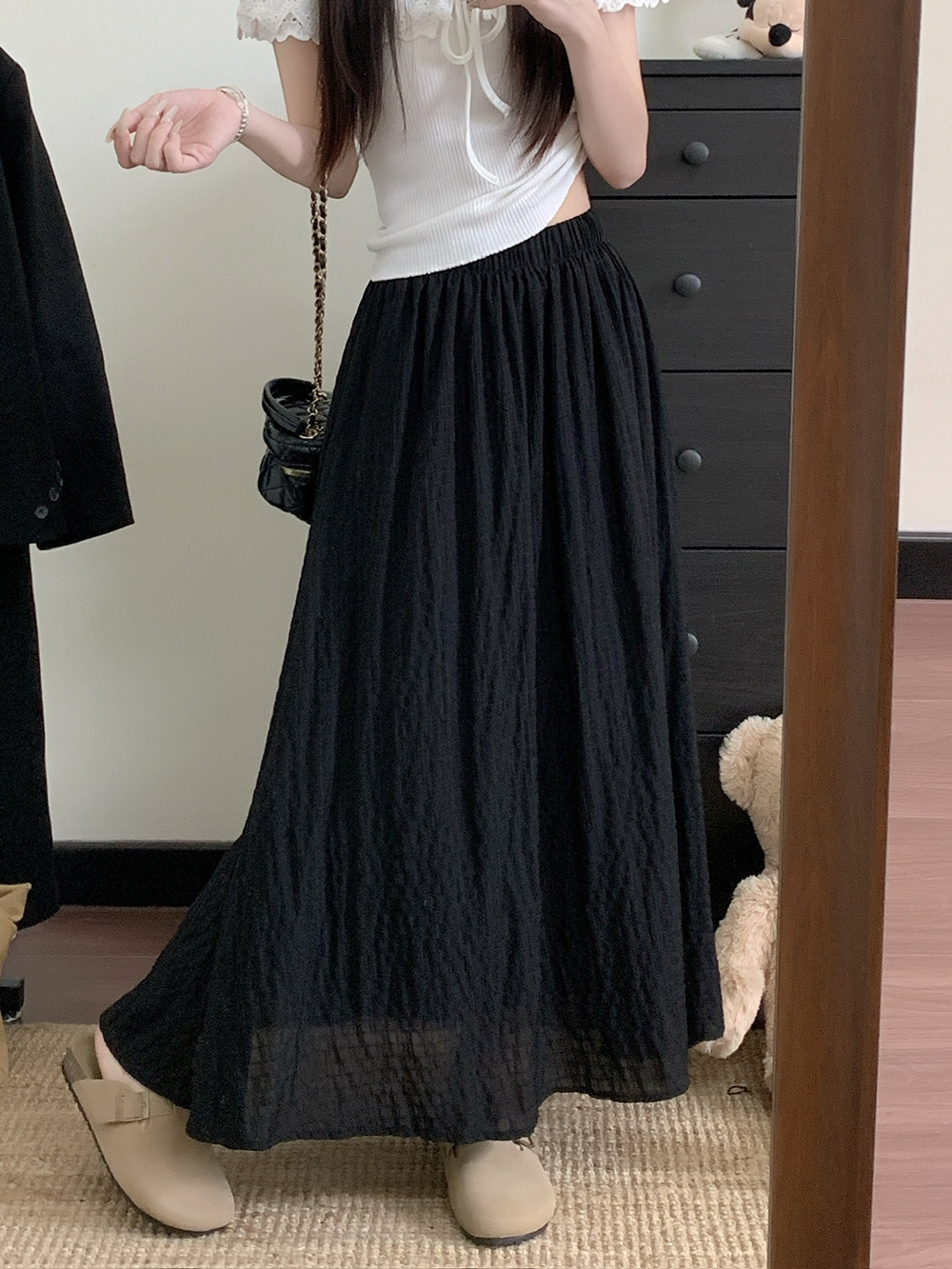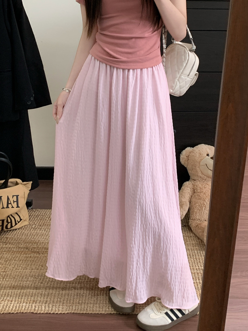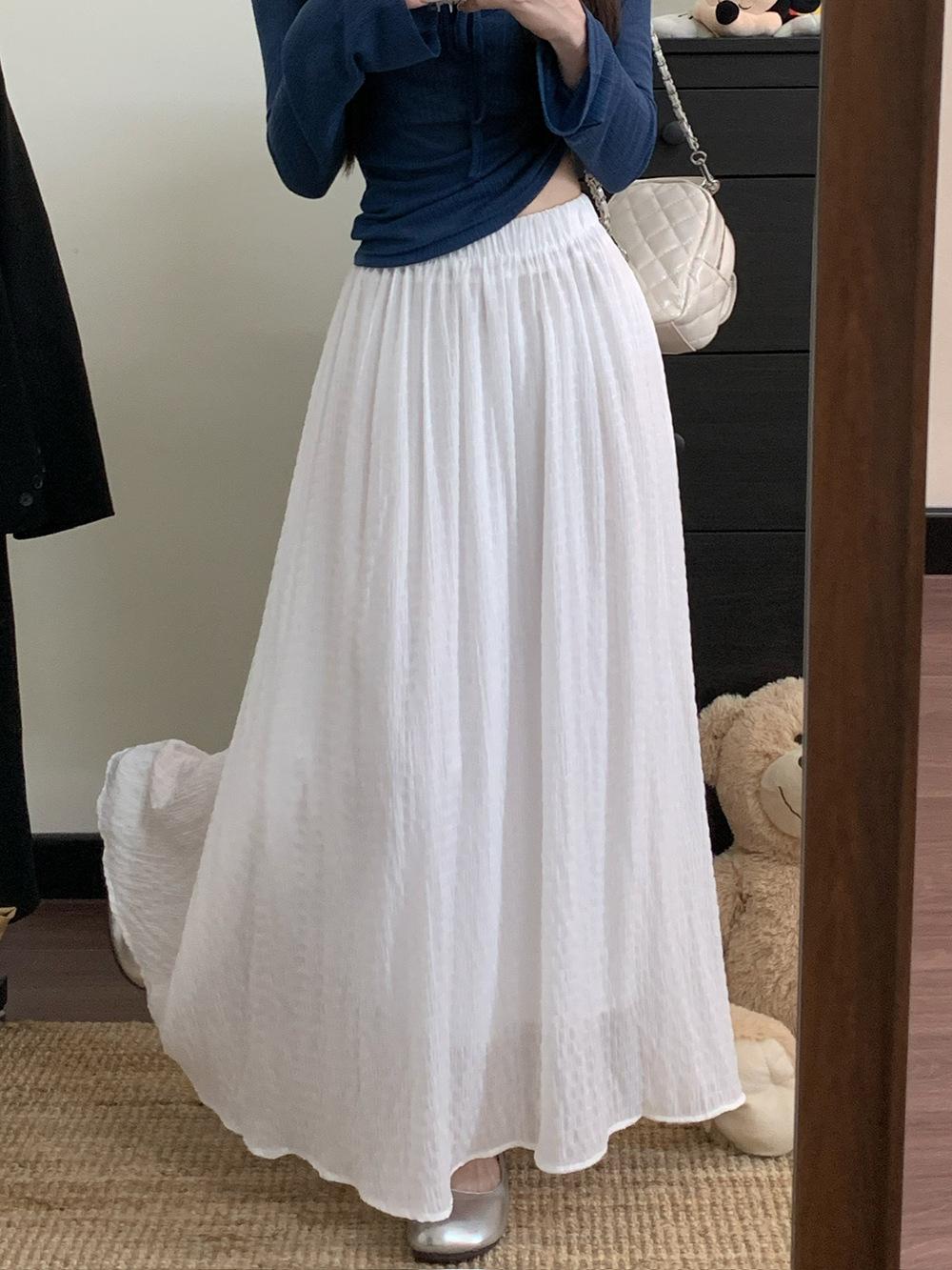 여름 여성용 캐주얼 요정풍 스커트 한국판 안감이 있는 신형 신축성 있는 하이웨이스트 심플 통근 롱 스커트