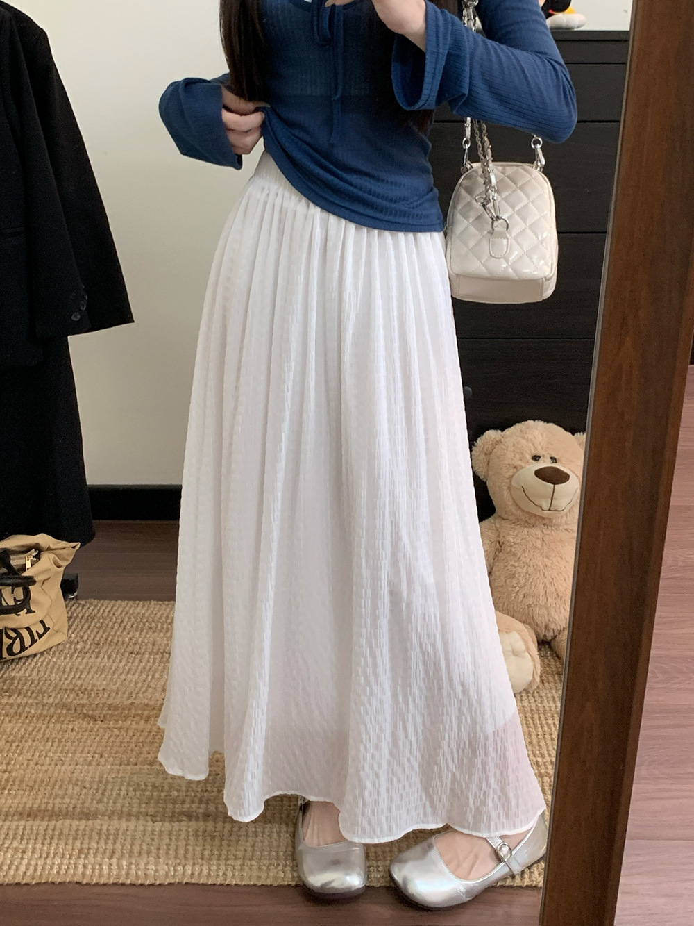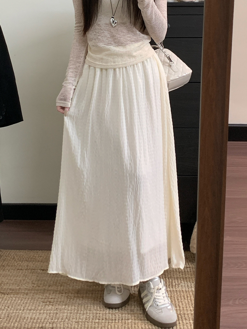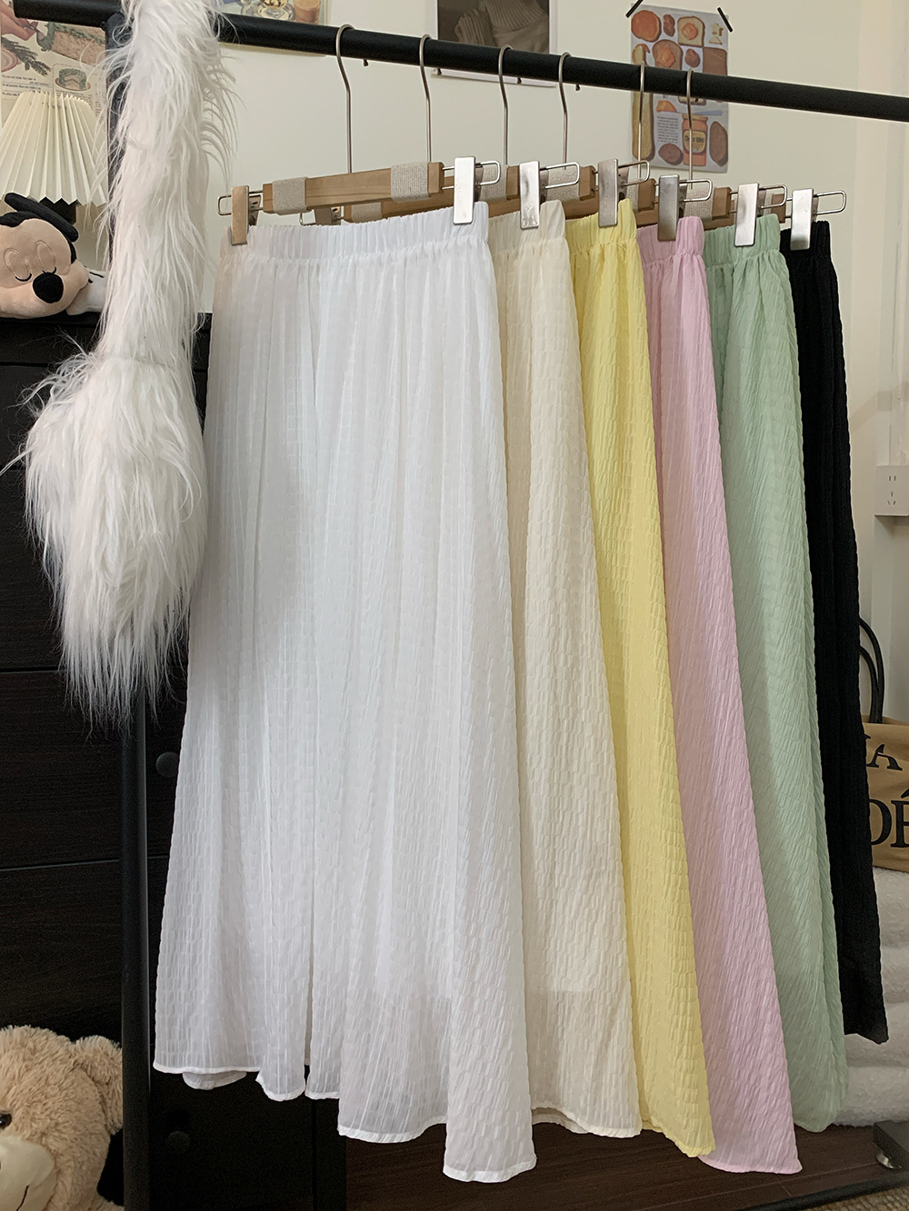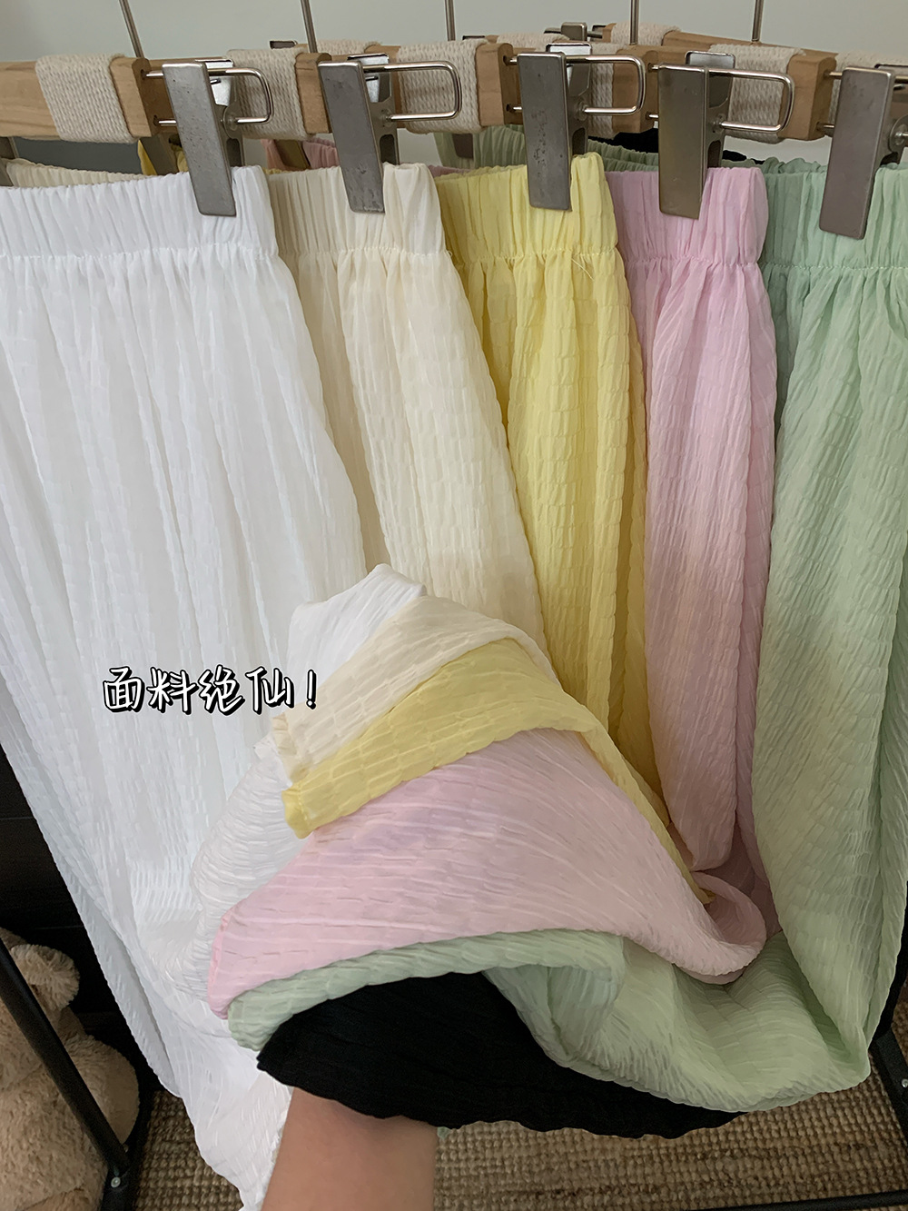 여름 여성용 캐주얼 요정풍 스커트 한국판 안감이 있는 신형 신축성 있는 하이웨이스트 심플 통근 롱 스커트