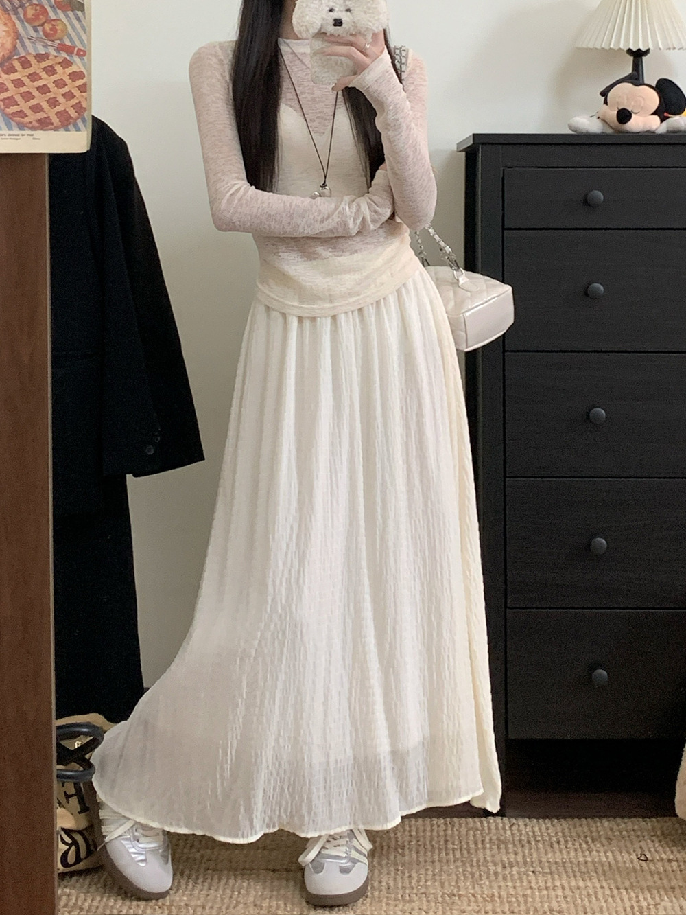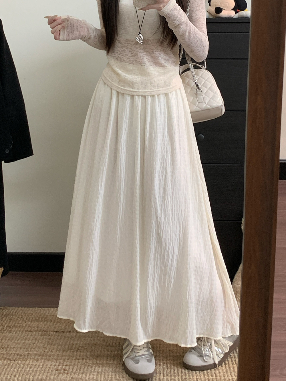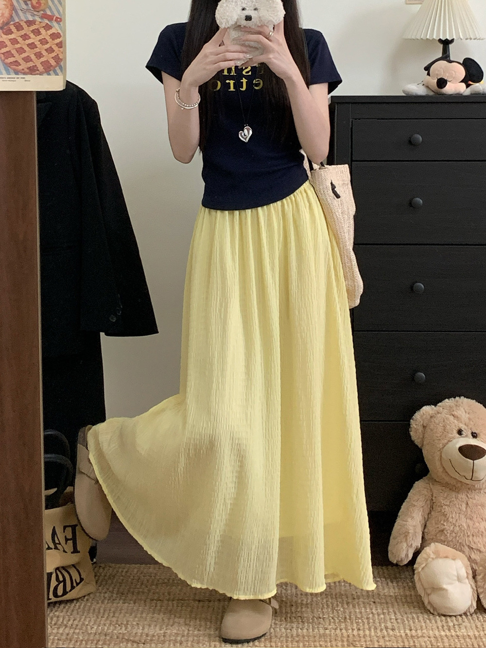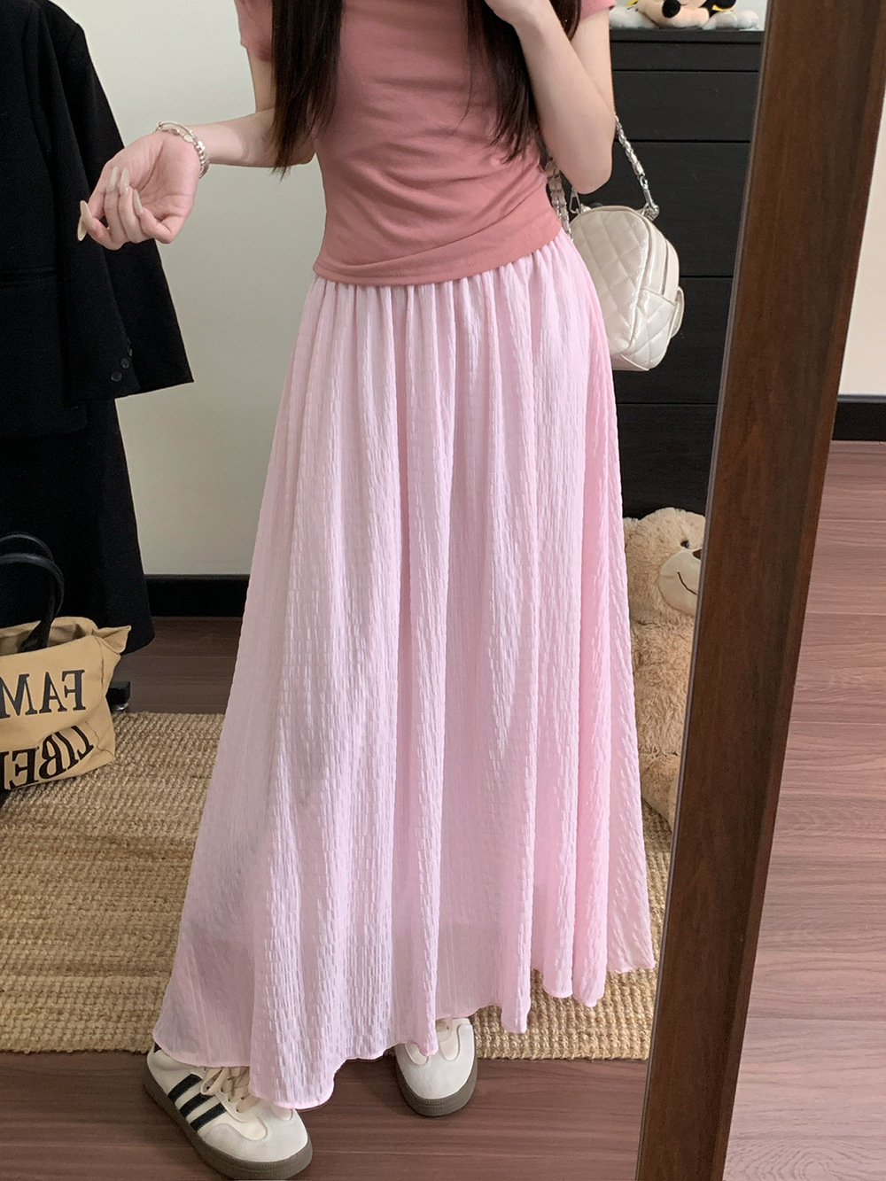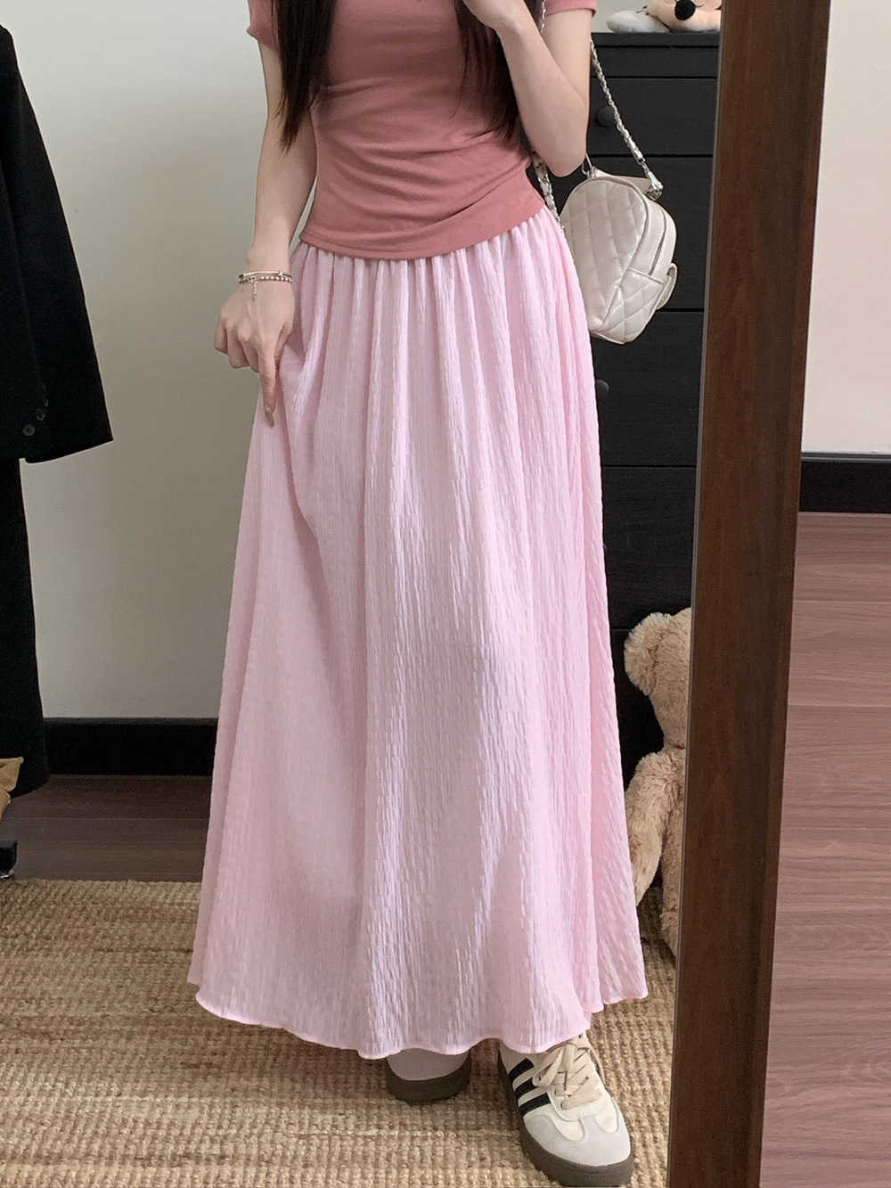 여름 여성용 캐주얼 요정풍 스커트 한국판 안감이 있는 신형 신축성 있는 하이웨이스트 심플 통근 롱 스커트