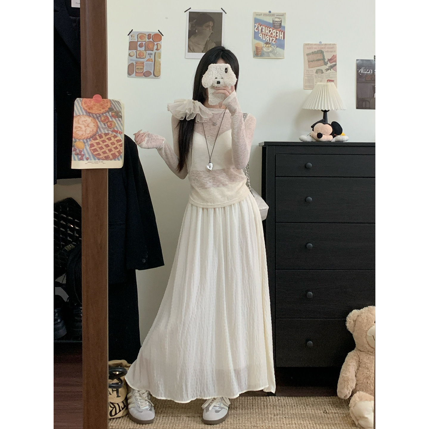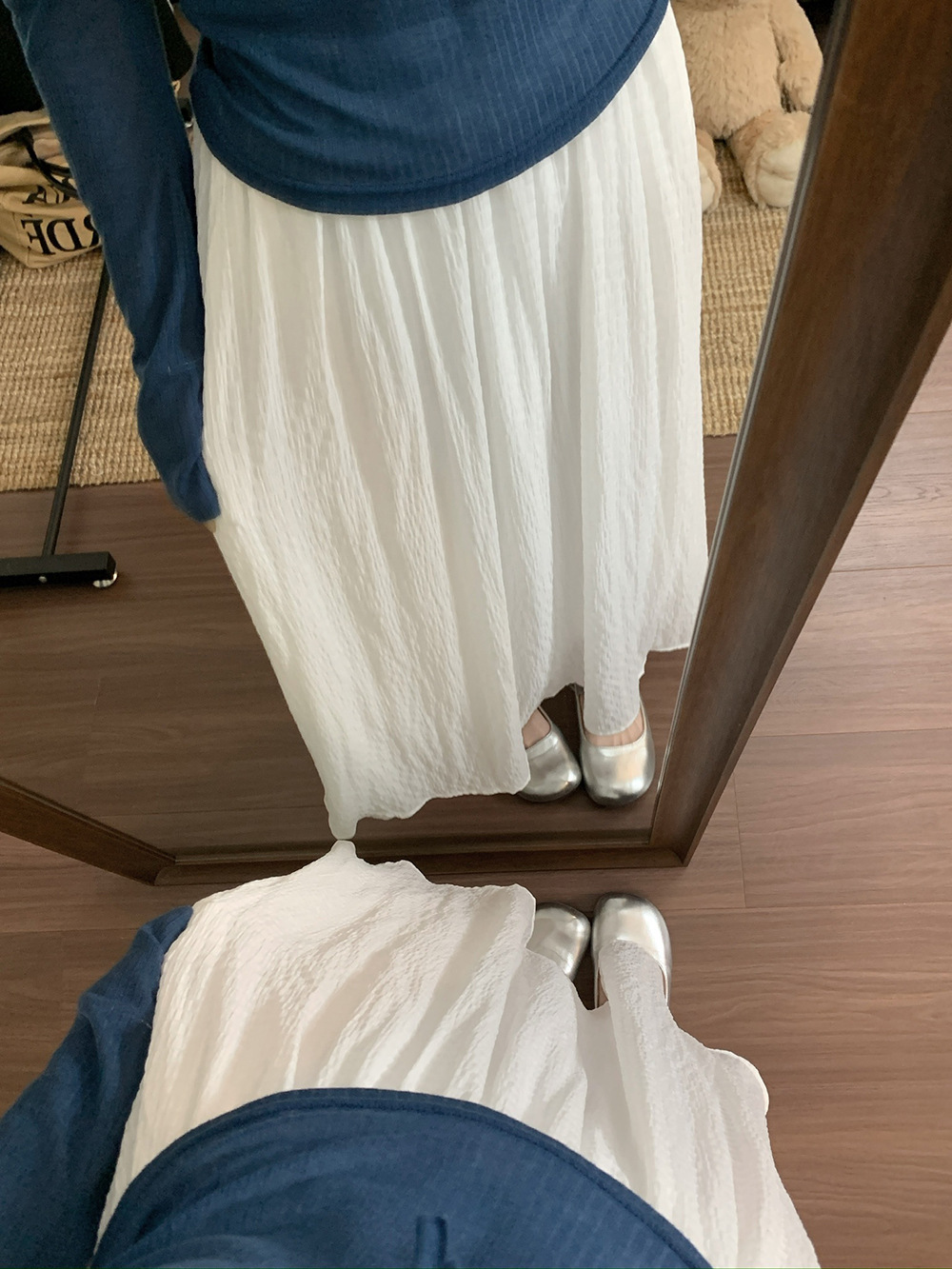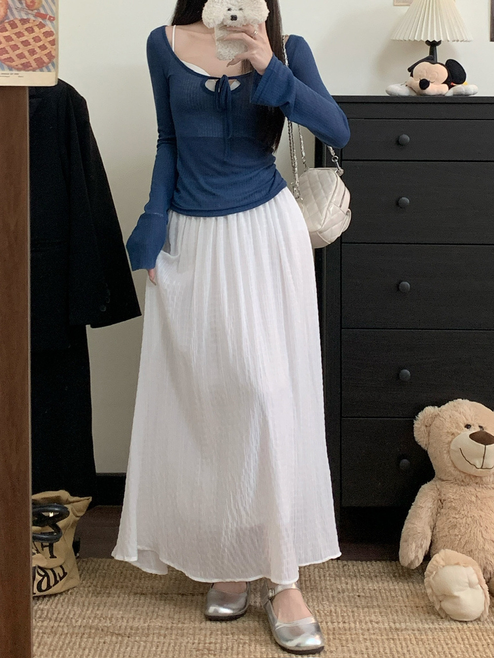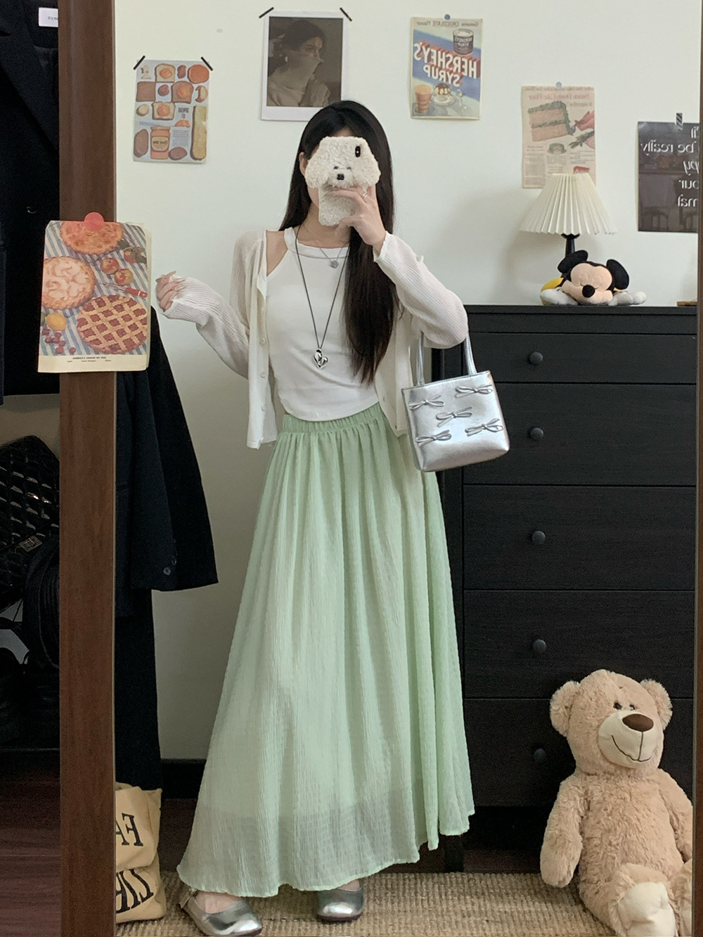 여름 여성용 캐주얼 요정풍 스커트 한국판 안감이 있는 신형 신축성 있는 하이웨이스트 심플 통근 롱 스커트