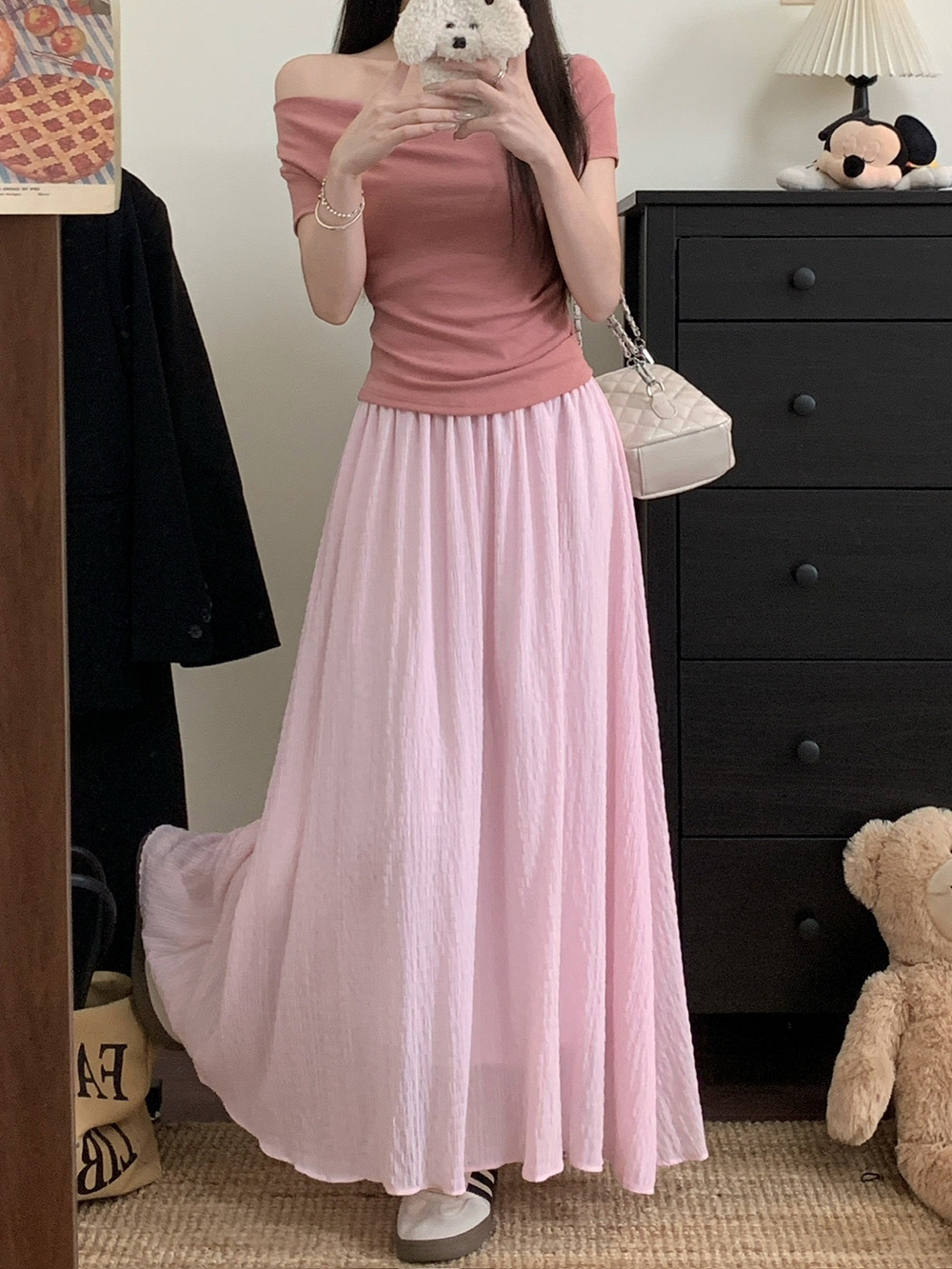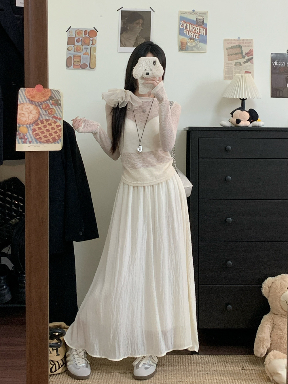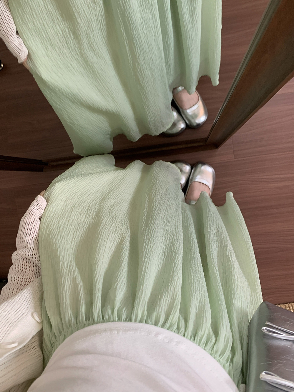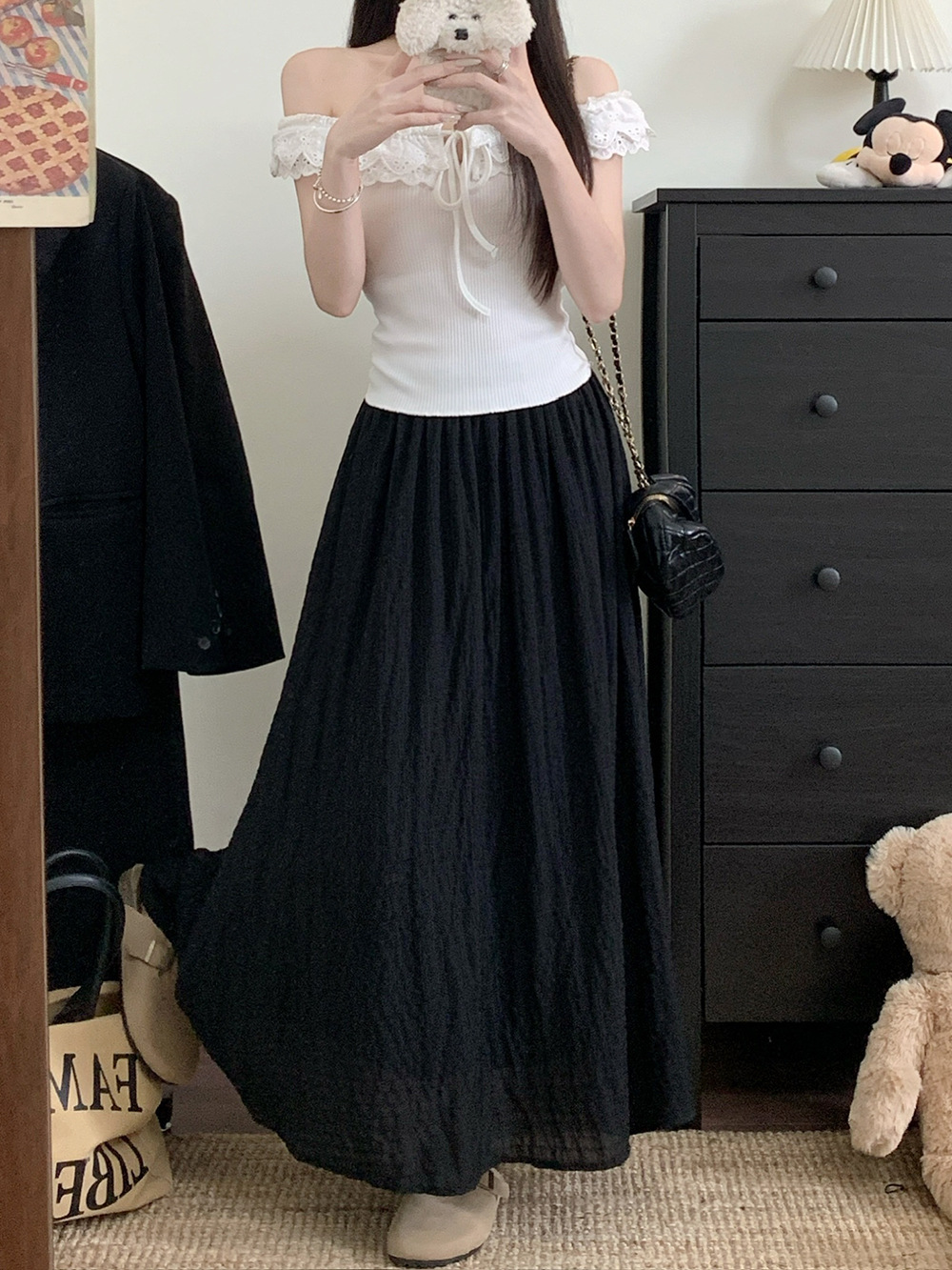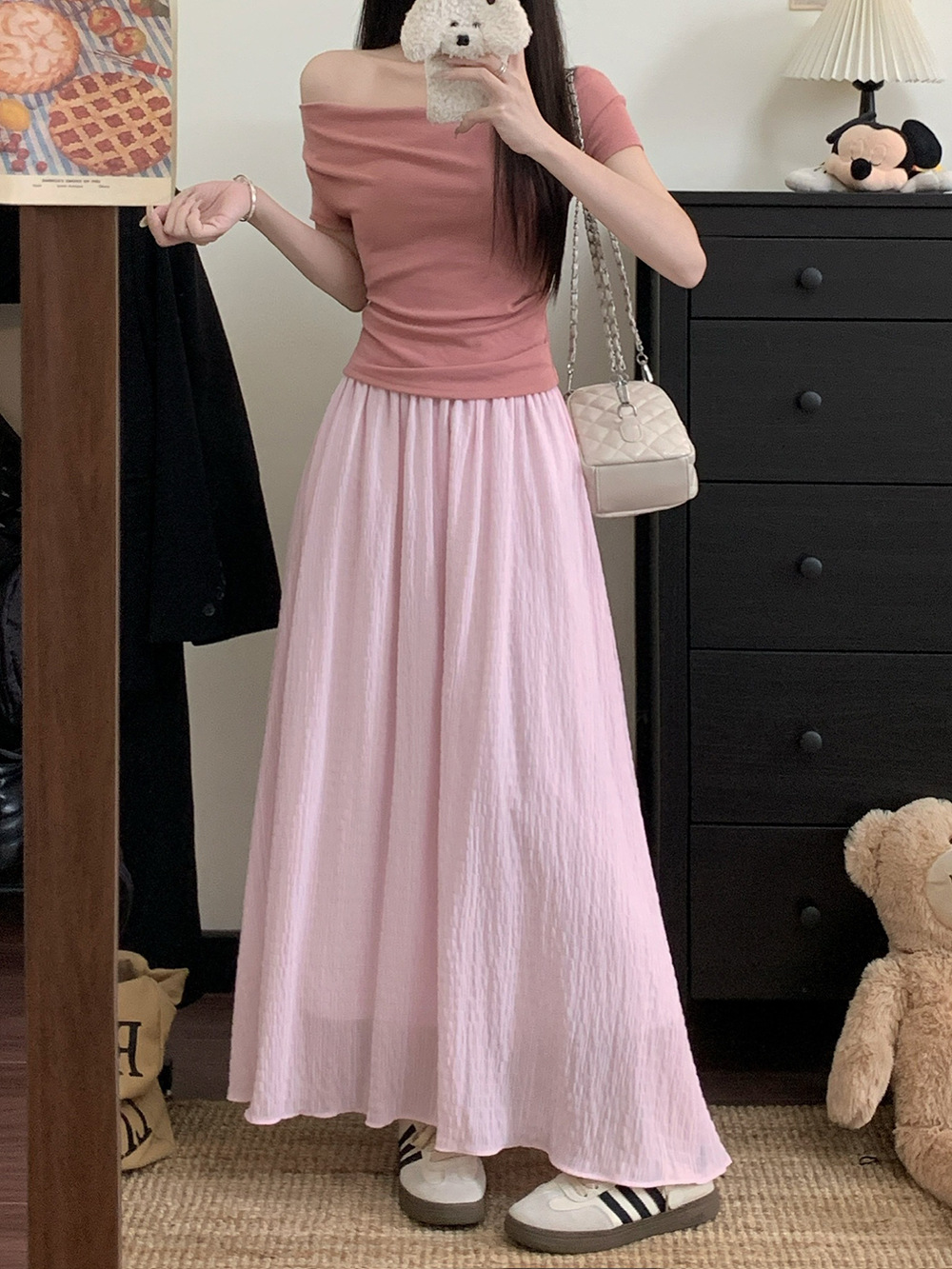 여름 여성용 캐주얼 요정풍 스커트 한국판 안감이 있는 신형 신축성 있는 하이웨이스트 심플 통근 롱 스커트
