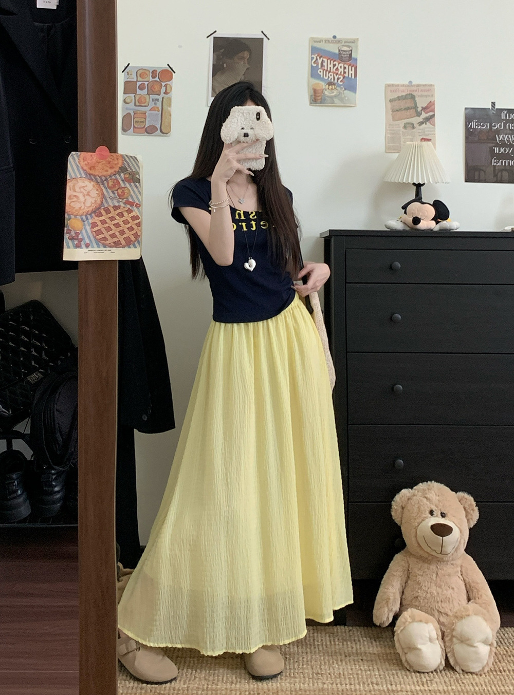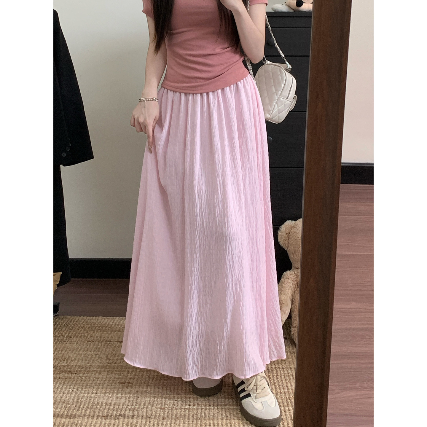 여름 여성용 캐주얼 요정풍 스커트 한국판 안감이 있는 신형 신축성 있는 하이웨이스트 심플 통근 롱 스커트스토어 가기