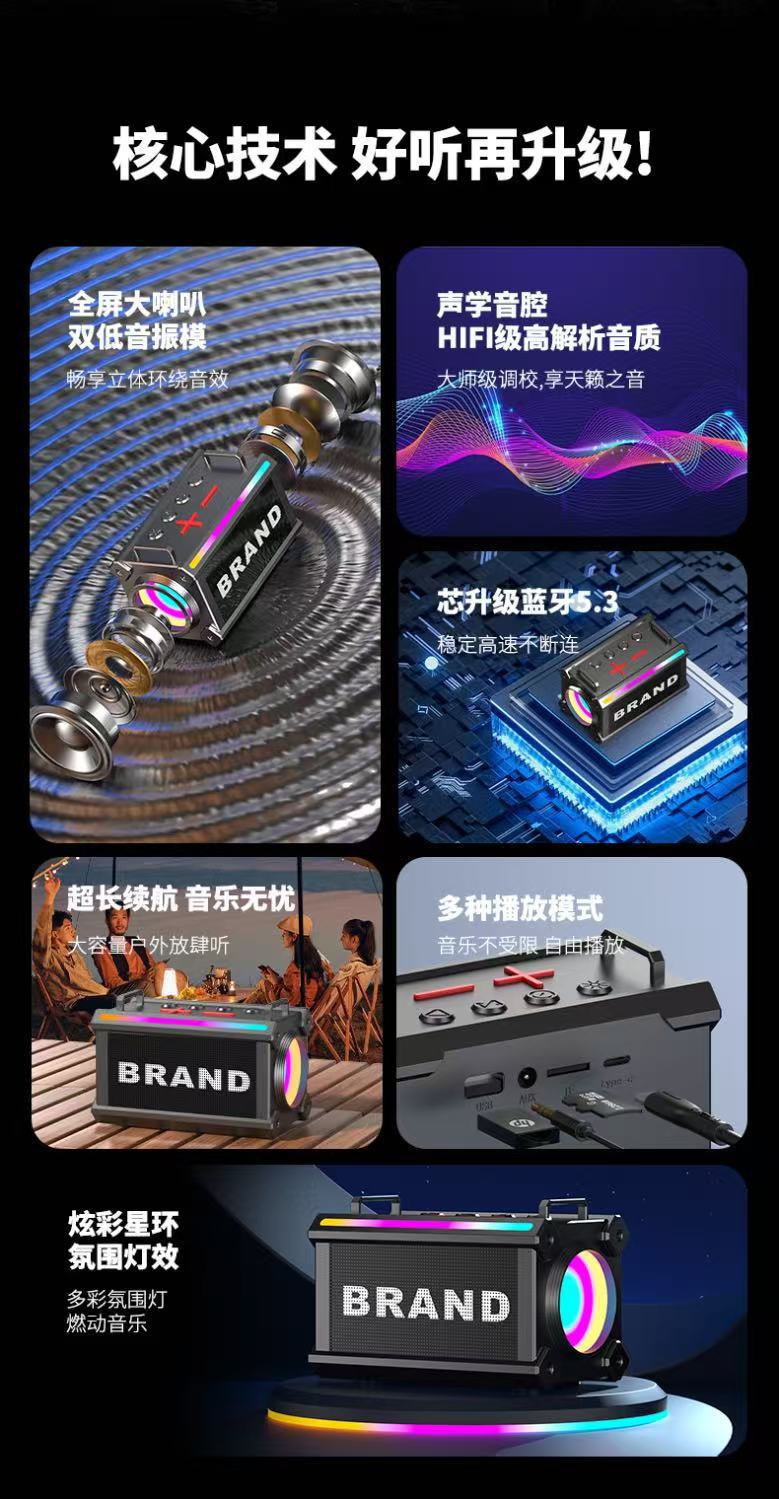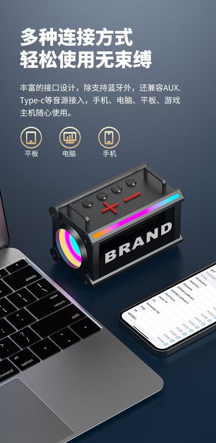 2025 국경 간 편리한 슬링 스피커 대용량 LED 서브 우퍼 야외 무선 블루투스 스피커 소형스토어 가기