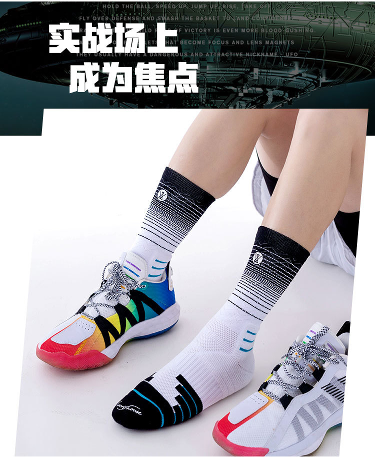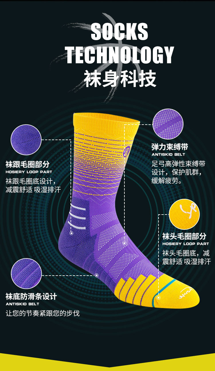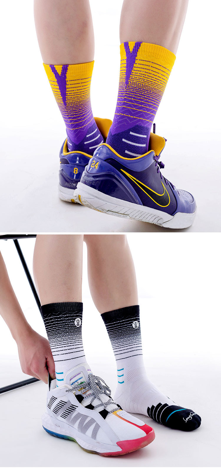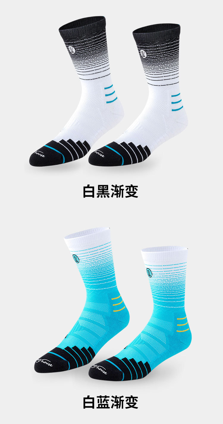 그라디언트 엘리트 농구 양말, 중간 길이의 두꺼운 수건 바닥 긴 야외 양말, 남성용 통기성 전문 러닝 스포츠 양말스토어 가기