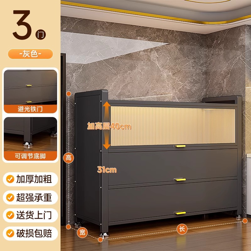 • 3도어 그레이 강화 모델 [길이 70-너비 42-높이 125] 대담하고 두꺼워짐 [바퀴 4개 포함]